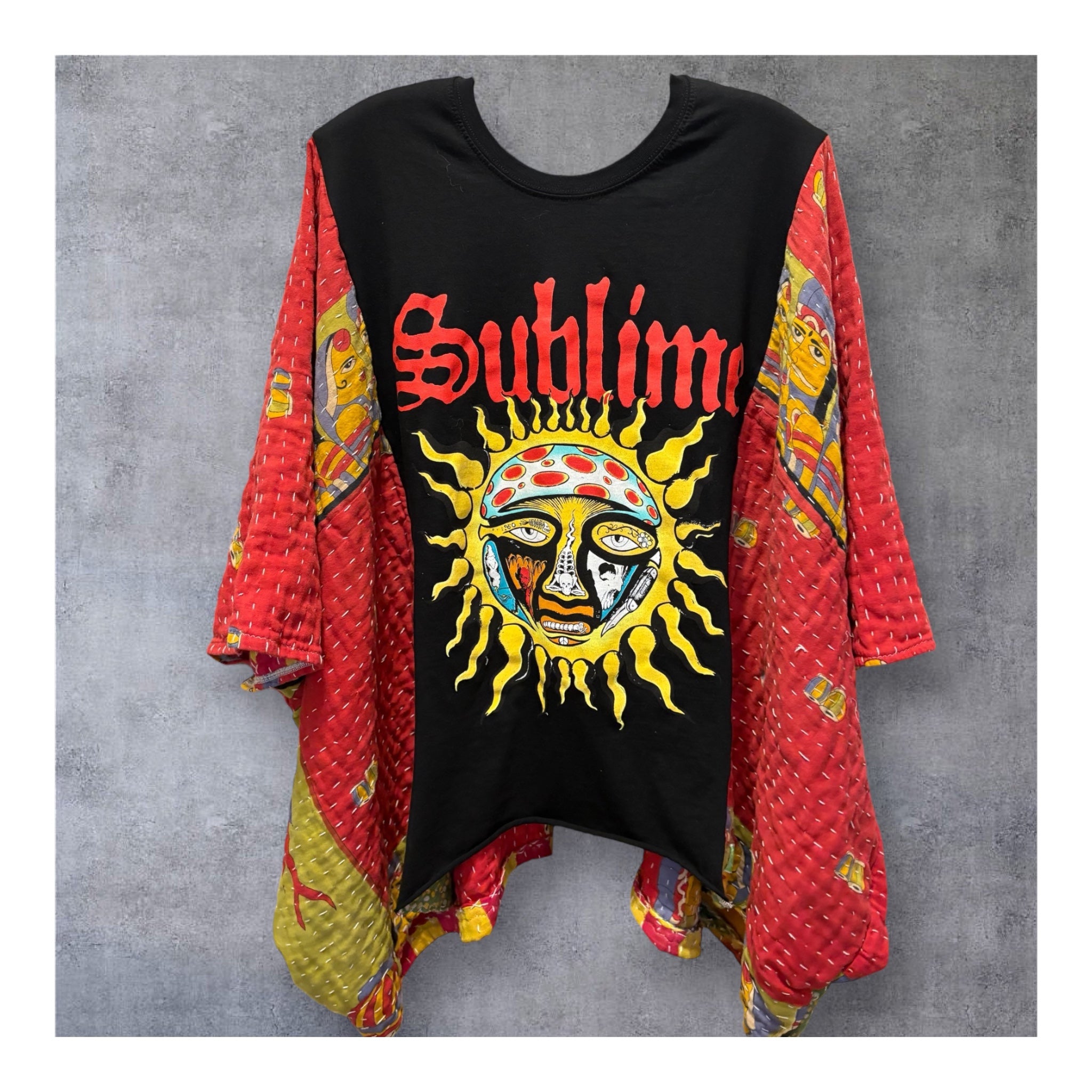 Janis Upcycled Vintage Kantha Quilt FLARE SLEEVE Poncho Tee One Size Fits a Small to Large