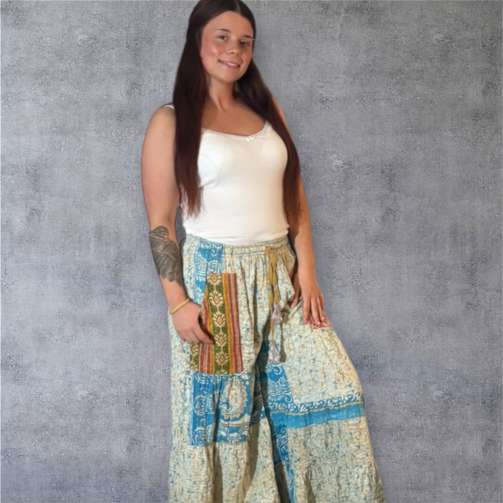 Vintage Kantha Boho Long Maxi Skirt with Pockets
