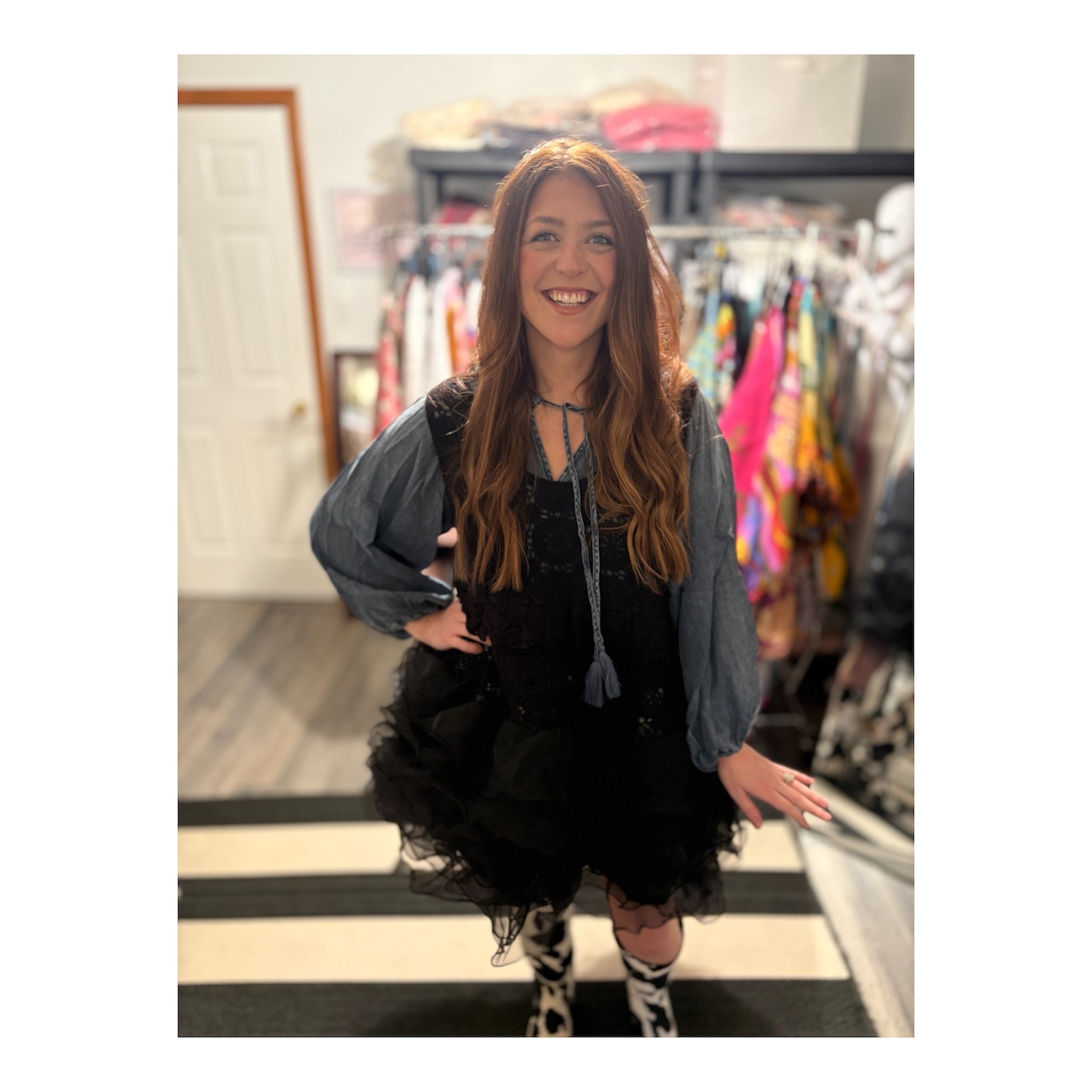 Onyx Crochet Ruffle Poof Dress One Size Fits a Small to XXL