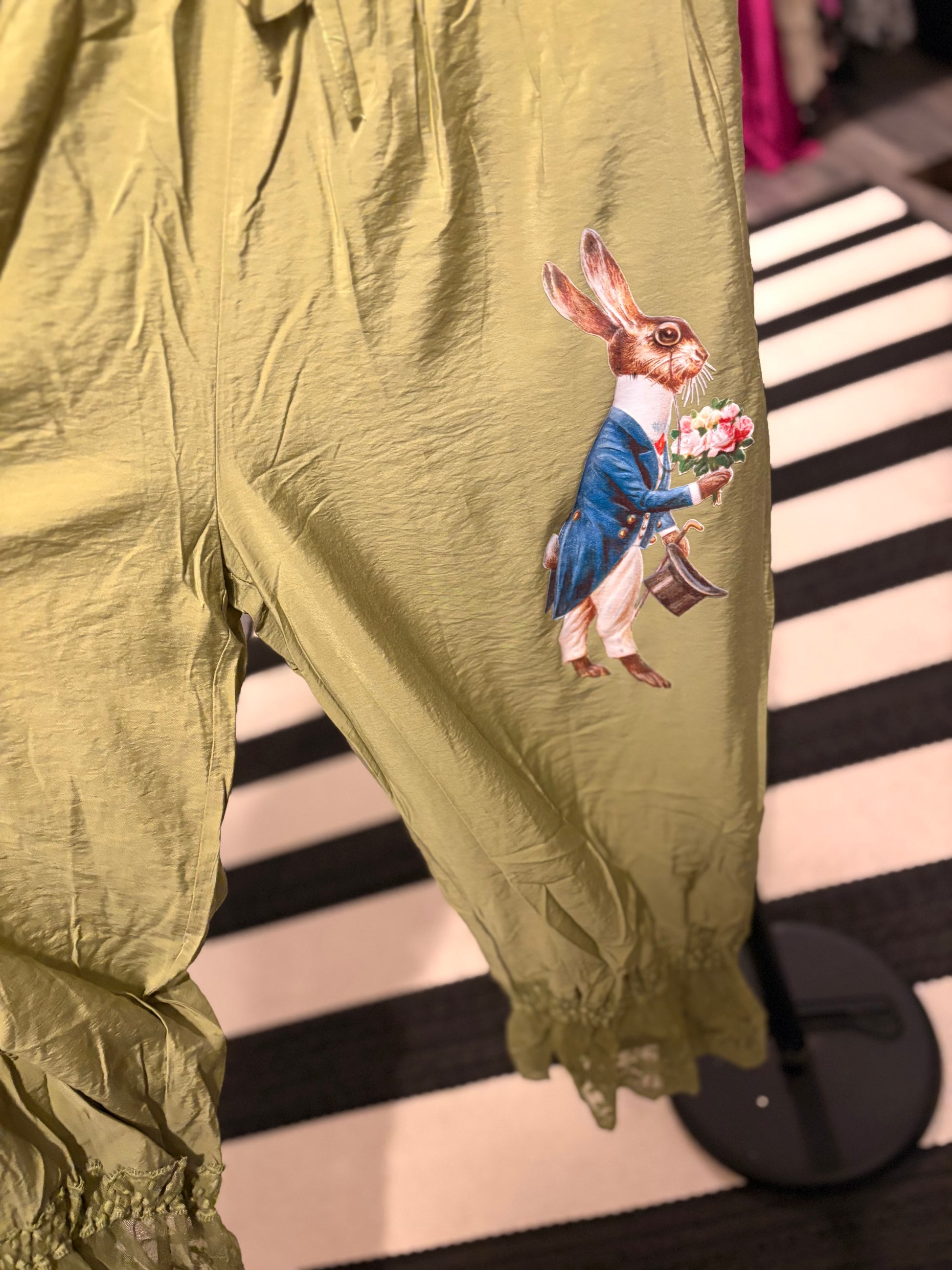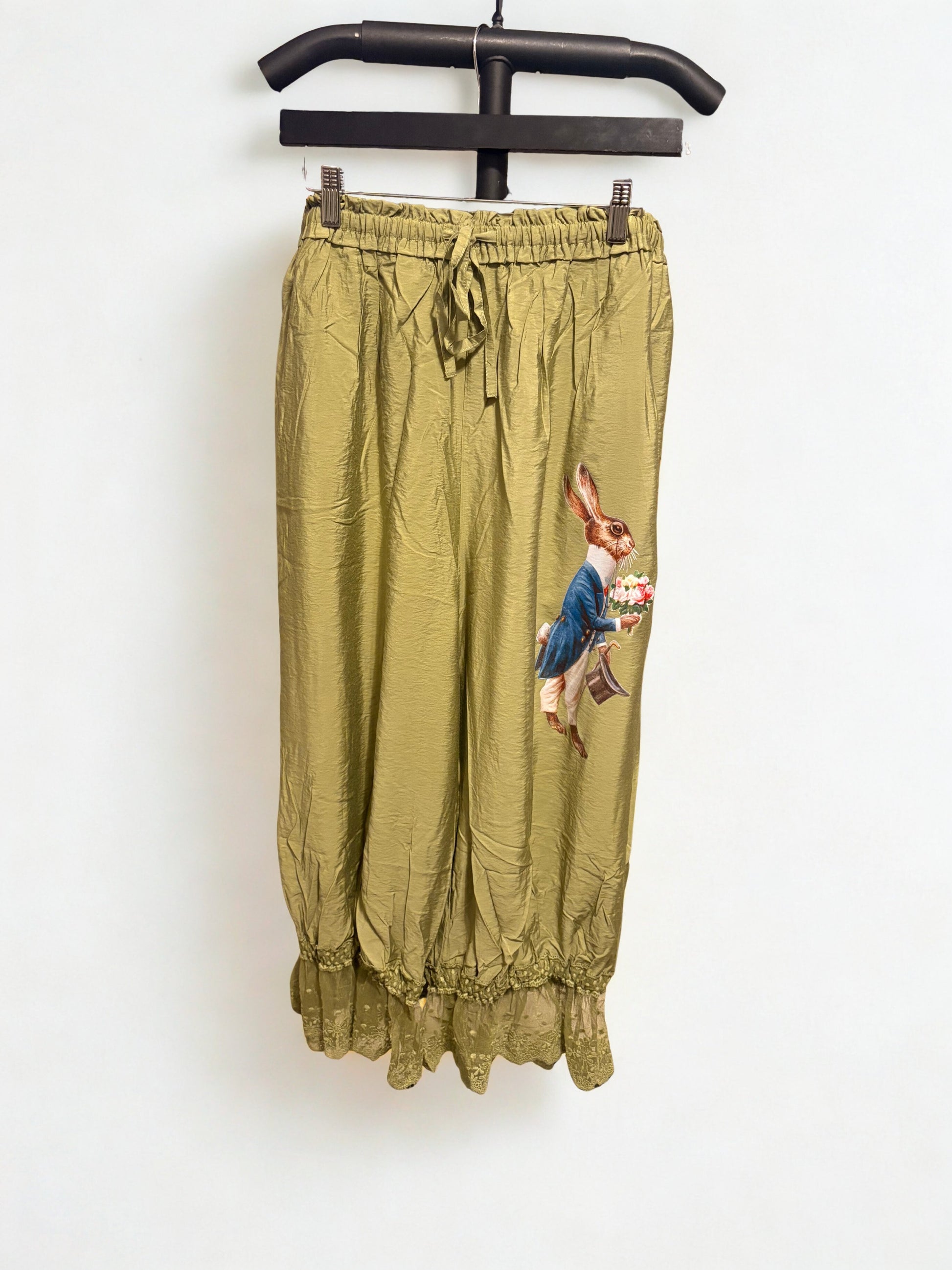 Beautiful lace trimmed bloomers!! The most comfortable pants EVER! Super lightweight and flowy!! Bunny soft vinyl graphic. Have a drawstring at elastic waist.