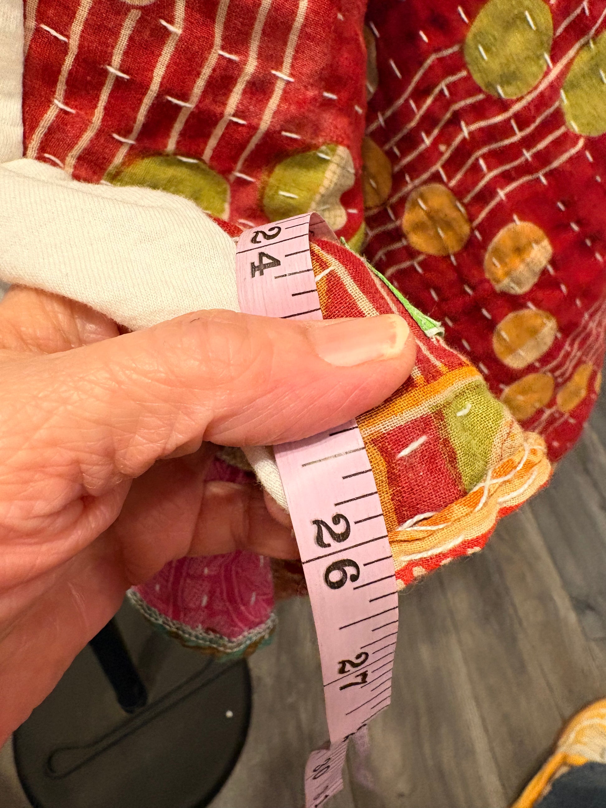 Beautiful vintage Kantha quilt and graphic tee paired to make this FABULOUS Upcycled tee. Vintage Kantha quilts have been well loved. They may have white strings (which can be cut) , slight holes, small stains,and may be weathered, rustic and tattered which all lends to the vintage beauty of the top. Perfectly imperfect!!