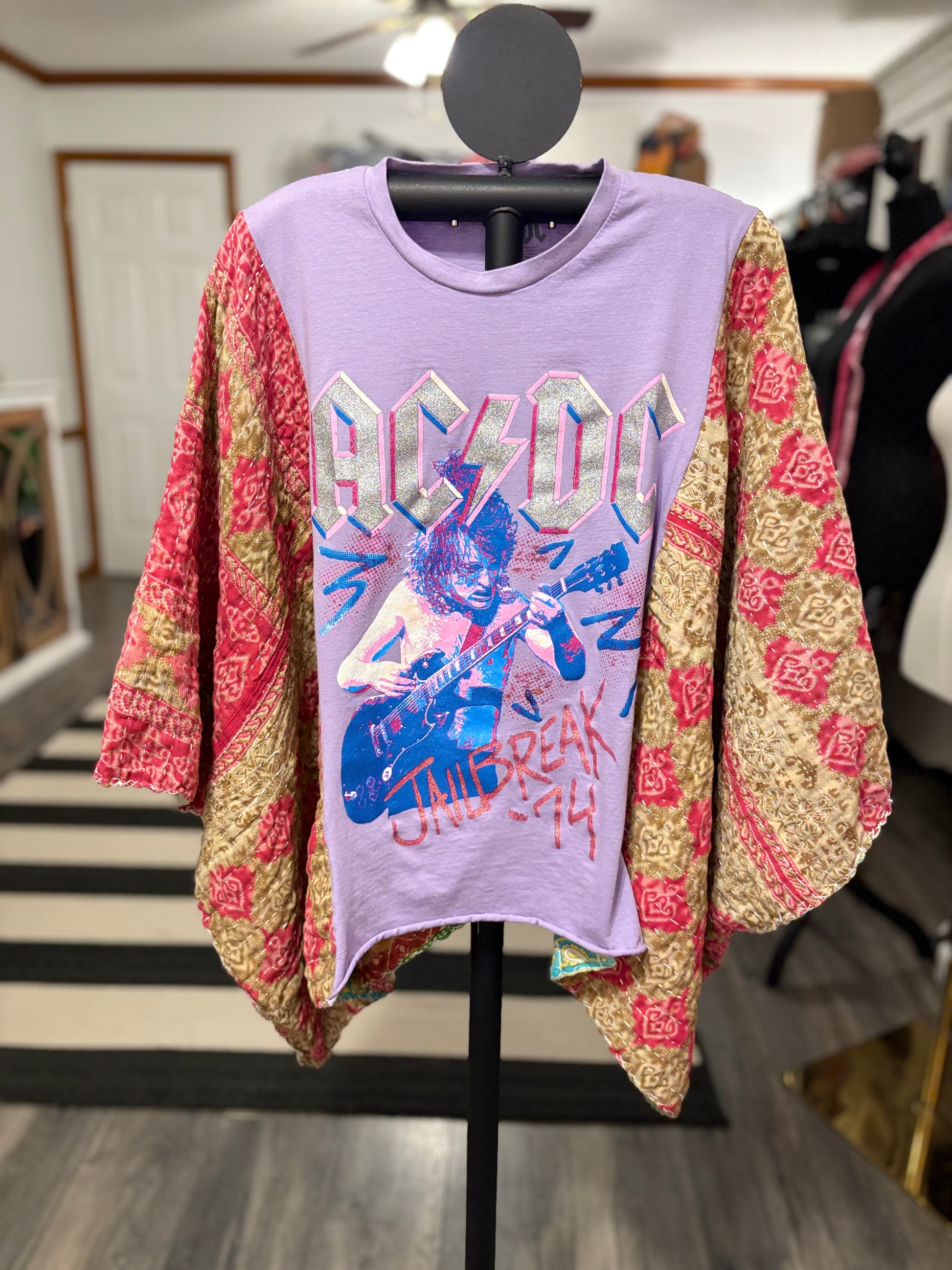 AC/DC Upcycled Vintage Kantha Poncho Tee One Size Fits A Small to XXL (6-16)