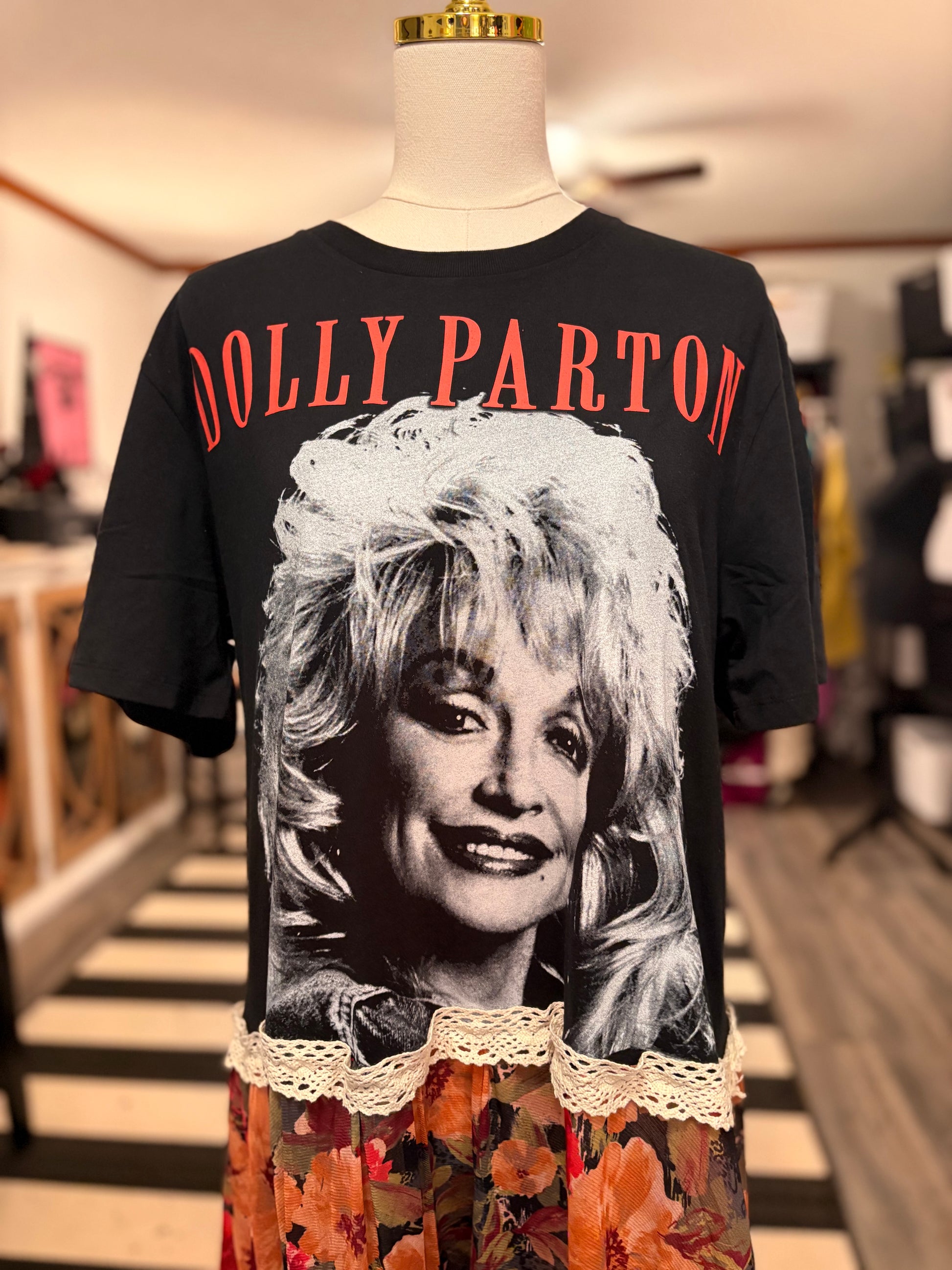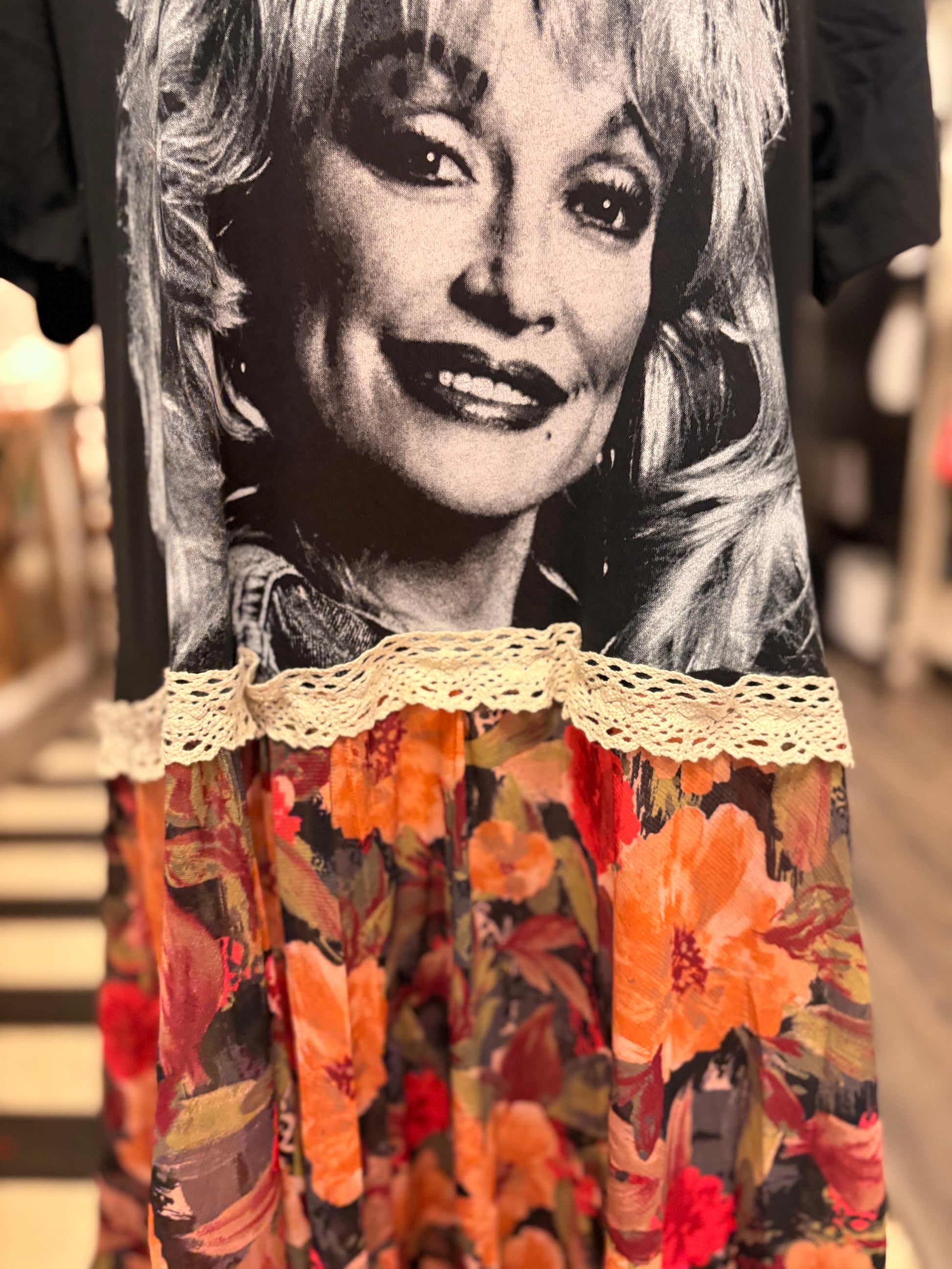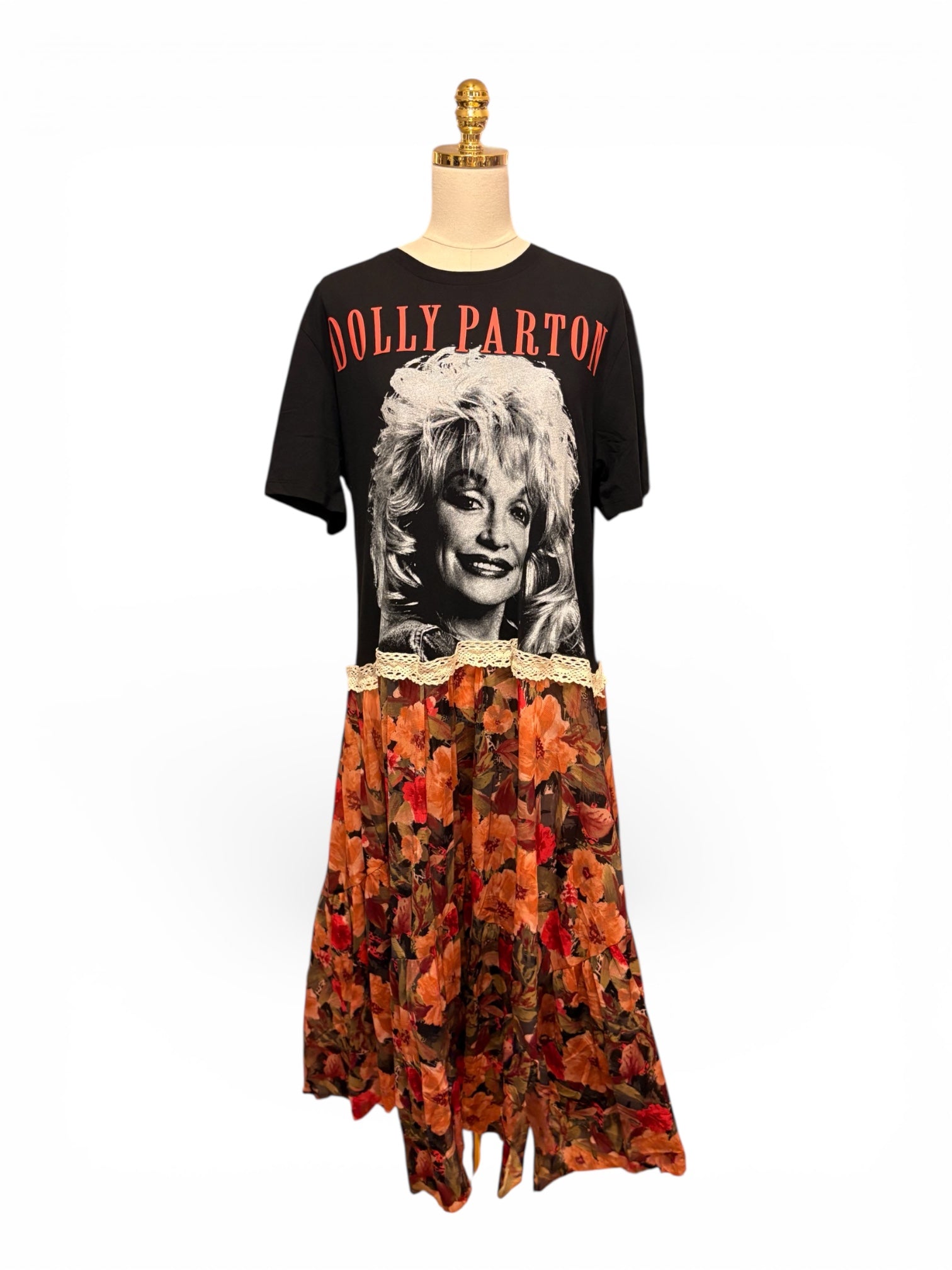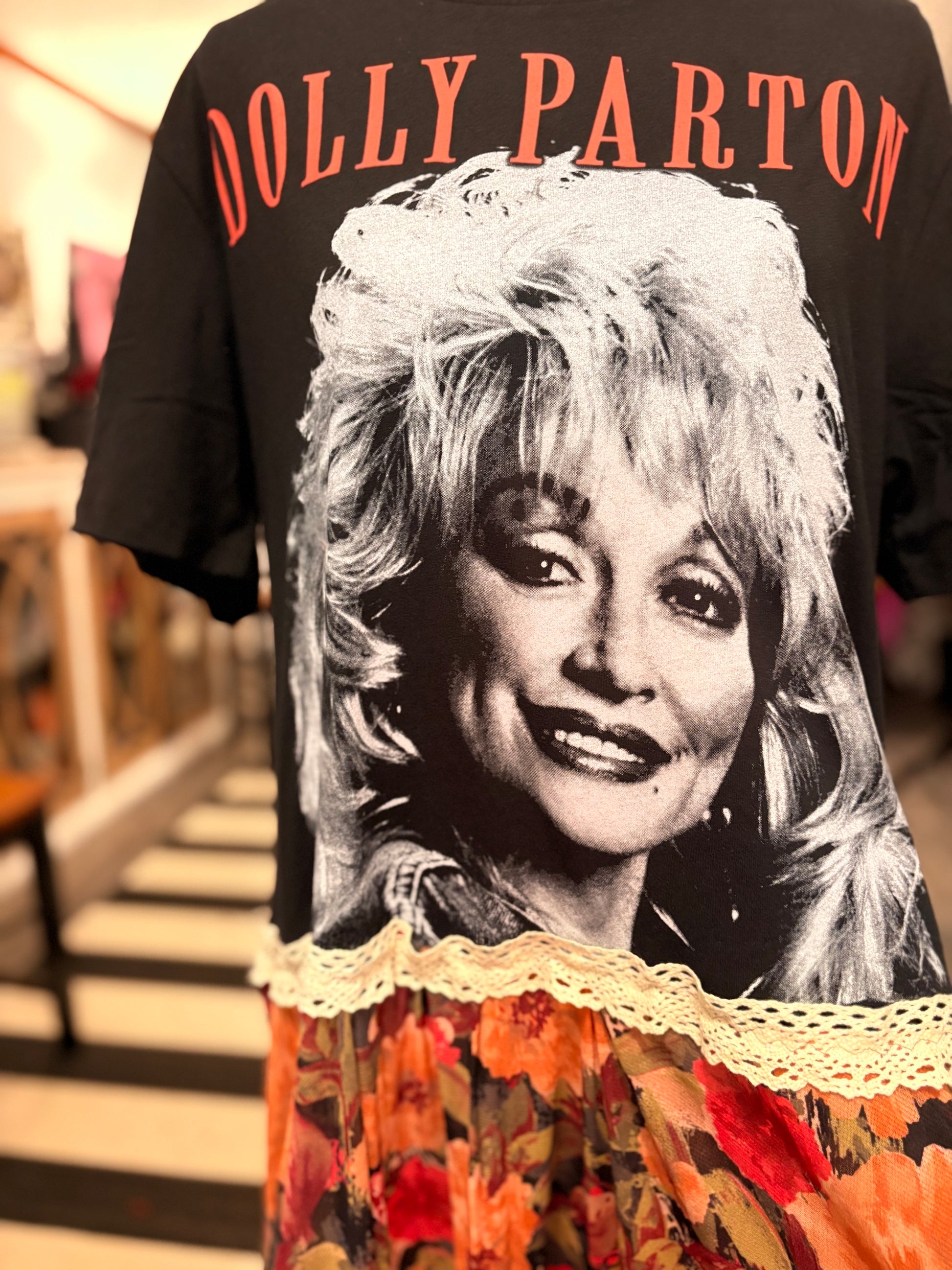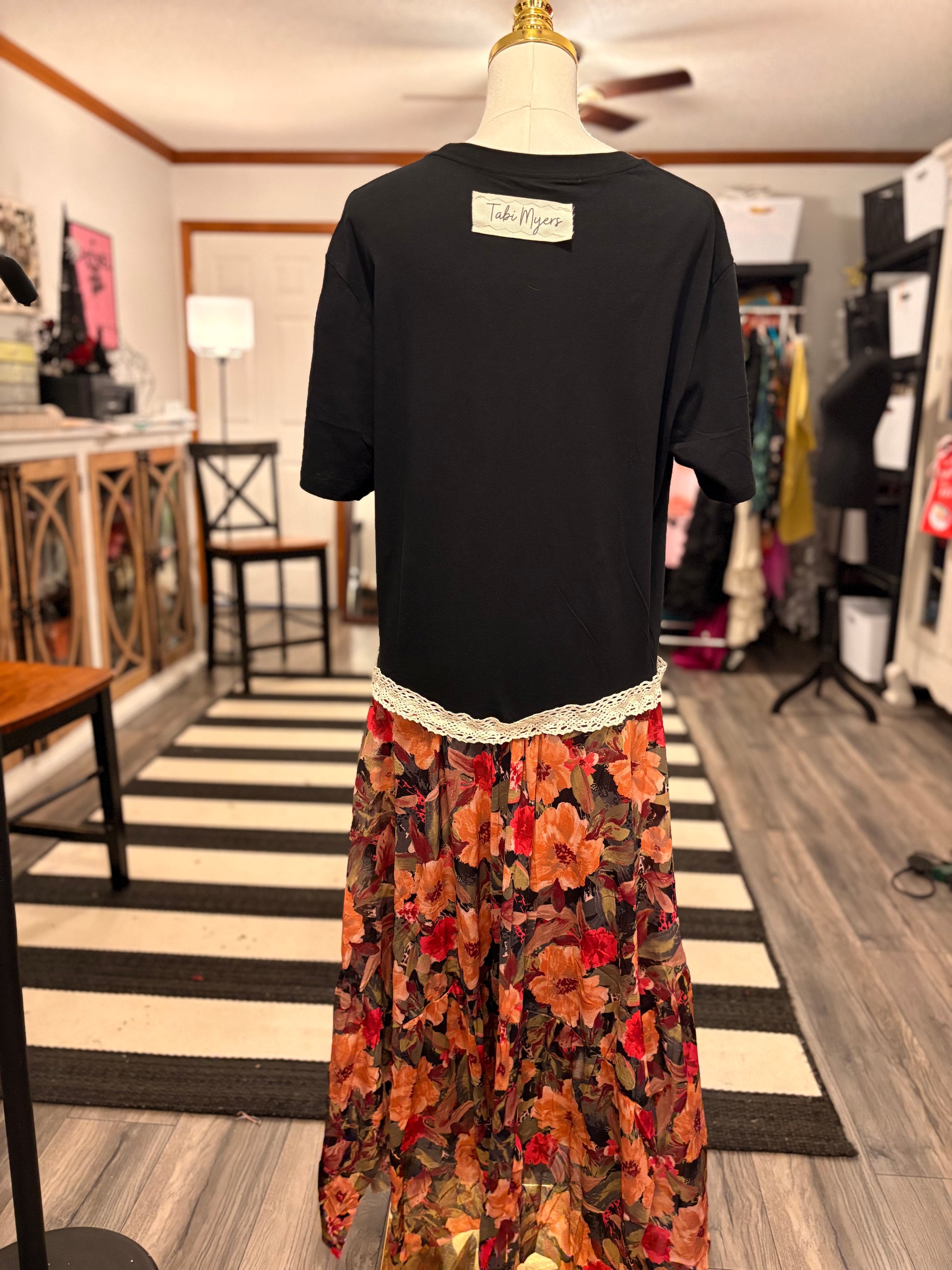 Upcycled graphic tee and layered ballerina floral skirt with embroidered trim waist used to make this FABULOUS ROCKSTAR and Fairytales Dress. Looks great with absolutely everything! You will ROCK this!!!❤️