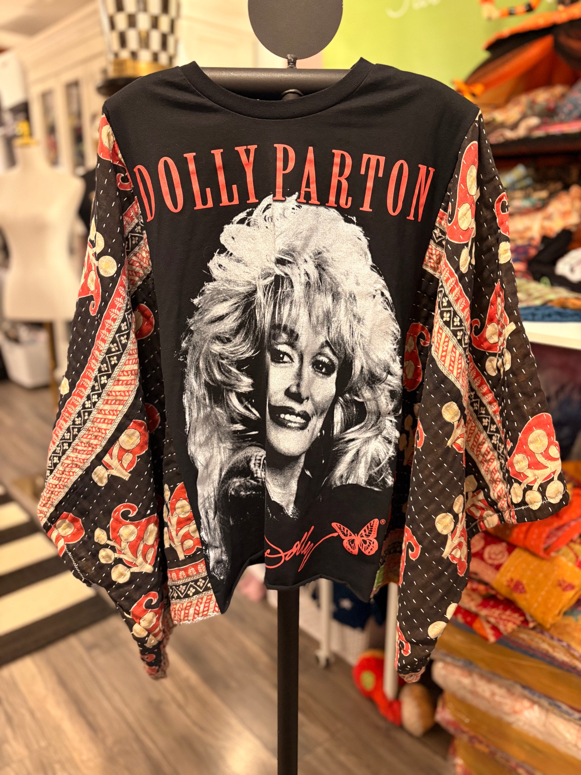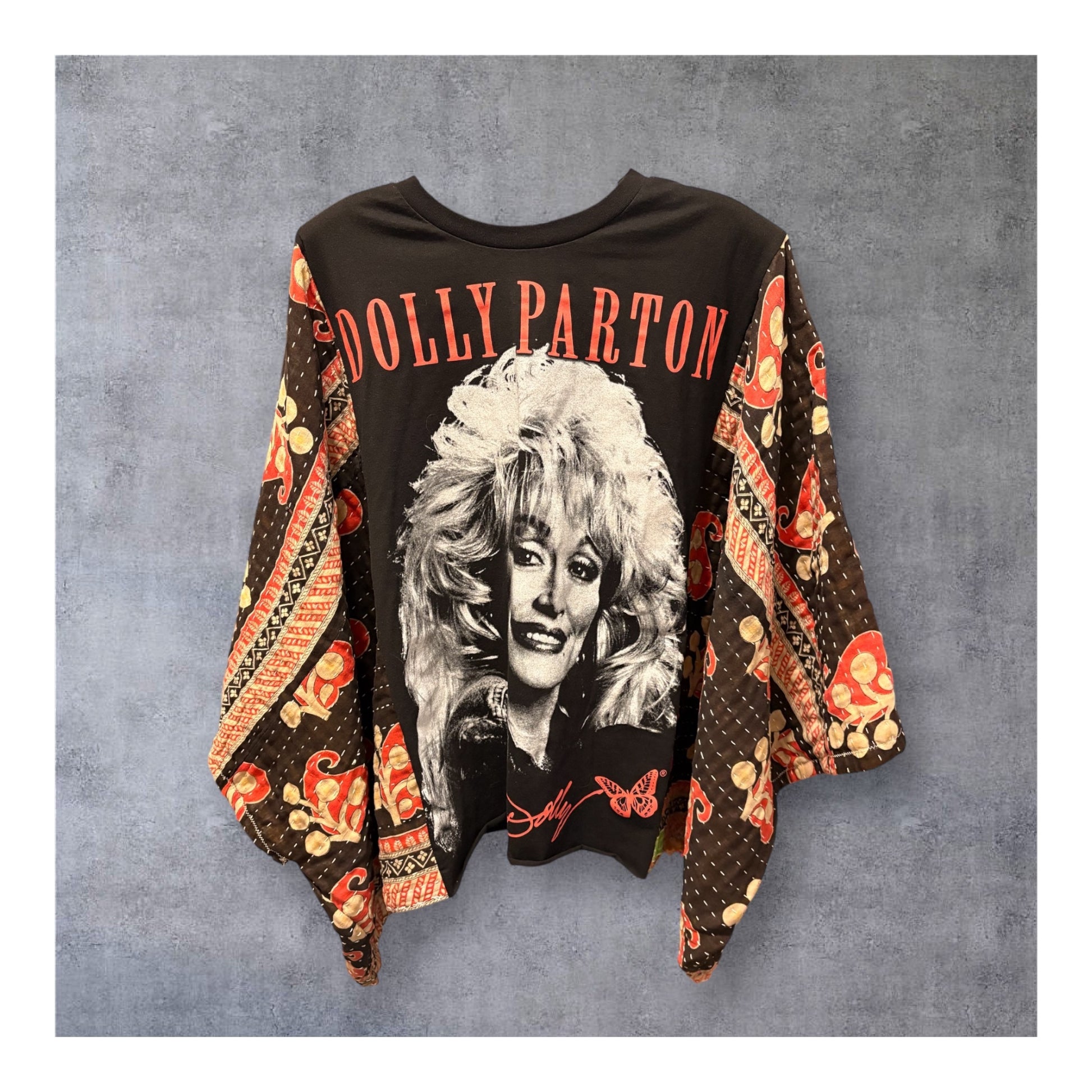 Beautiful vintage Kantha quilt and graphic tee paired to make this FABULOUS Upcycled tee. Vintage Kantha quilts have been well loved. They may have white strings (which can be cut) , slight holes, small stains,and may be weathered, rustic and tattered which all lends to the vintage beauty of the top. Perfectly imperfect!!