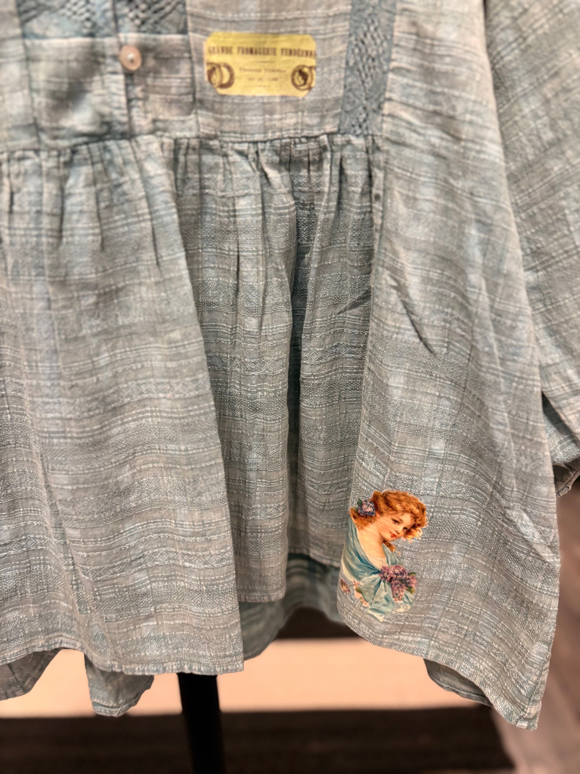 Beautiful Upcycled boutique brand shirt and Graphic Fairy Vintage designed DTFs..used to make this oversized and GORGEOUS ! Lots of beautiful details!!