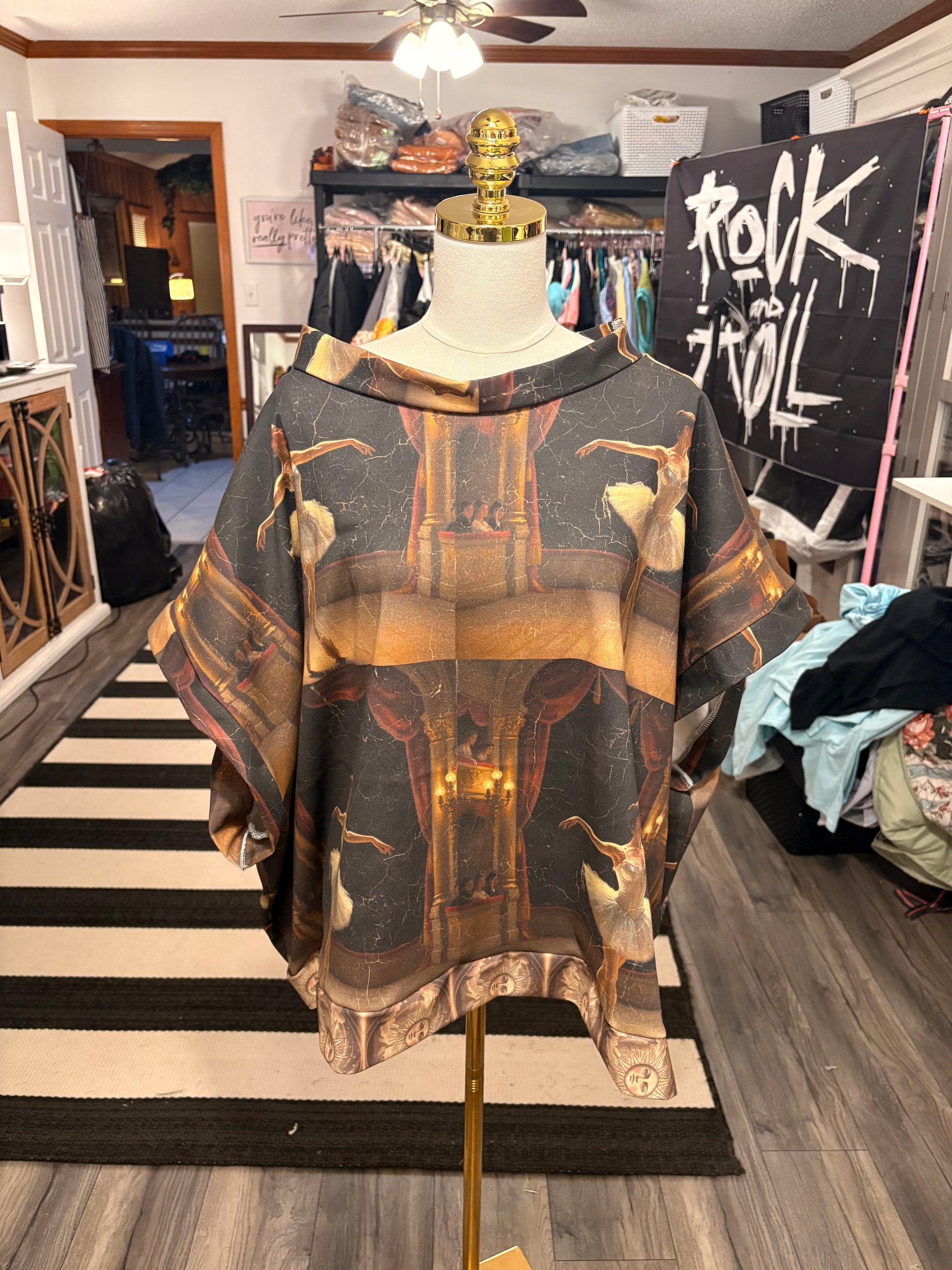 Original art designed by Tabi and printed on organic cotton knit fabric. Super comfortable , flowy and beautiful!! Handmade and original tee design with wide neck, large arm openings and OVERSIZED!