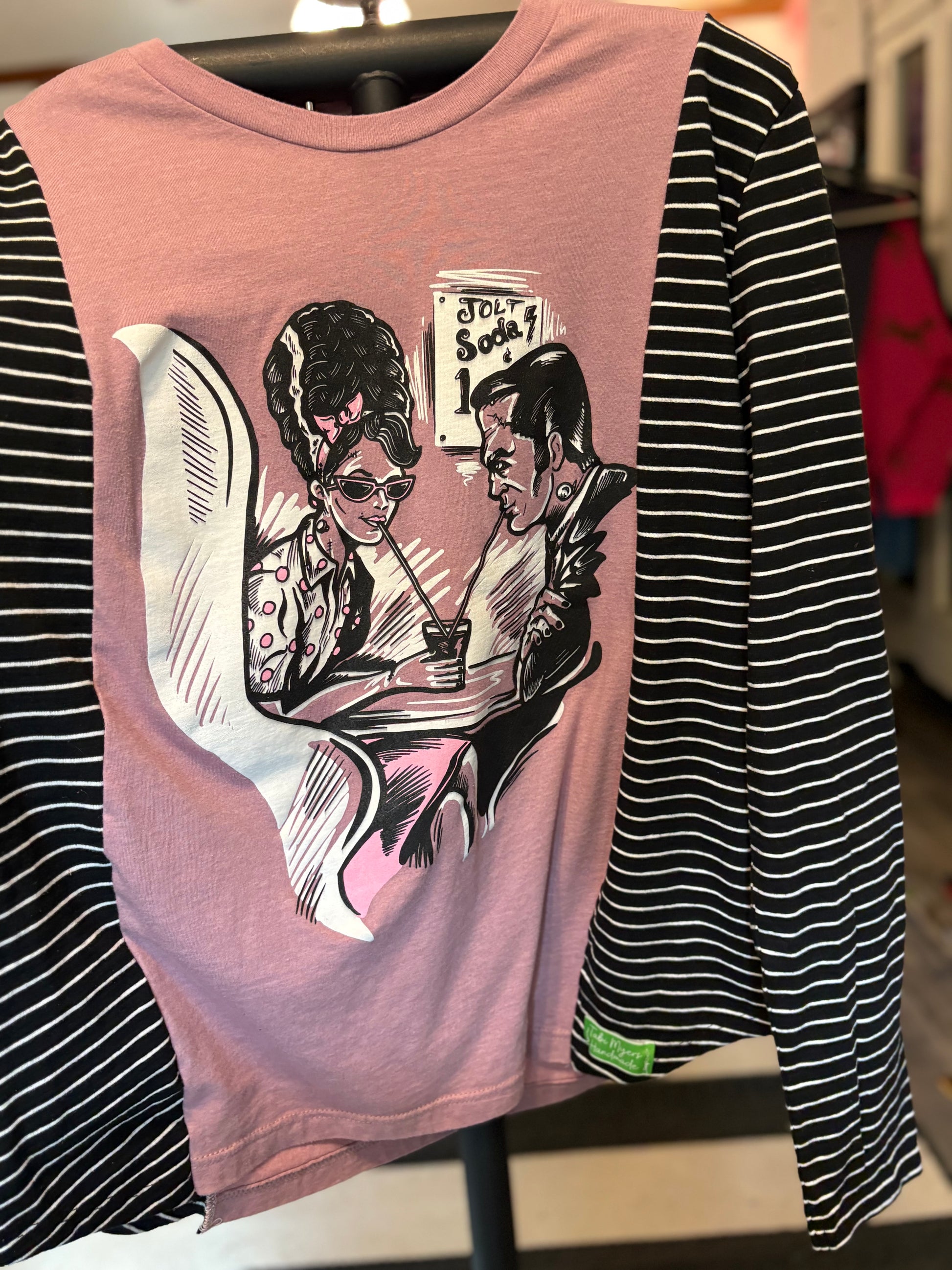 Upcycled graphic tee and long sleeve knit tee mashed up to create this super soft and comfortable ! Oversized and FABULOUS!!