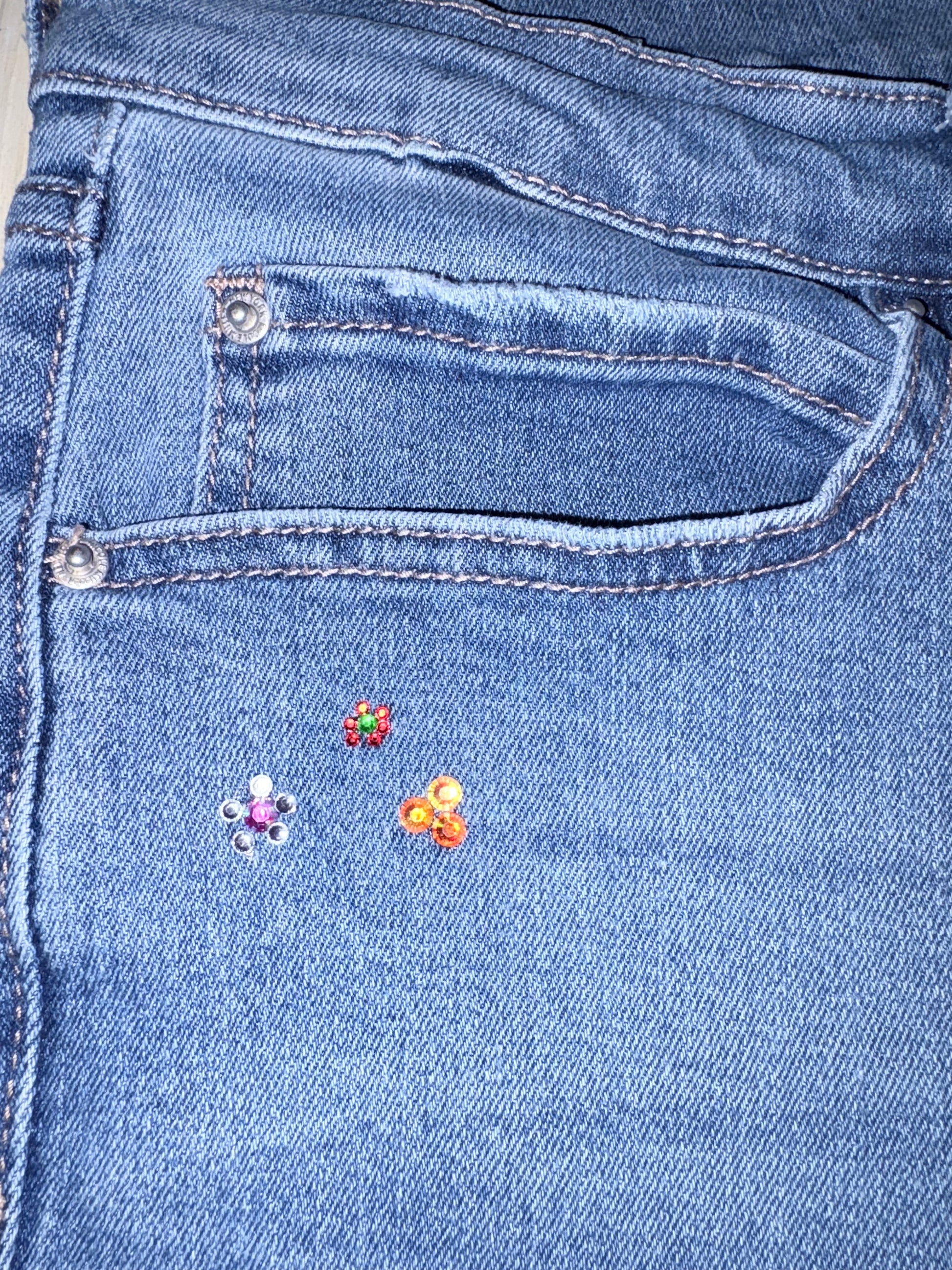 We’ve taken jeans and upcycled them into a work of art… rhinestones, vintage lace, vintage graphics, and distressing!! One of a kind and FABULOUS!!