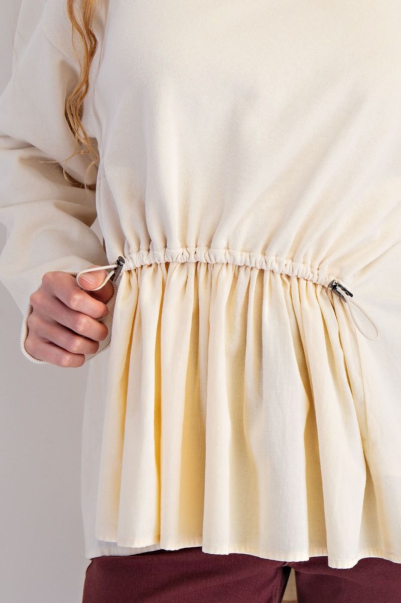 TERRY KNIT RUFFLE BOTTOM BABYDOLL PULLOVER