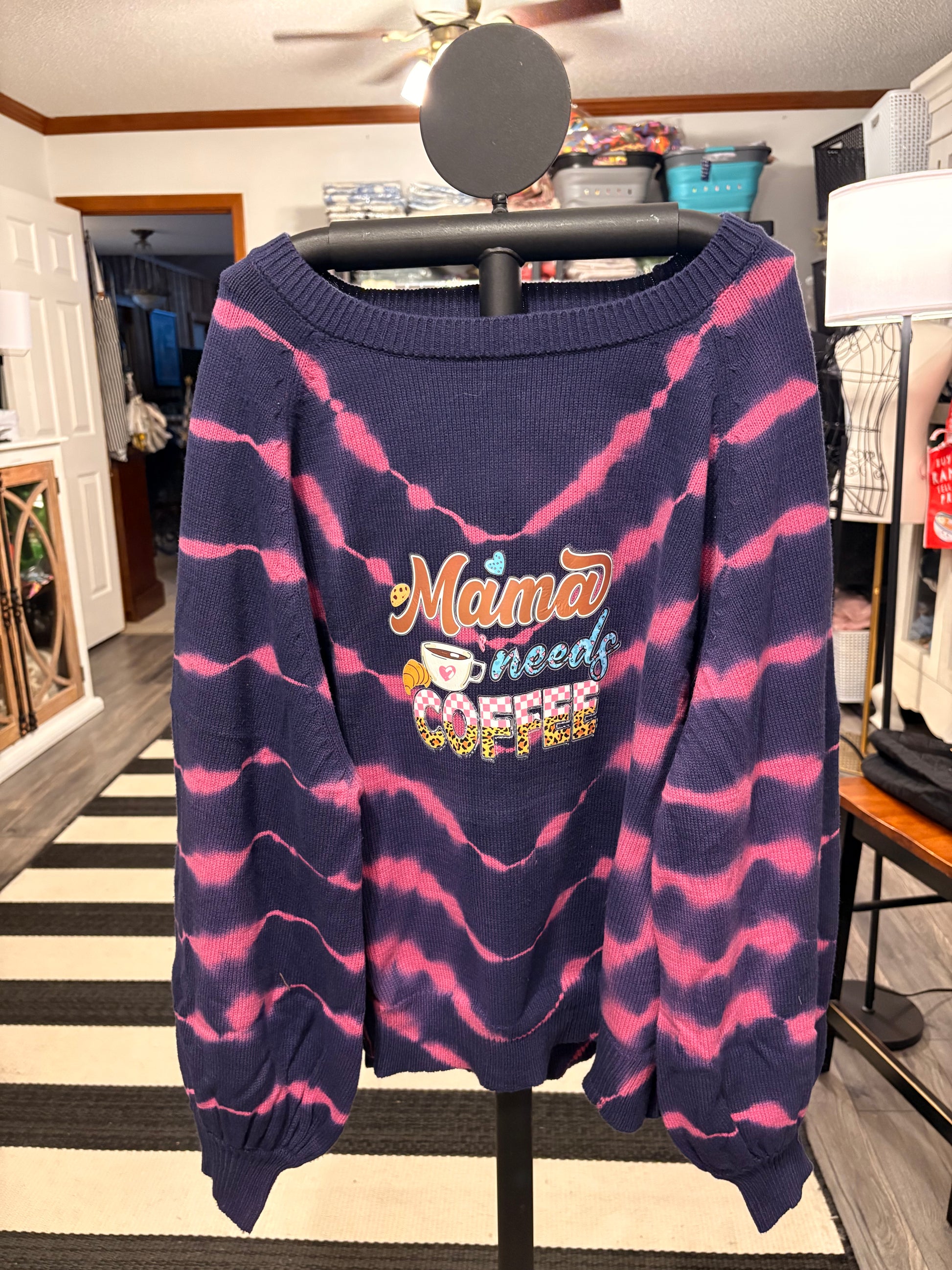Mama Needs Coffee Upcycled Oversized Sweater Fits XL/2X
