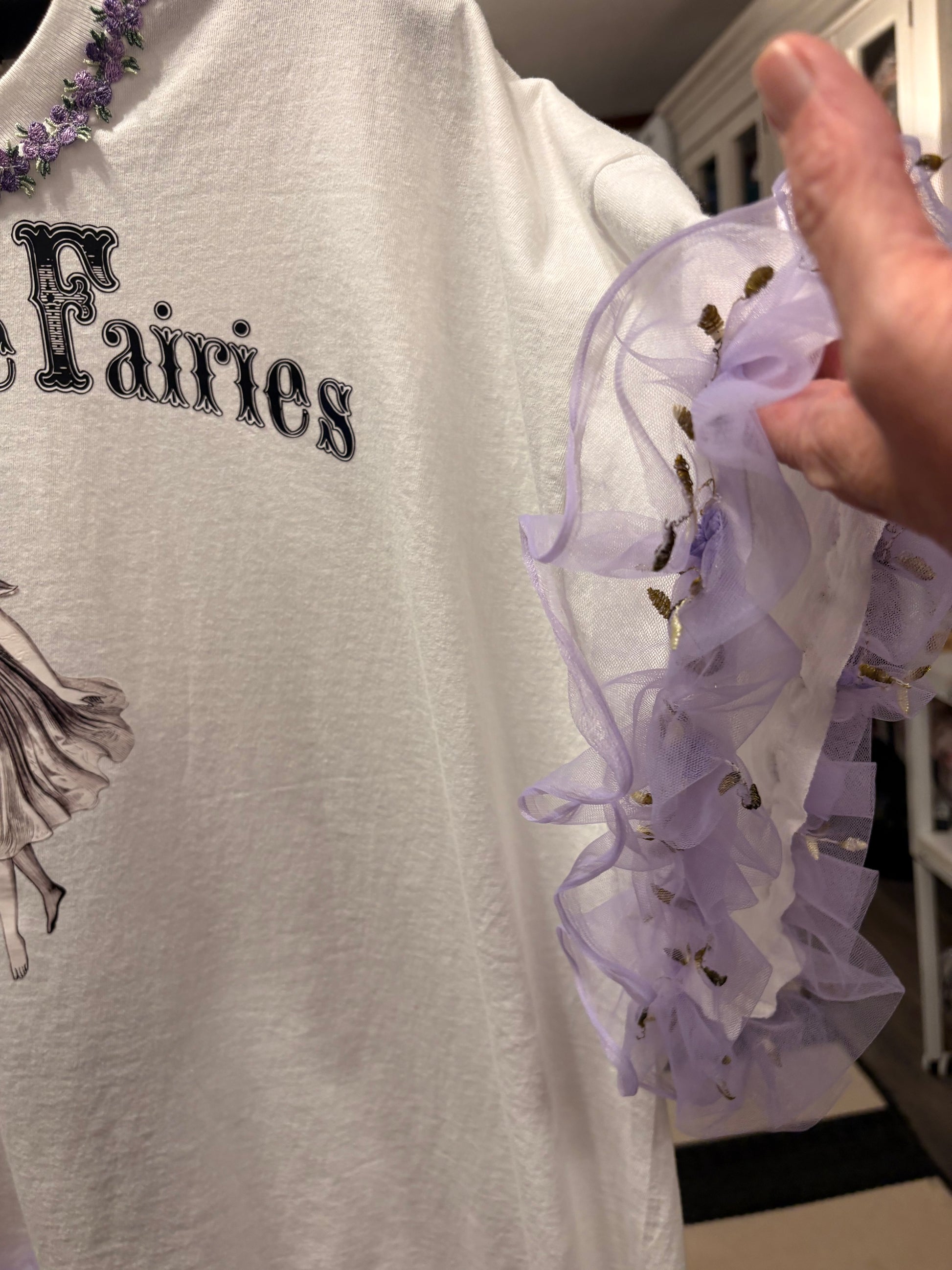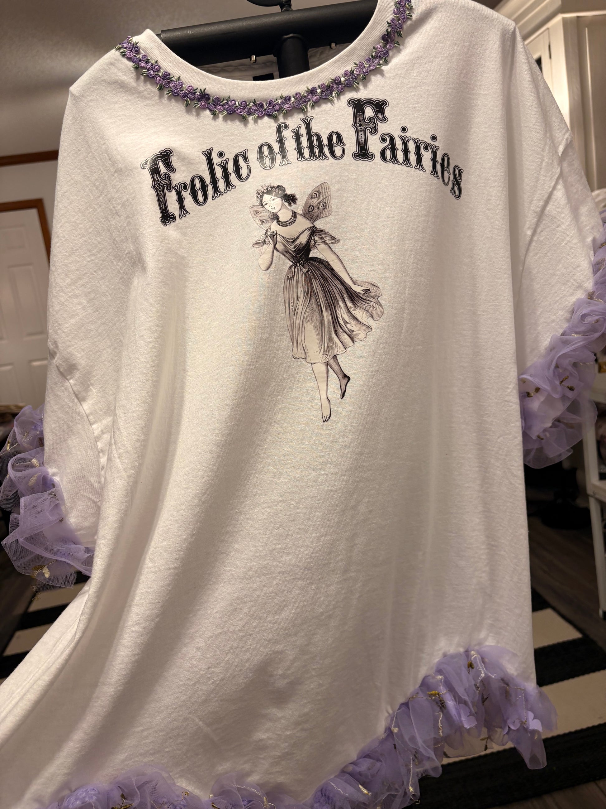 Inspired by Junk Journals. These tees are a collection of favorite things! Cotton tee with vintage graphic images, embroidered mesh fabric ruffled, and embroidered floral trim around neckline. SEW many beautiful details ❤️ Shirt used is a 2X. Has beautiful floral embroidered lace around neckline.