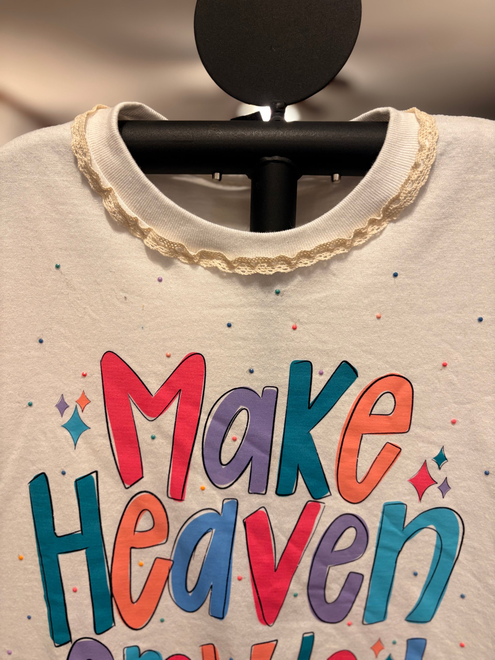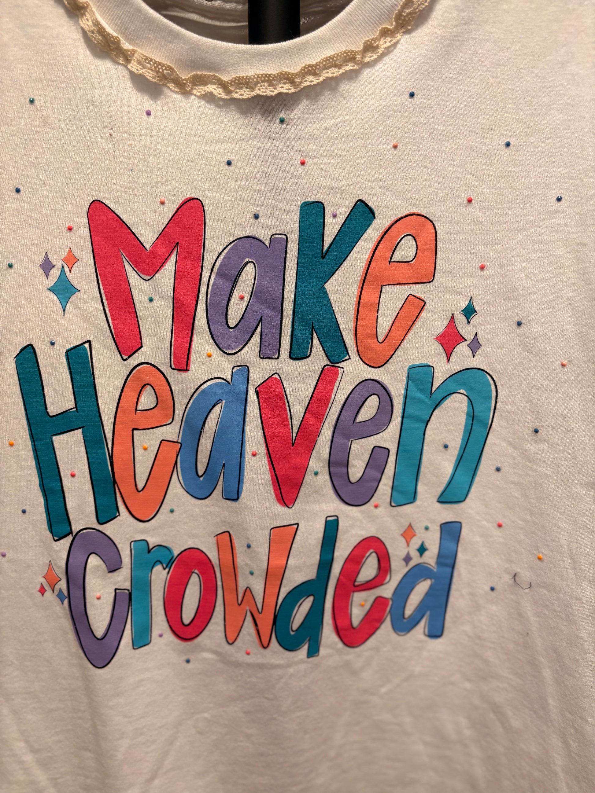 Pretty little tees! Upcycled rock tee adorned with rhinestones and crochet trim. Comfortable and beautiful!! SEW many beautiful details ❤️ Shirt used is a Small