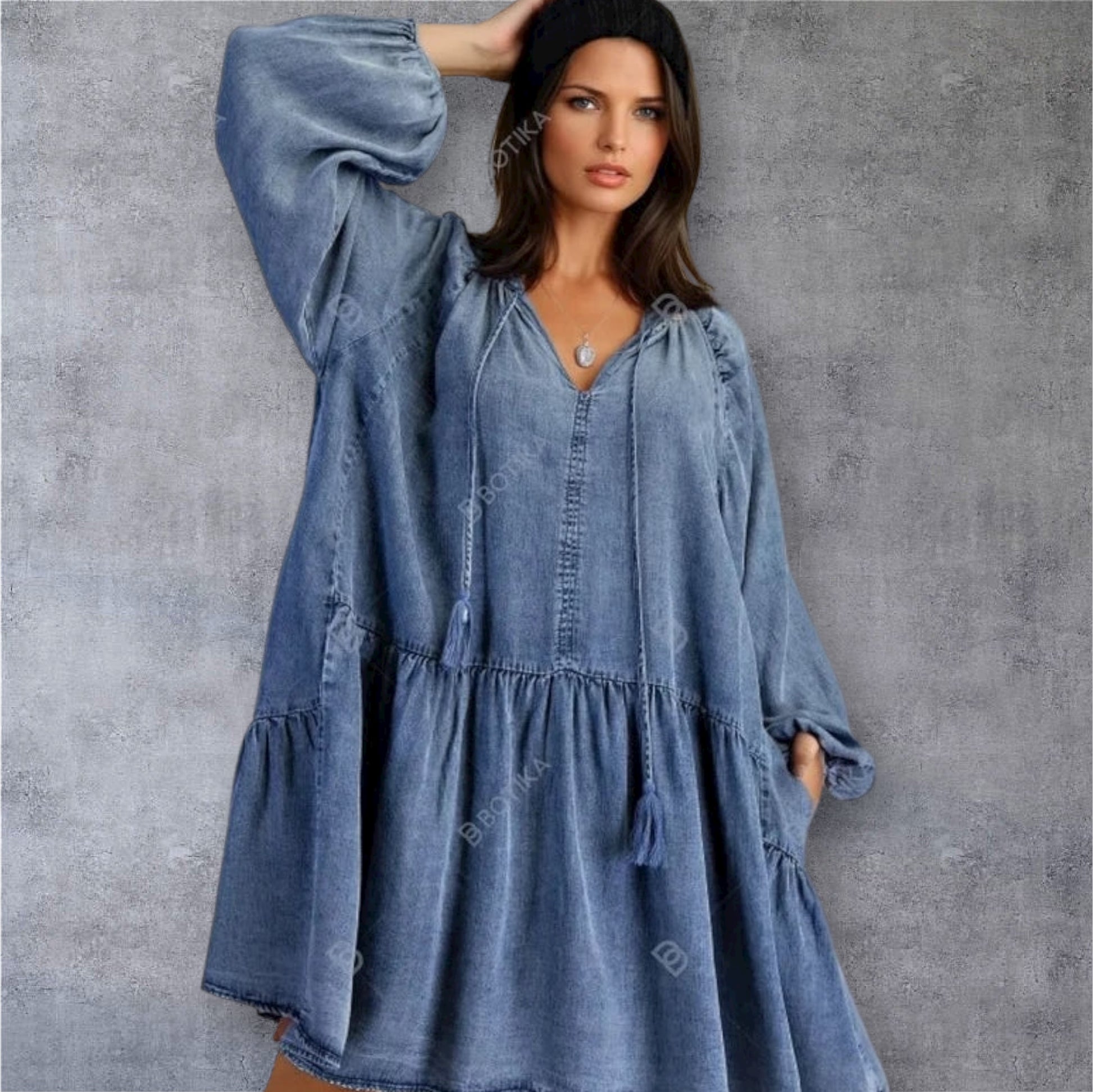 Super Oversized Gathered Jean Dress with Tie Front