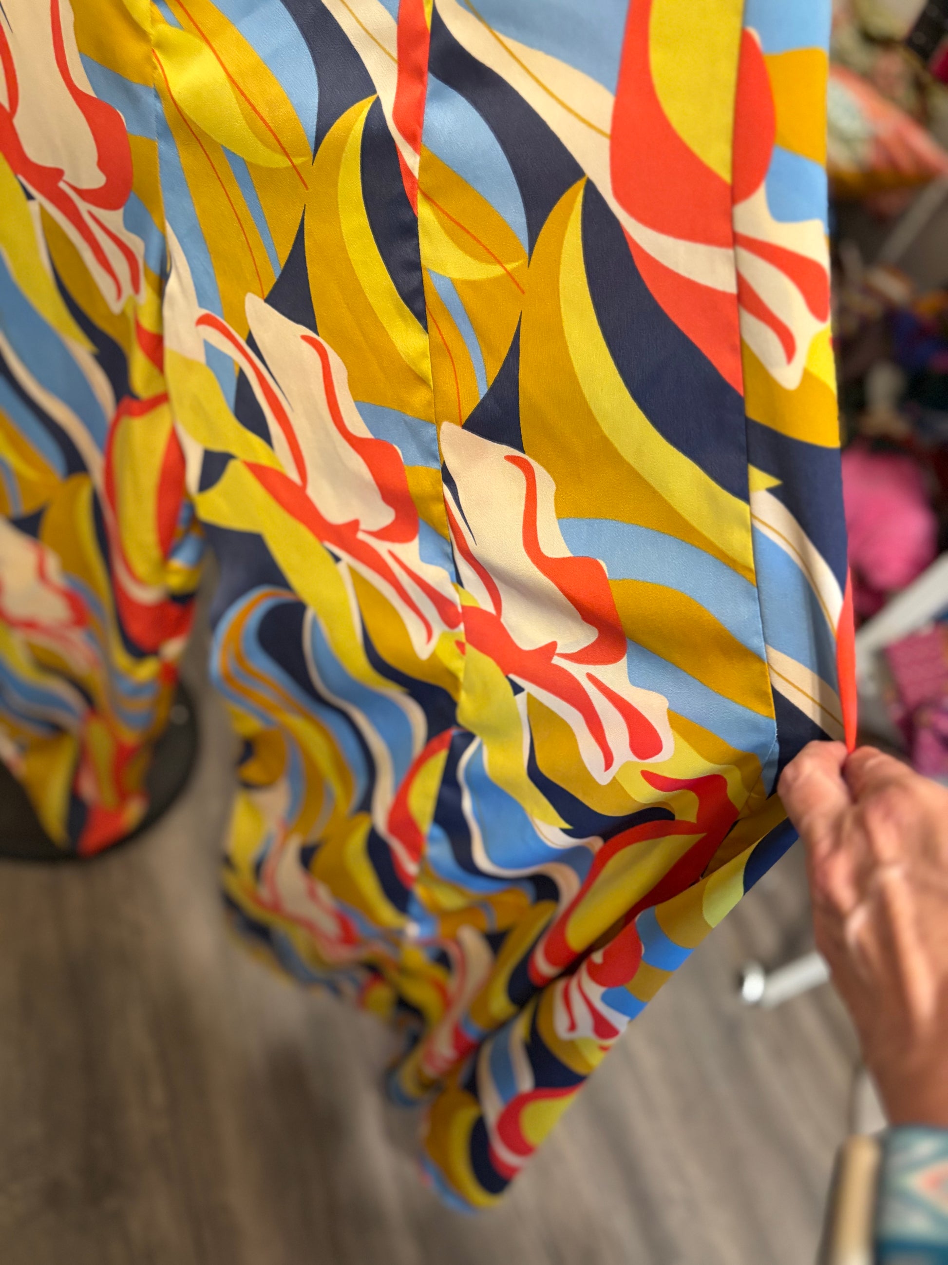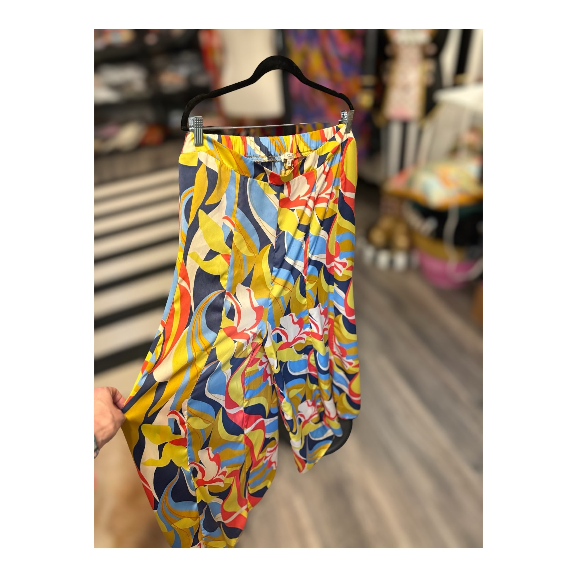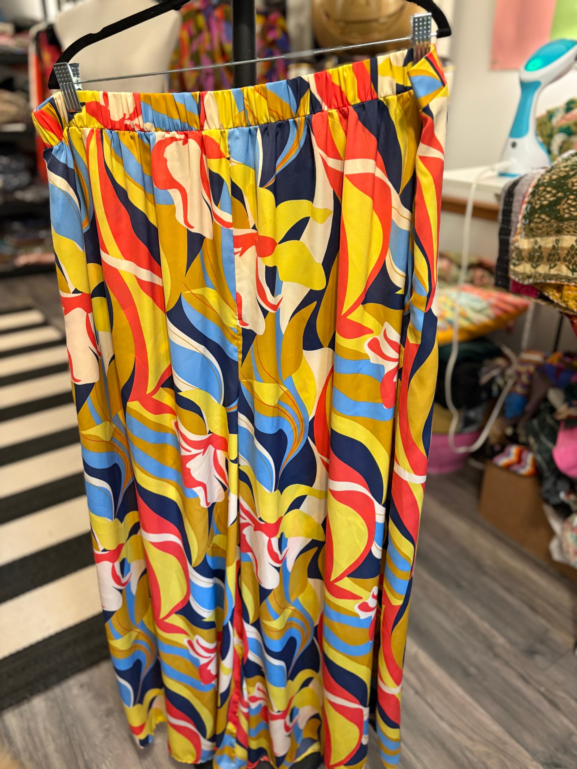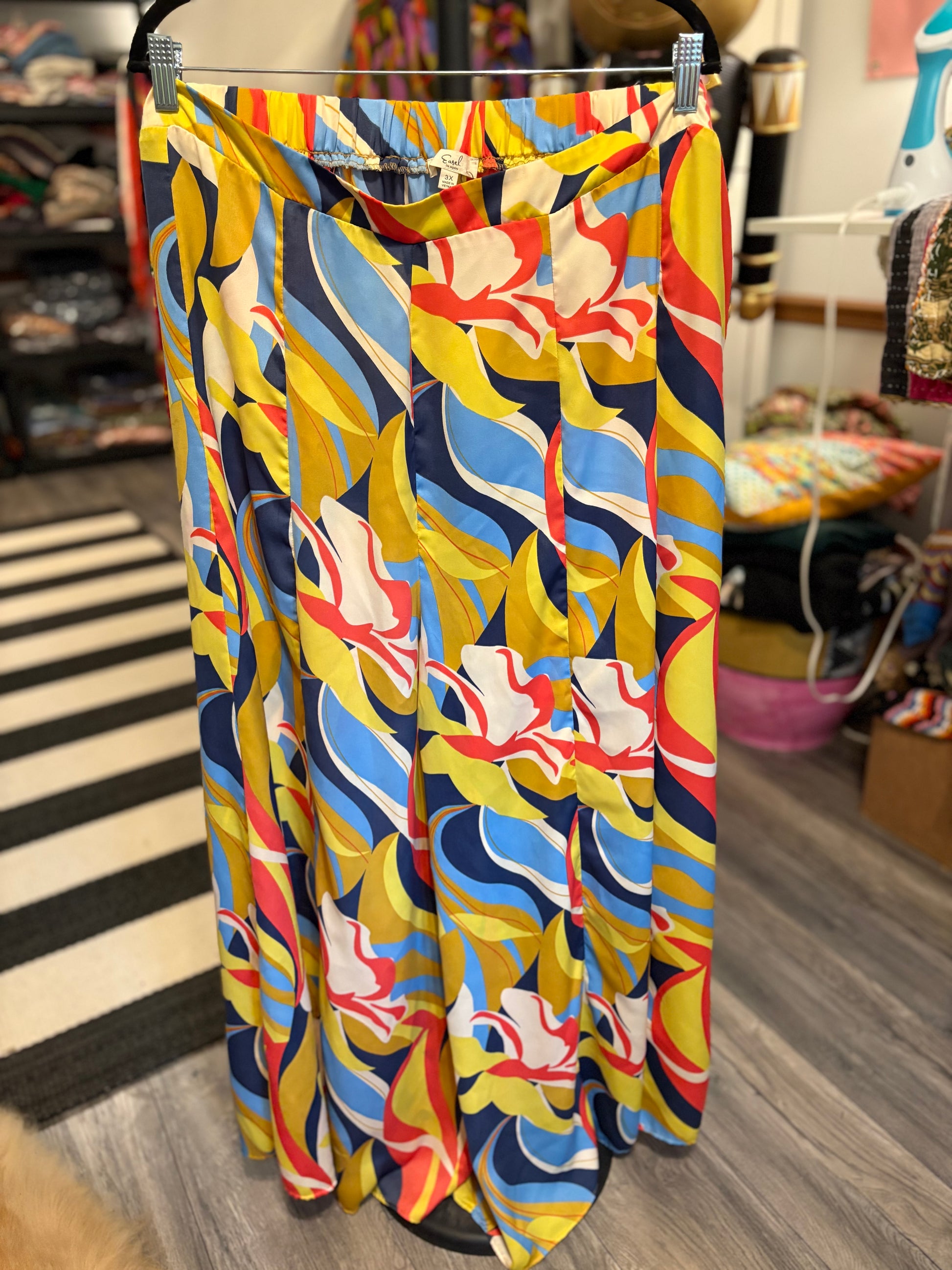 Beautiful abstract printed satin flowy pants.. long and flowy!! Fabulous paired with the Easel Mirabelle Satin Blouse!! Plus Size 1X 2X 3X Pockets