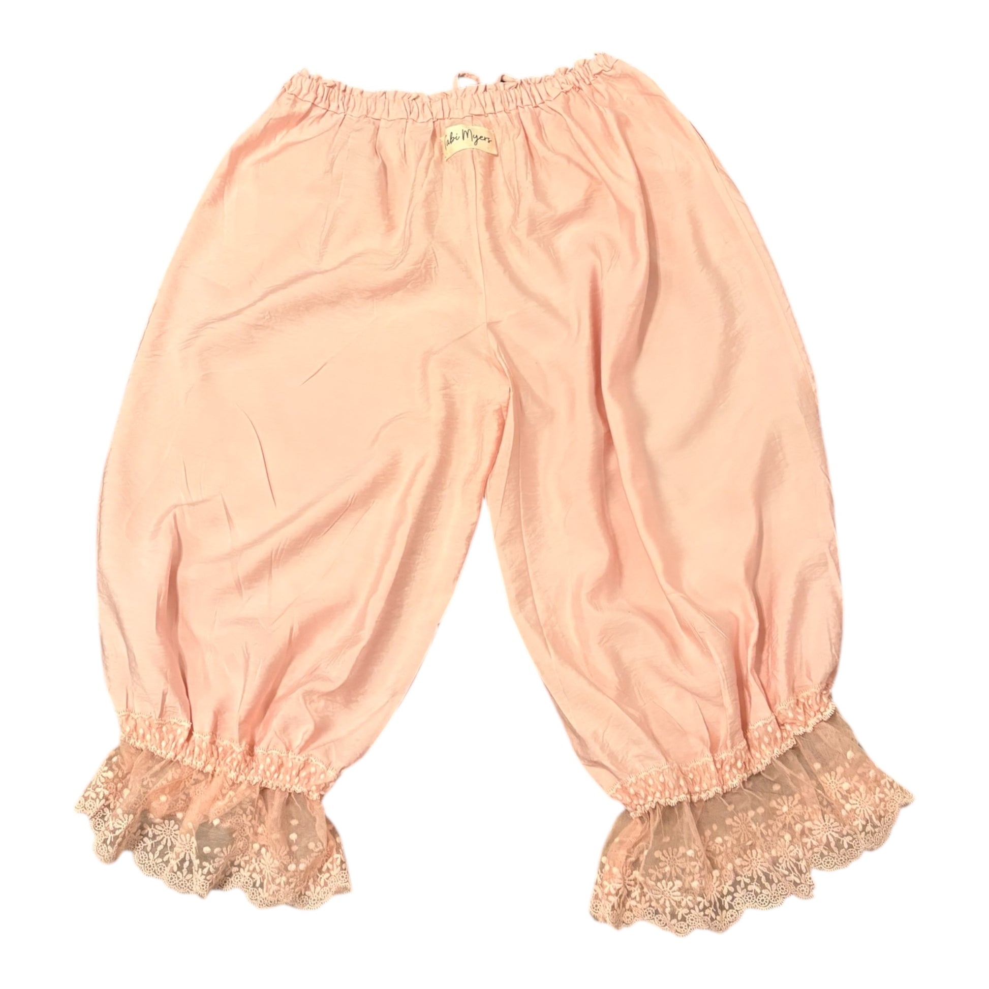 Beautiful lace trimmed bloomers!! The most comfortable pants EVER! Super lightweight and flowy!! Bunny soft vinyl graphic. Have a drawstring at elastic waist.