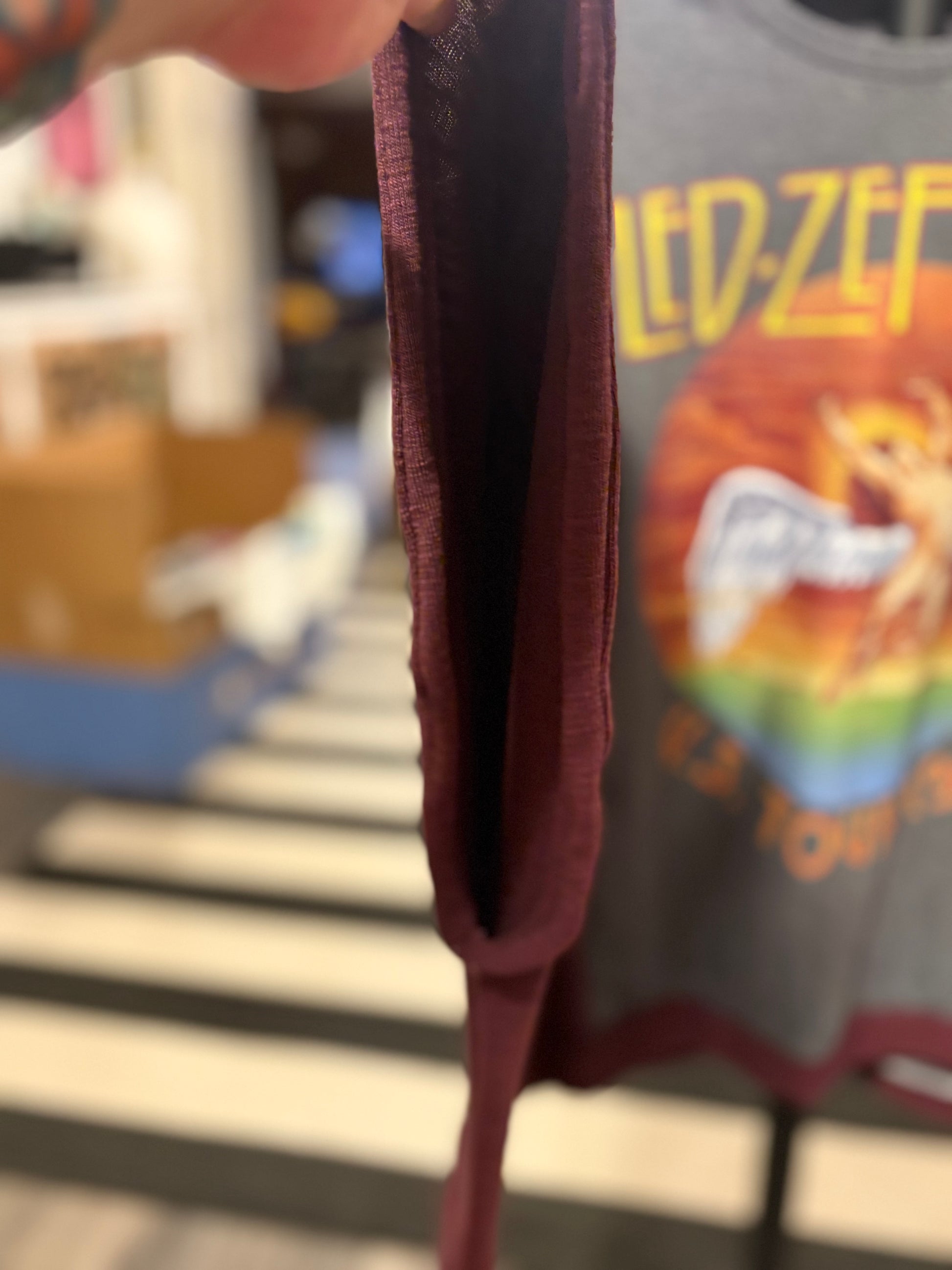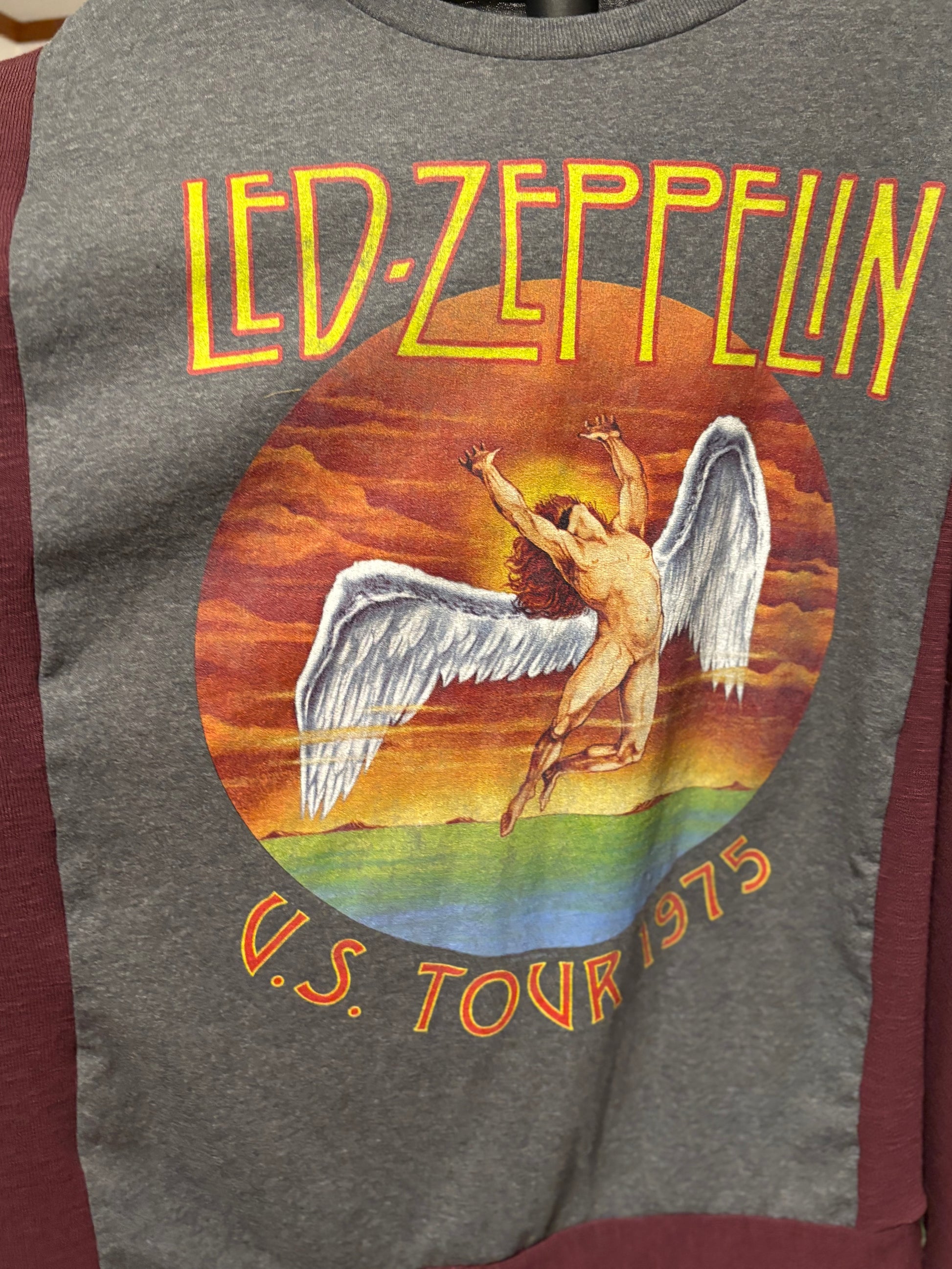 This unique drop sleeve top combines a vintage or upcycled fabric with a graphic tee design to create a sustainable, one-of-a-kind piece. With a relaxed oversized silhouette and long drop sleeves, it’s a comfortable and stylish layering option for casual outfits, streetwear, or cozy lounge looks.