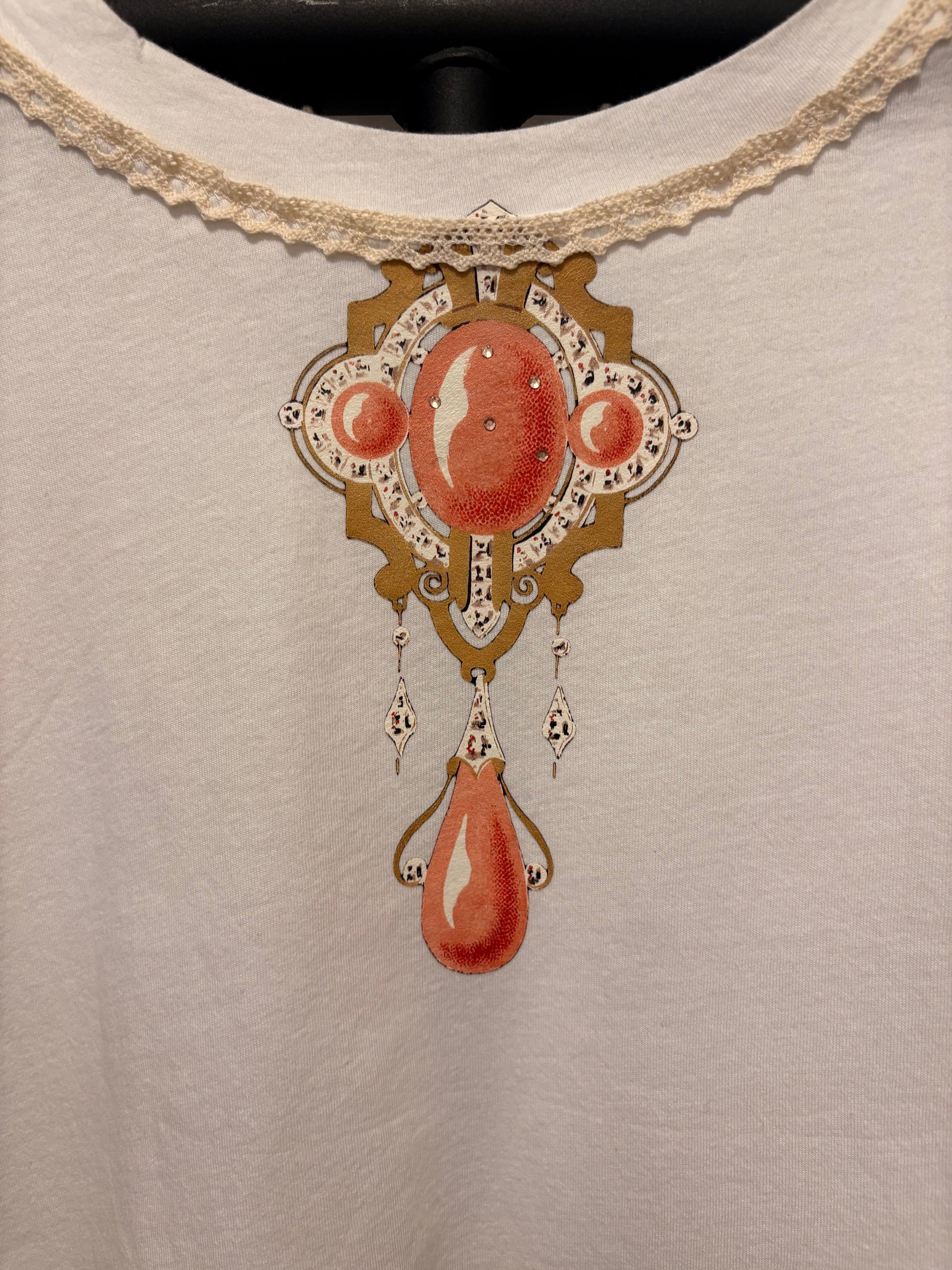 Inspired by Junk Journals. These tees are a collection of favorite things! Cotton tee with vintage graphic images, crochet lace and original vintage design organic cotton knit fabric. SEW many beautiful details ❤️ Shirt used is a Large.
