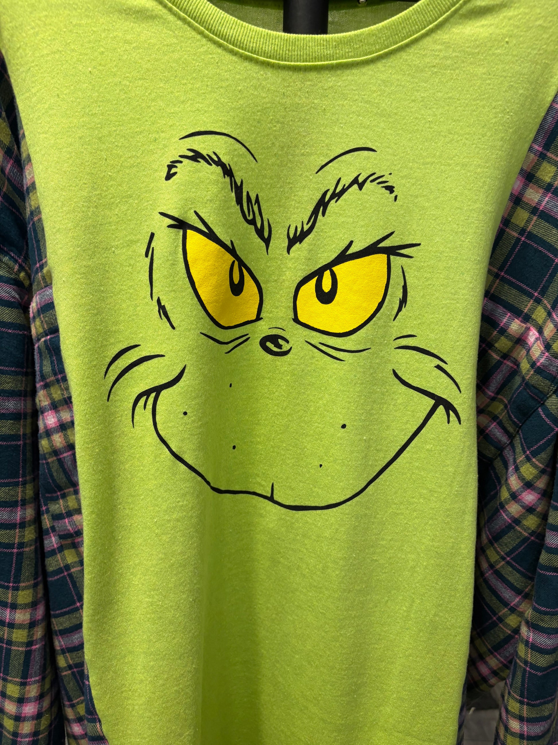 Grinch Upcycled Drop-Sleeve Flannel One Size Fits a Large to 3X