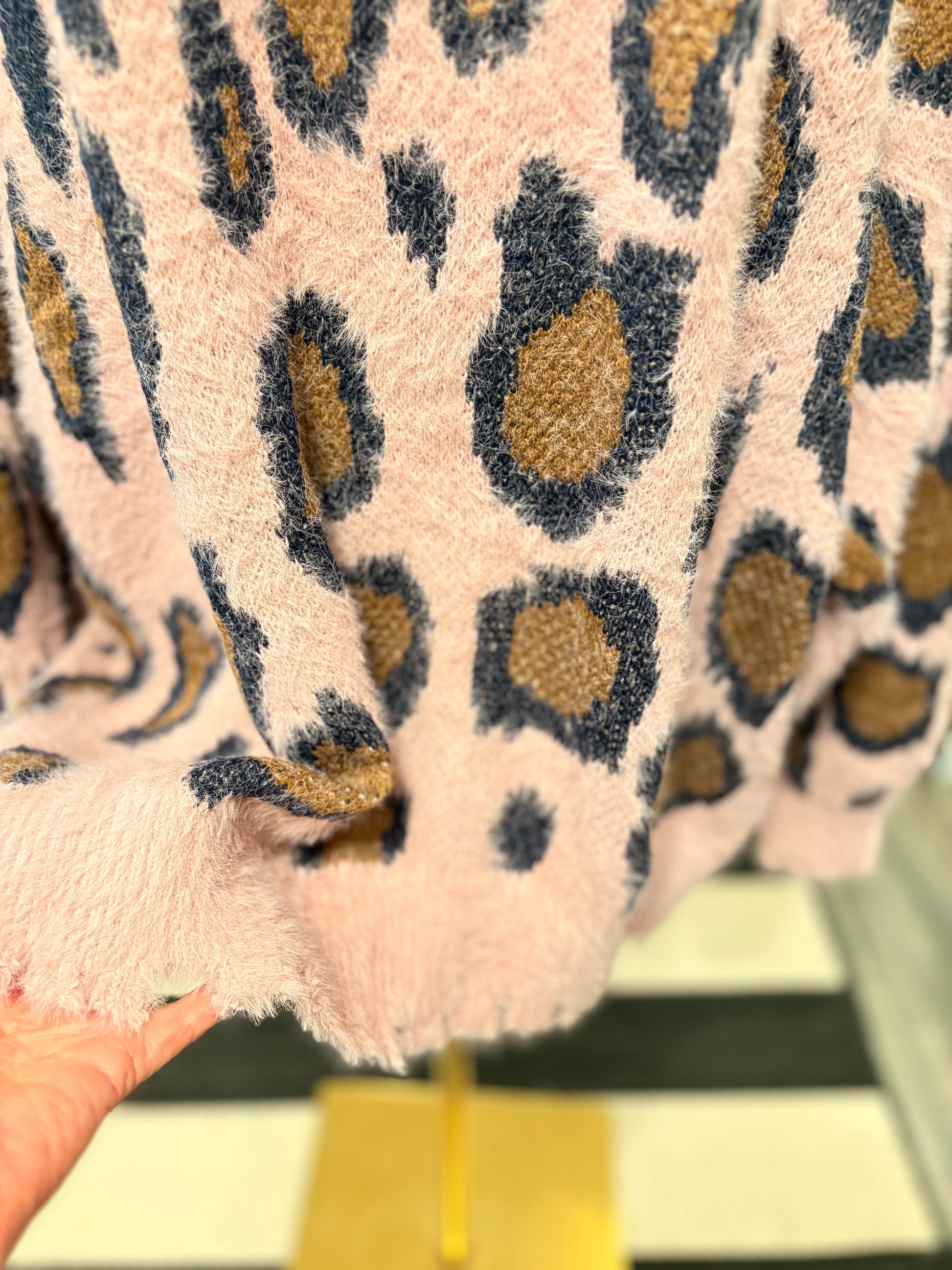 Super soft and fuzzy cheetah spot sweater. Oversized fit with balloon sleeves.  Wide neckline. Beautiful!!