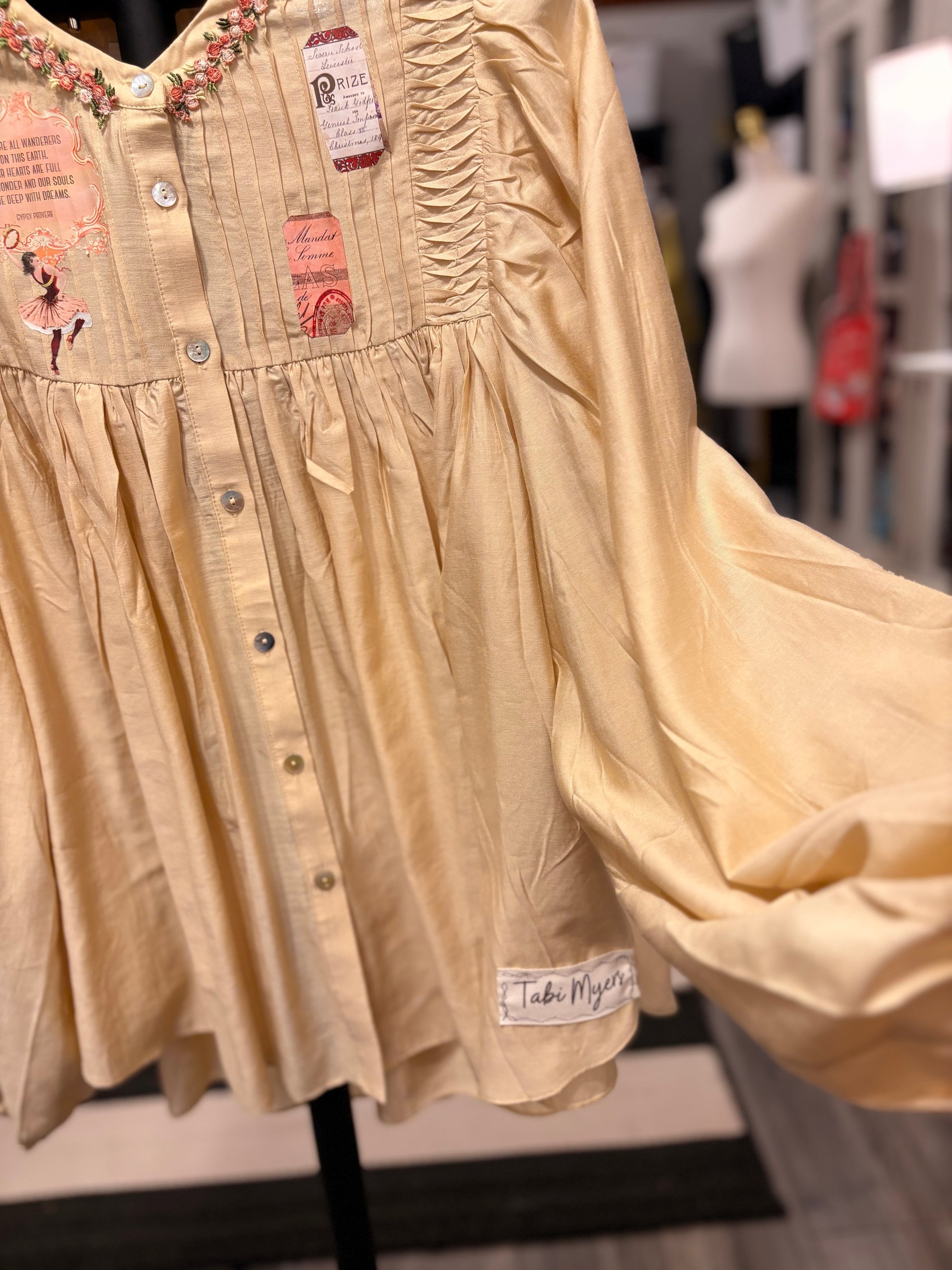 Beautiful Upcycled boutique brand shirt and Graphic Fairy Vintage designed DTFs..used to make this oversized and GORGEOUS ! Lots of beautiful details!!