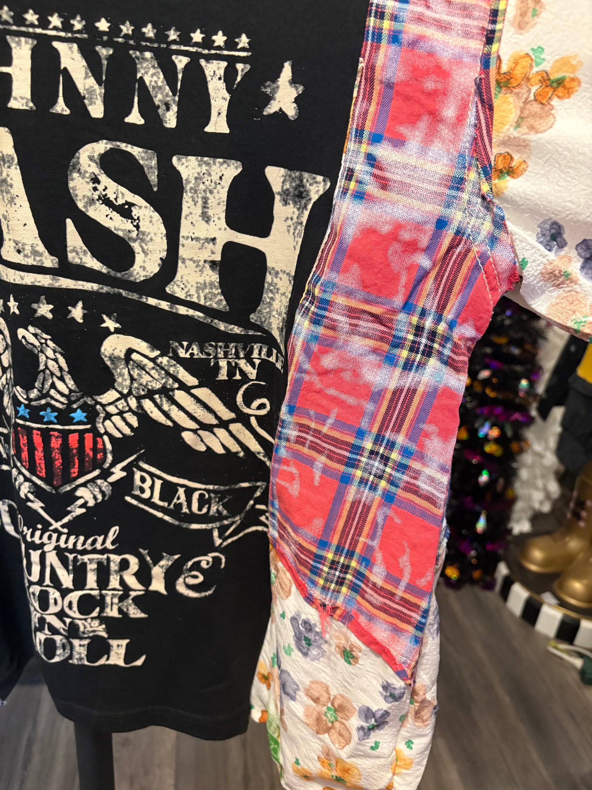 Man in Black Upcycled Frayed Patchwork Tee One Size Fits a Small to Large