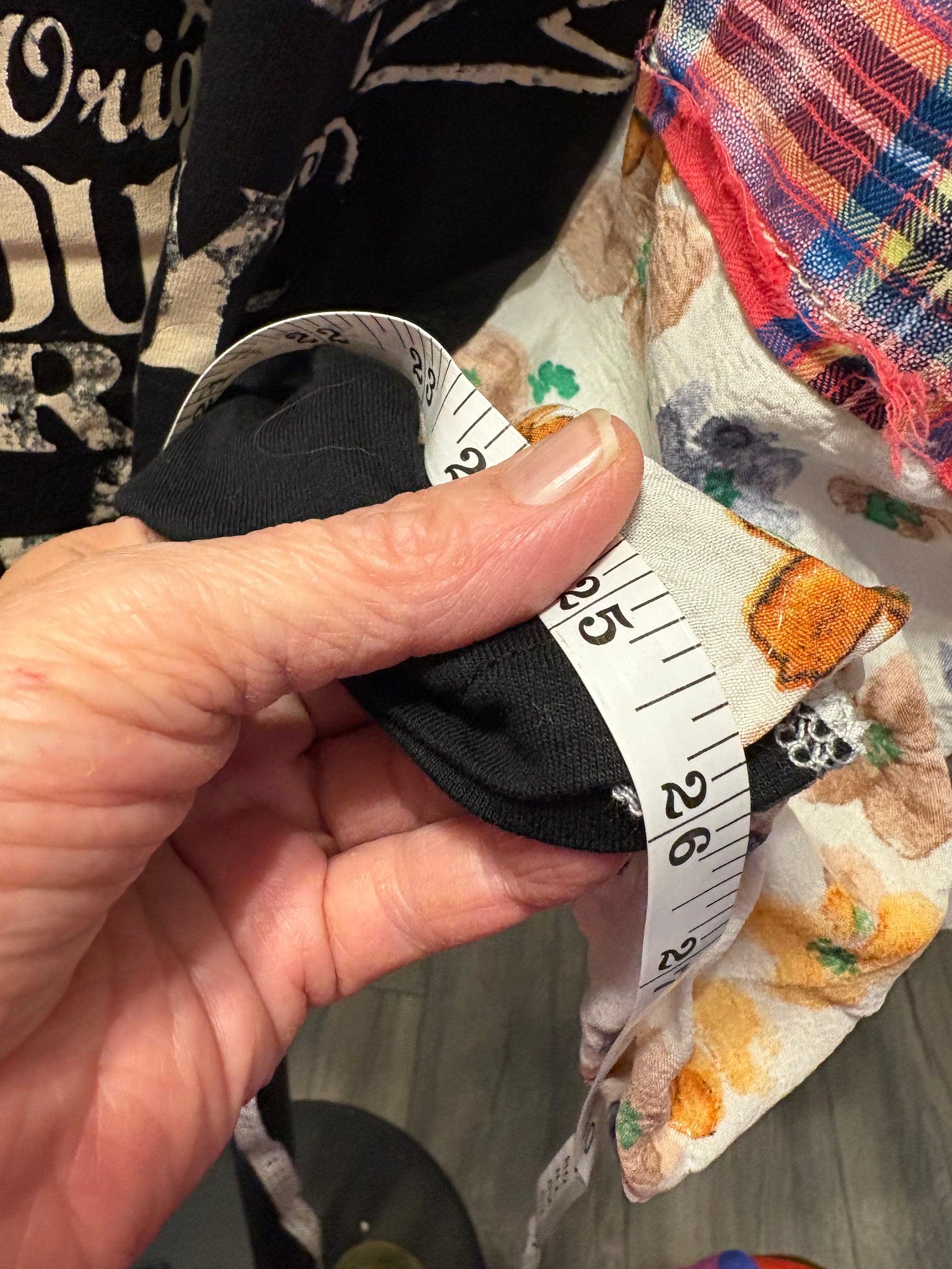 • Handmade from upcycled garments: can include knit tees, sweatshirts, blouses, or vintage textiles