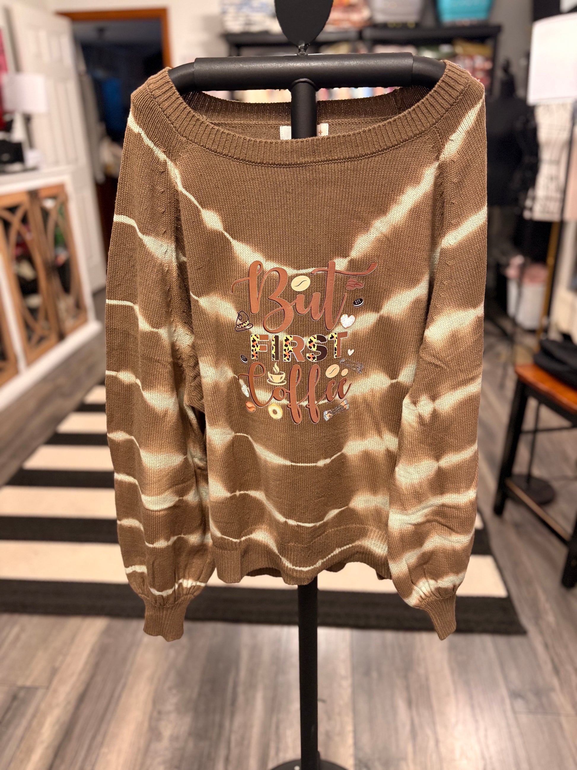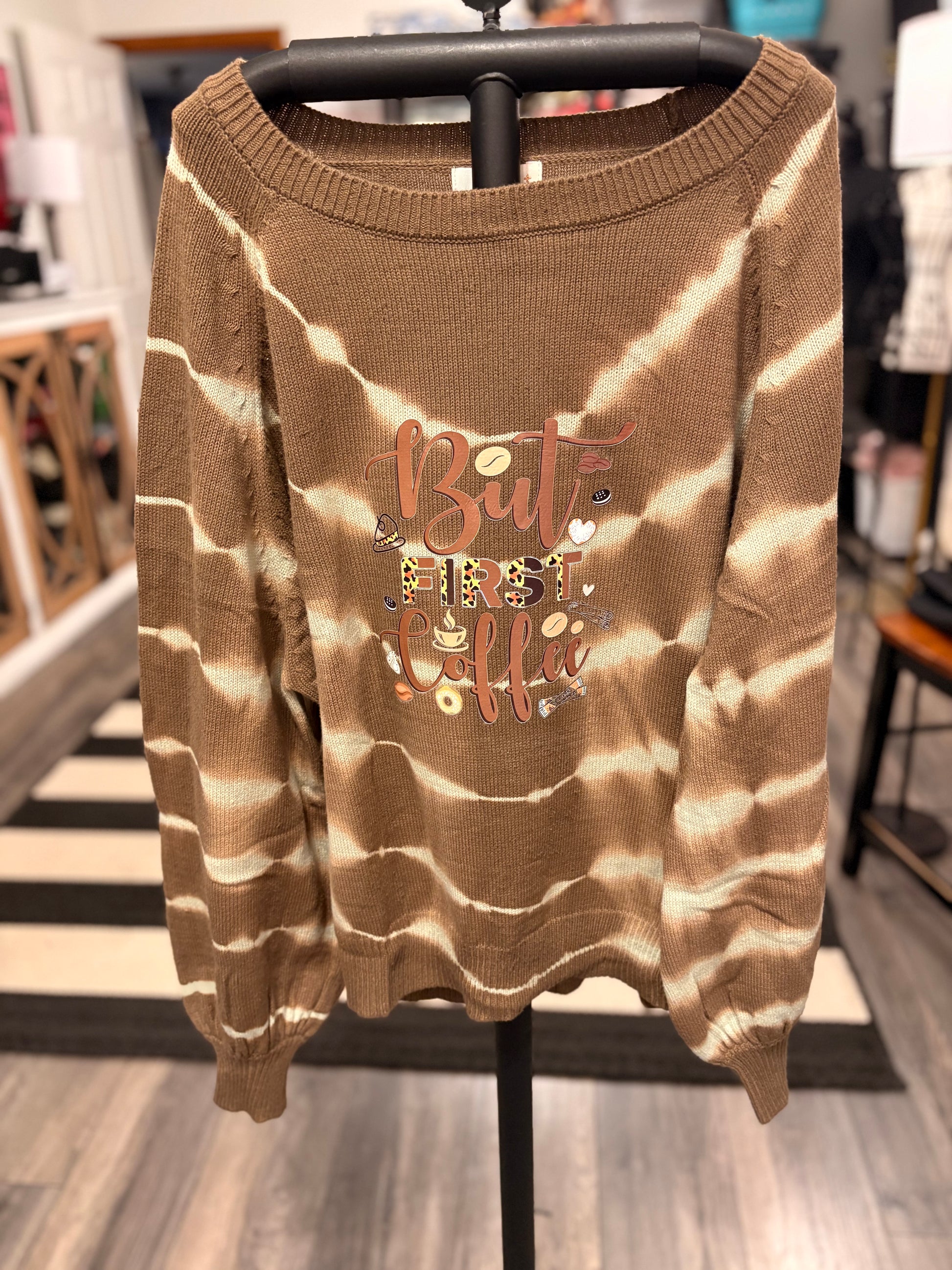 Coffee First Upcycled Oversized Sweater Fits Large/XL