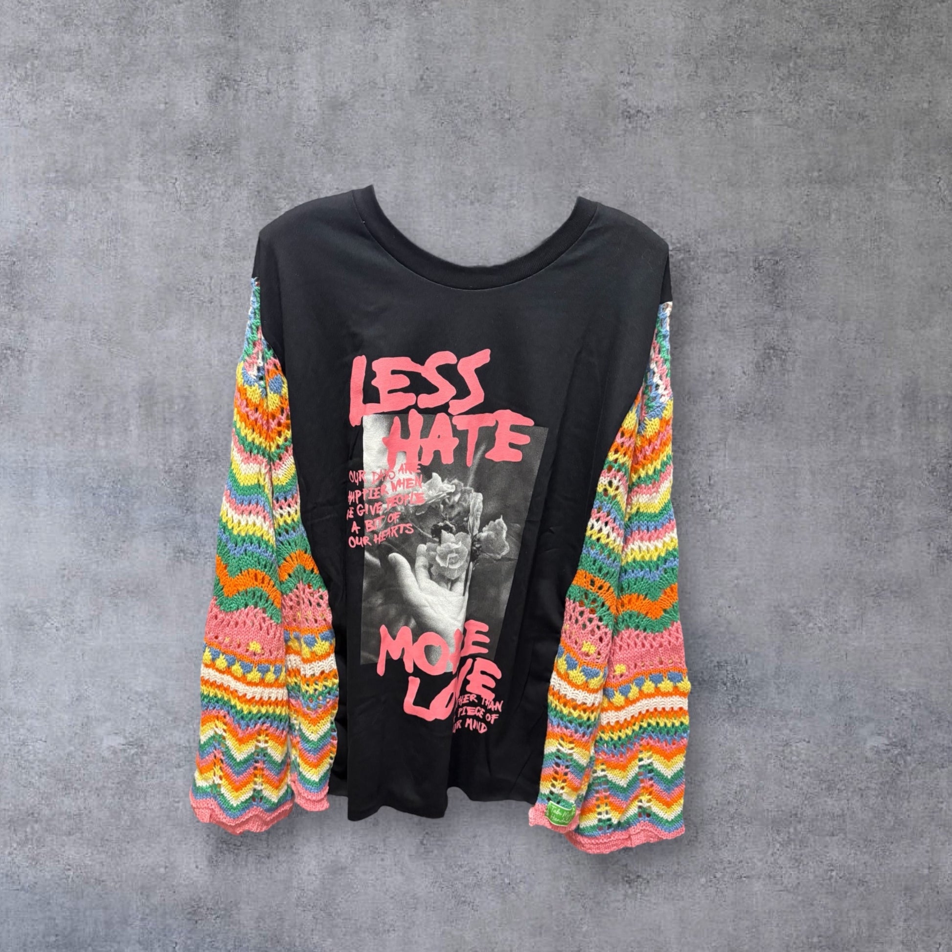 This unique drop sleeve top combines a vintage or upcycled fabric with a graphic tee design to create a sustainable, one-of-a-kind piece. With a relaxed oversized silhouette and long drop sleeves, it’s a comfortable and stylish layering option for casual outfits, streetwear, or cozy lounge looks.
