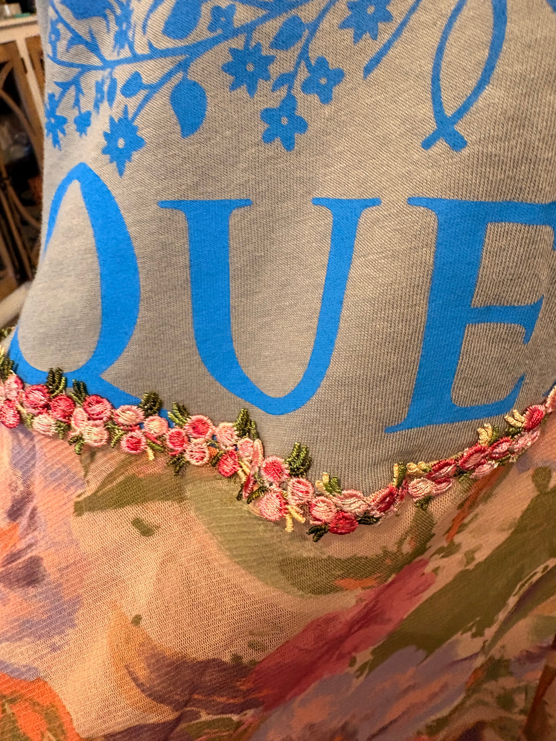 Upcycled graphic tee and layered ballerina floral skirt with embroidered trim waist used to make this FABULOUS ROCKSTAR and Fairytales Dress. Looks great with absolutely everything! You will ROCK this!!!❤️