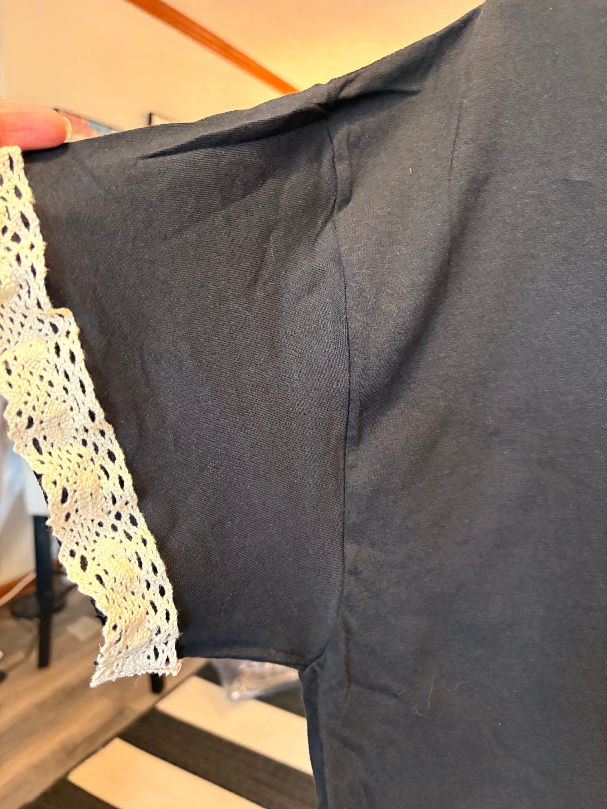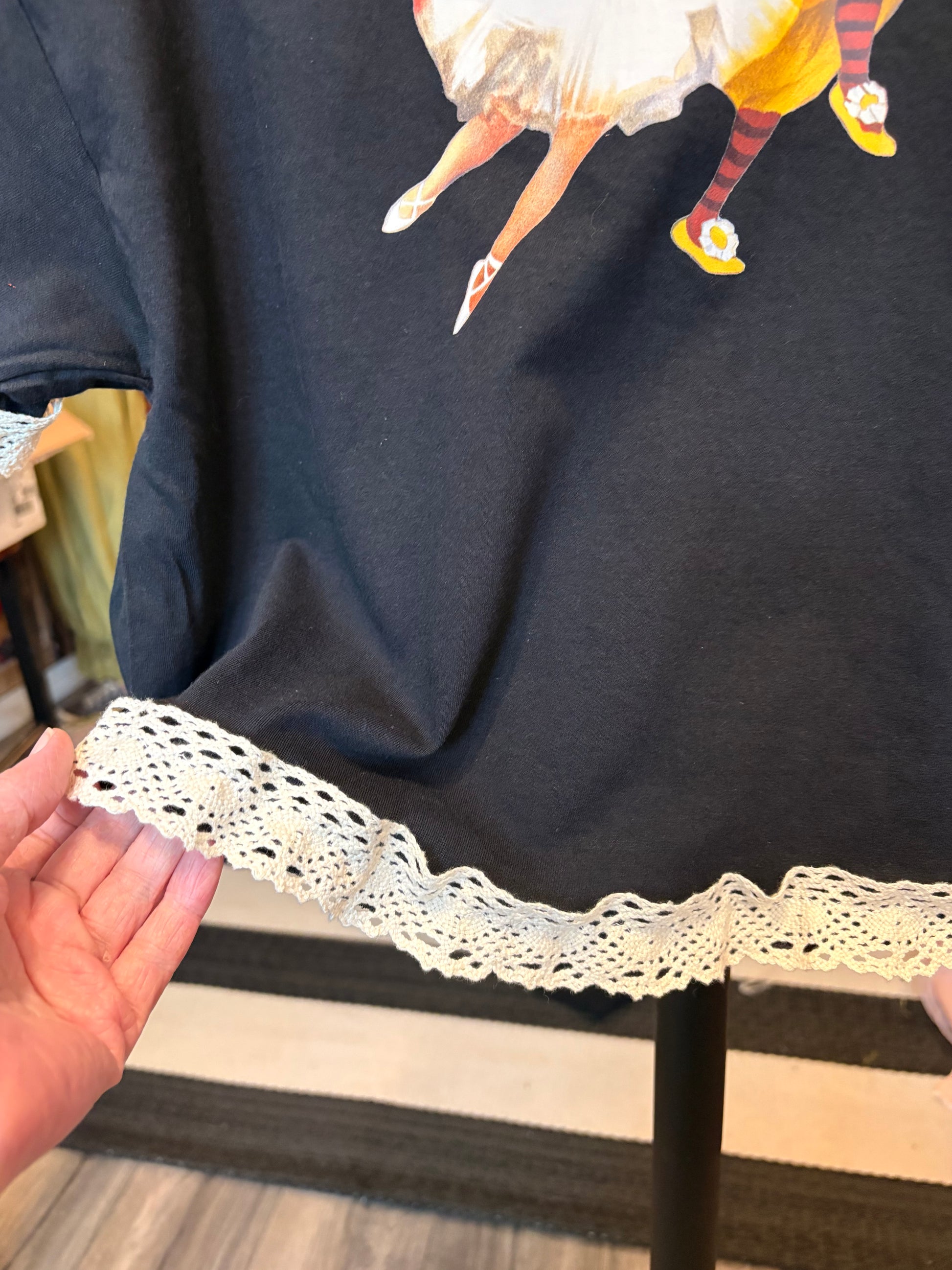Inspired by Junk Journals. These tees are a collection of favorite things! Original graphic tee design using layers of digital prints and natural crochet trim SEW many beautiful details ❤️