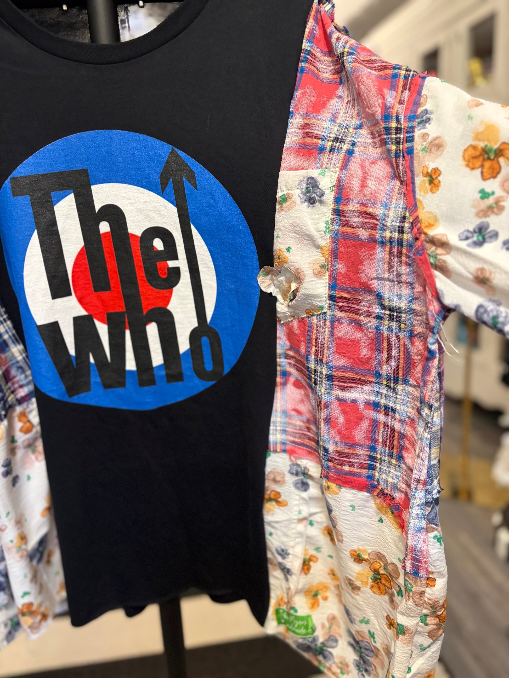 Who? Upcycled Frayed Patchwork Tee One Size Fits A Small to XXL Oversized