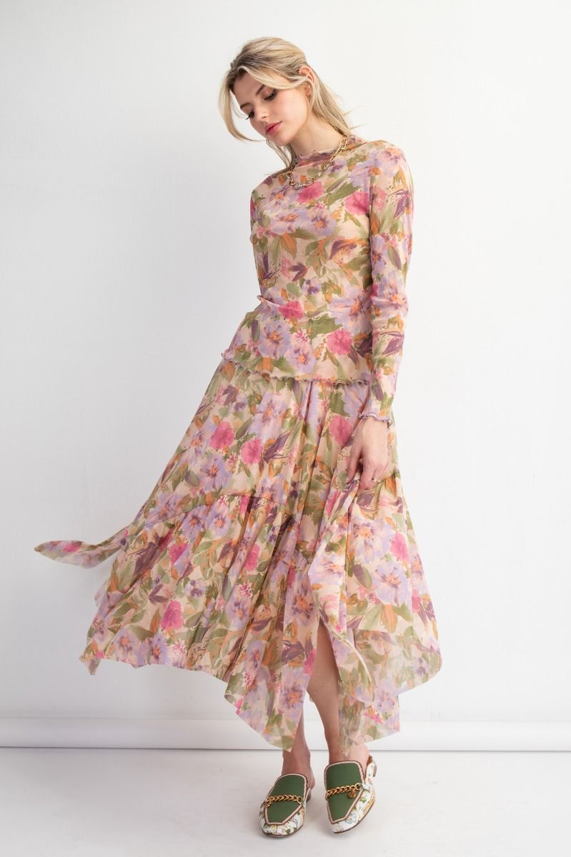 FLORAL PRINTED MESH BALLERINA SKIRT