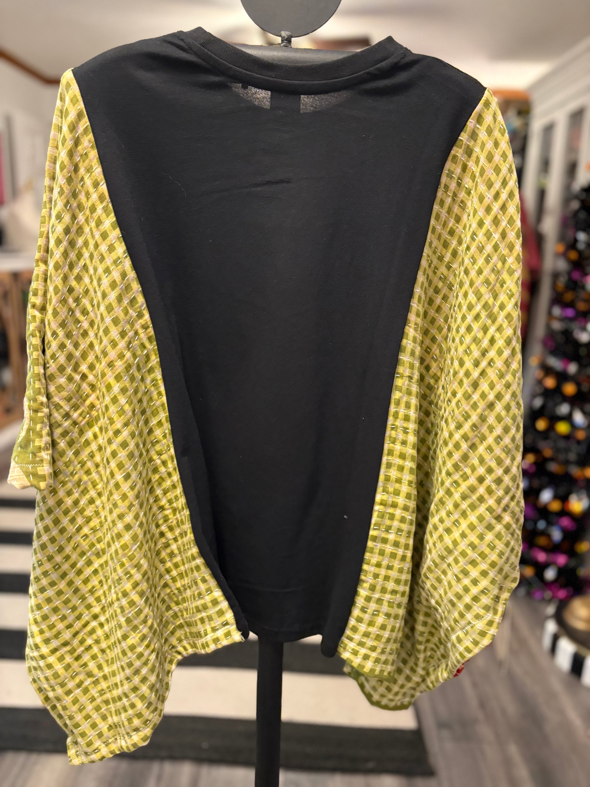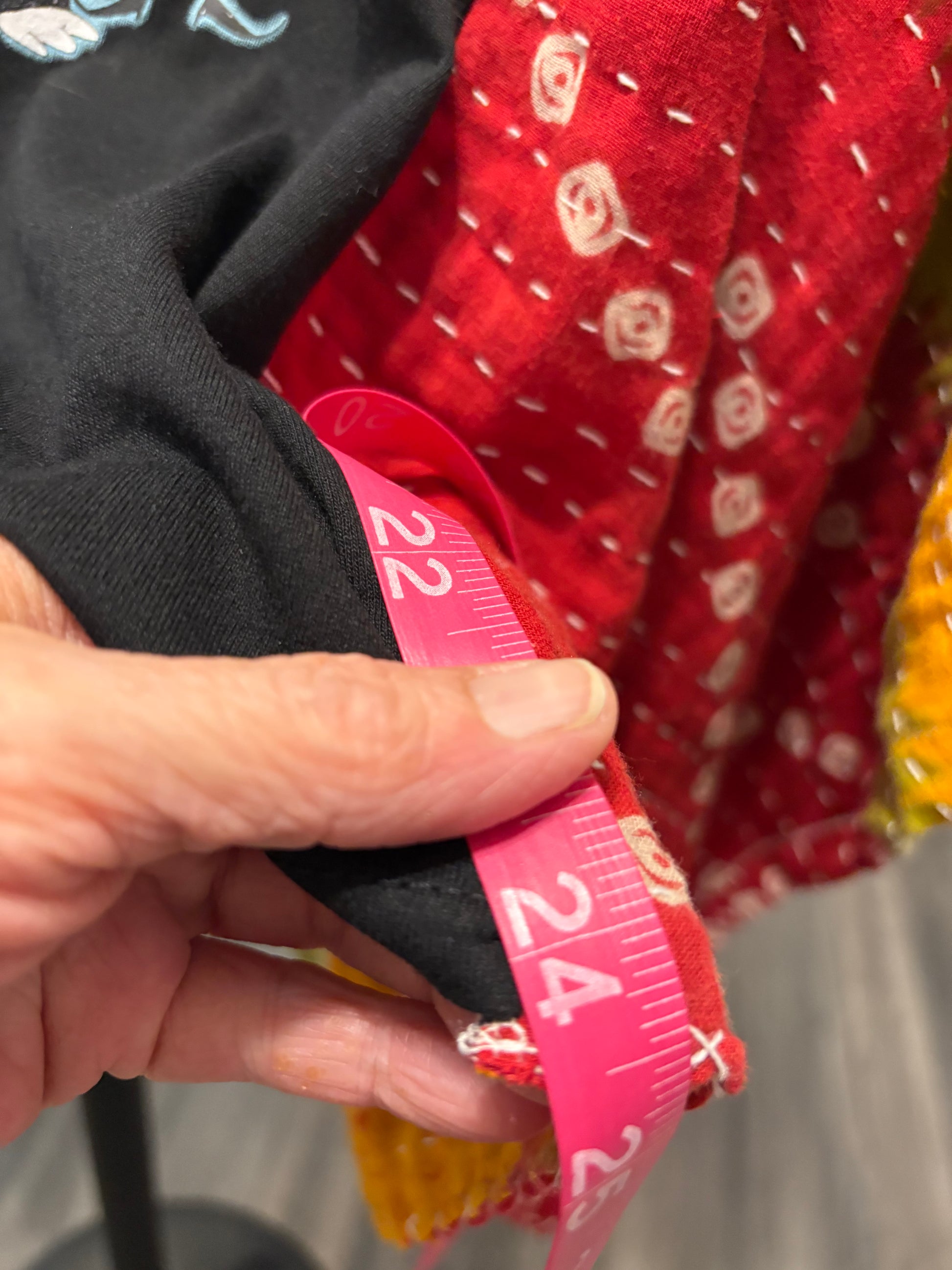 Beautiful vintage Kantha quilt and graphic tee paired to make this FABULOUS Upcycled tee. Vintage Kantha quilts have been well loved. They may have white strings (which can be cut) , slight holes, small stains,and may be weathered, rustic and tattered which all lends to the vintage beauty of the top. Perfectly imperfect!!