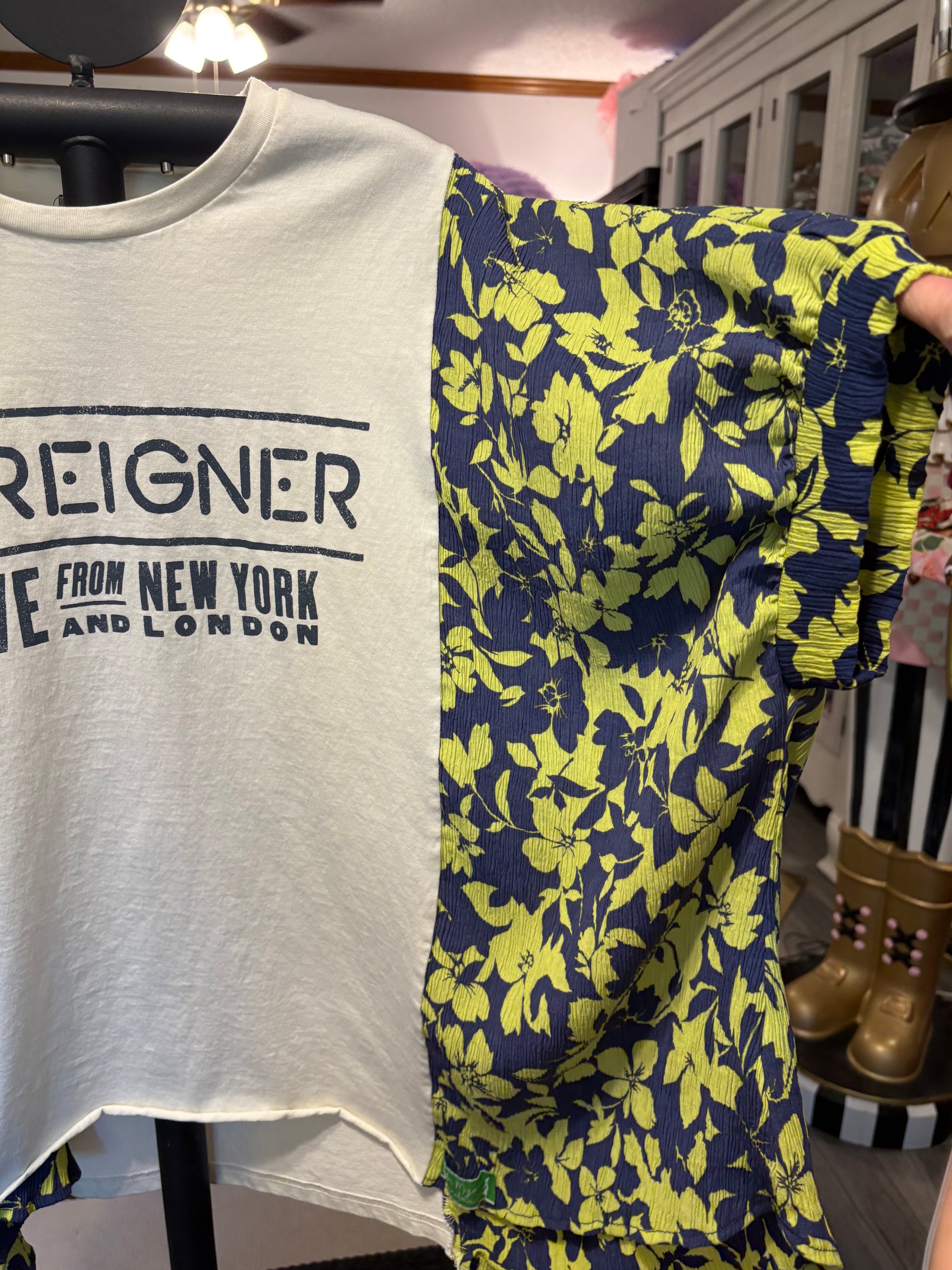 Foreigner Upcycled Drop-Sleeve Tee One Size Fits a Small to XL