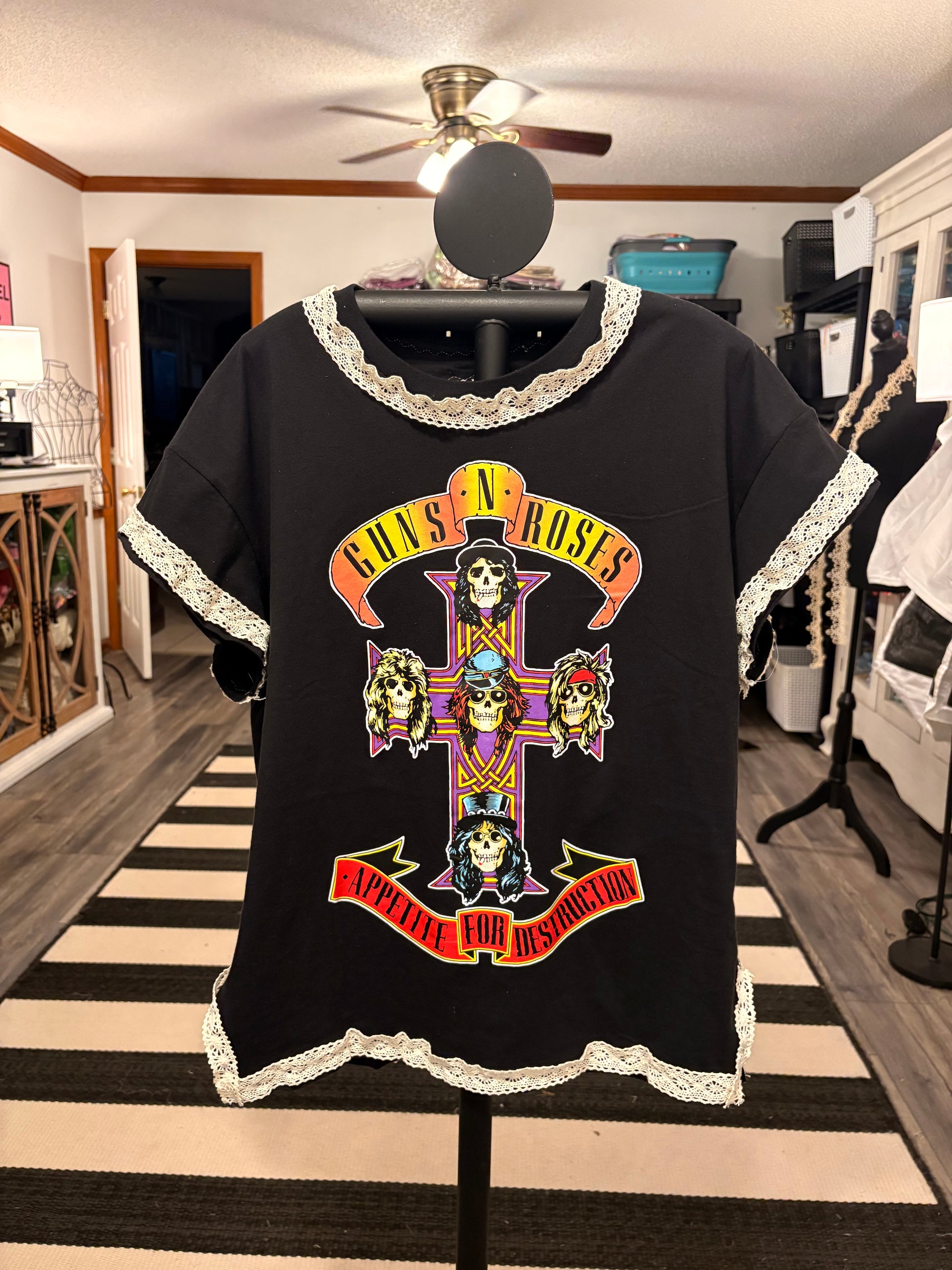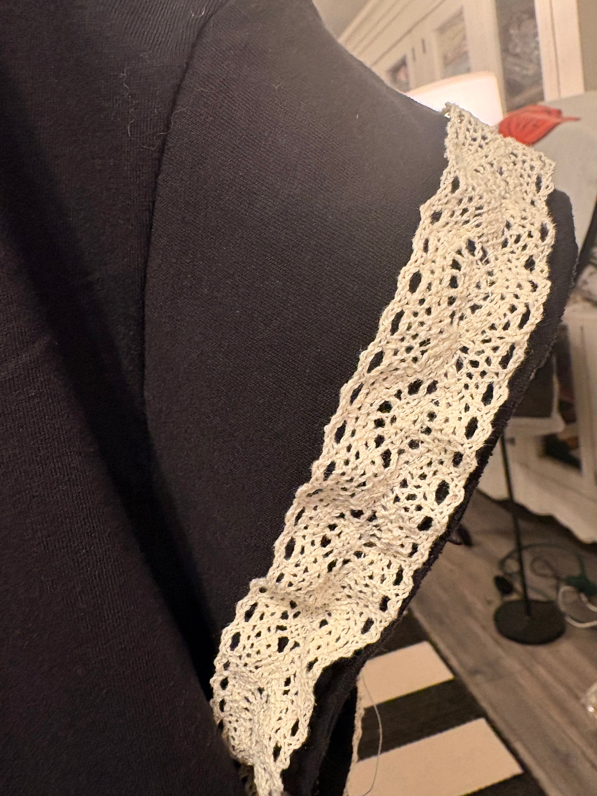 Inspired by Junk Journals. These tees are a collection of favorite things! Upcycled graphic tee and natural crochet trim SEW many beautiful details ❤️ side slits