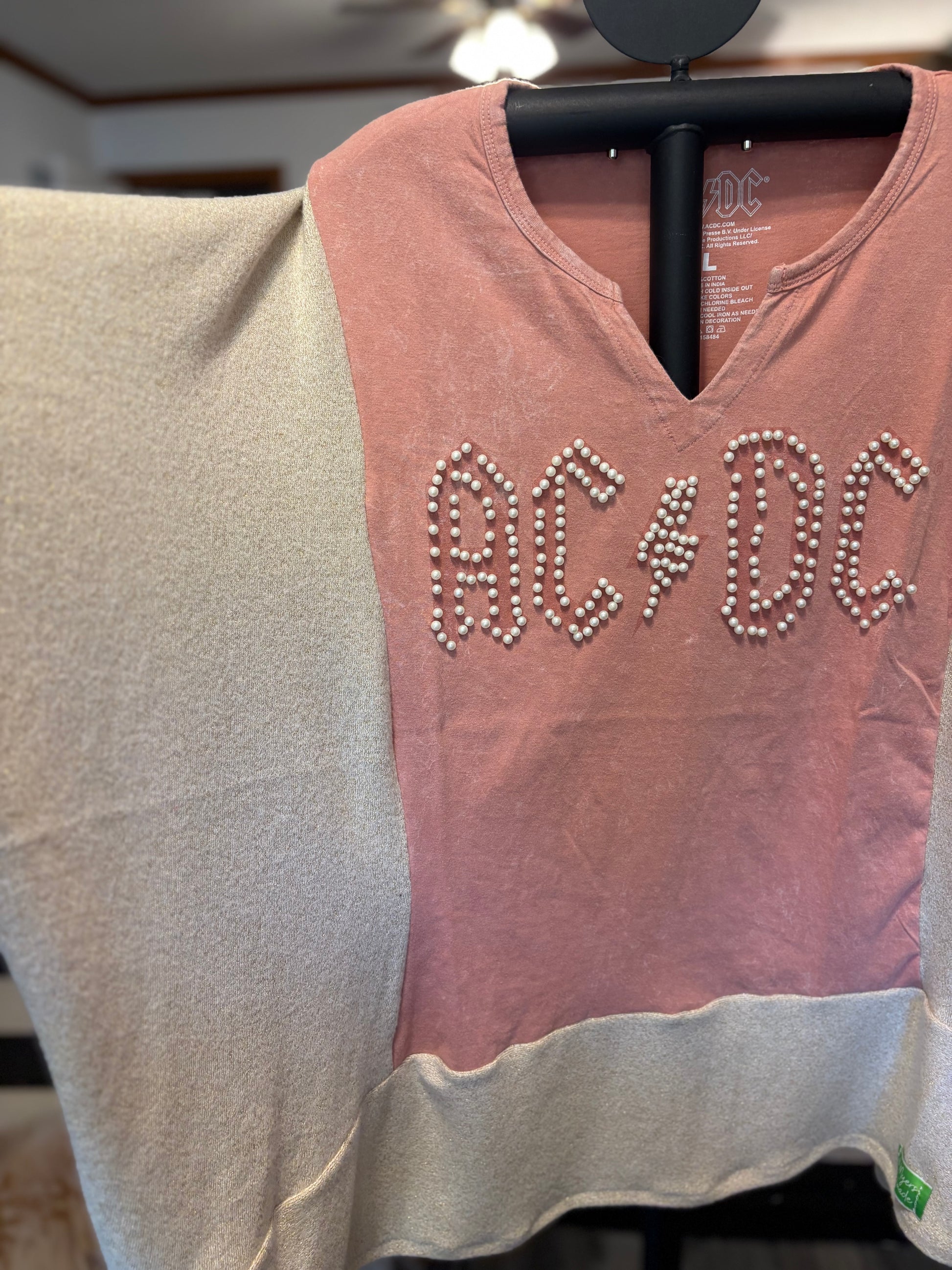 This unique drop sleeve top combines a vintage or upcycled fabric with a graphic tee design to create a sustainable, one-of-a-kind piece. With a relaxed oversized silhouette and long drop sleeves, it’s a comfortable and stylish layering option for casual outfits, streetwear, or cozy lounge looks.