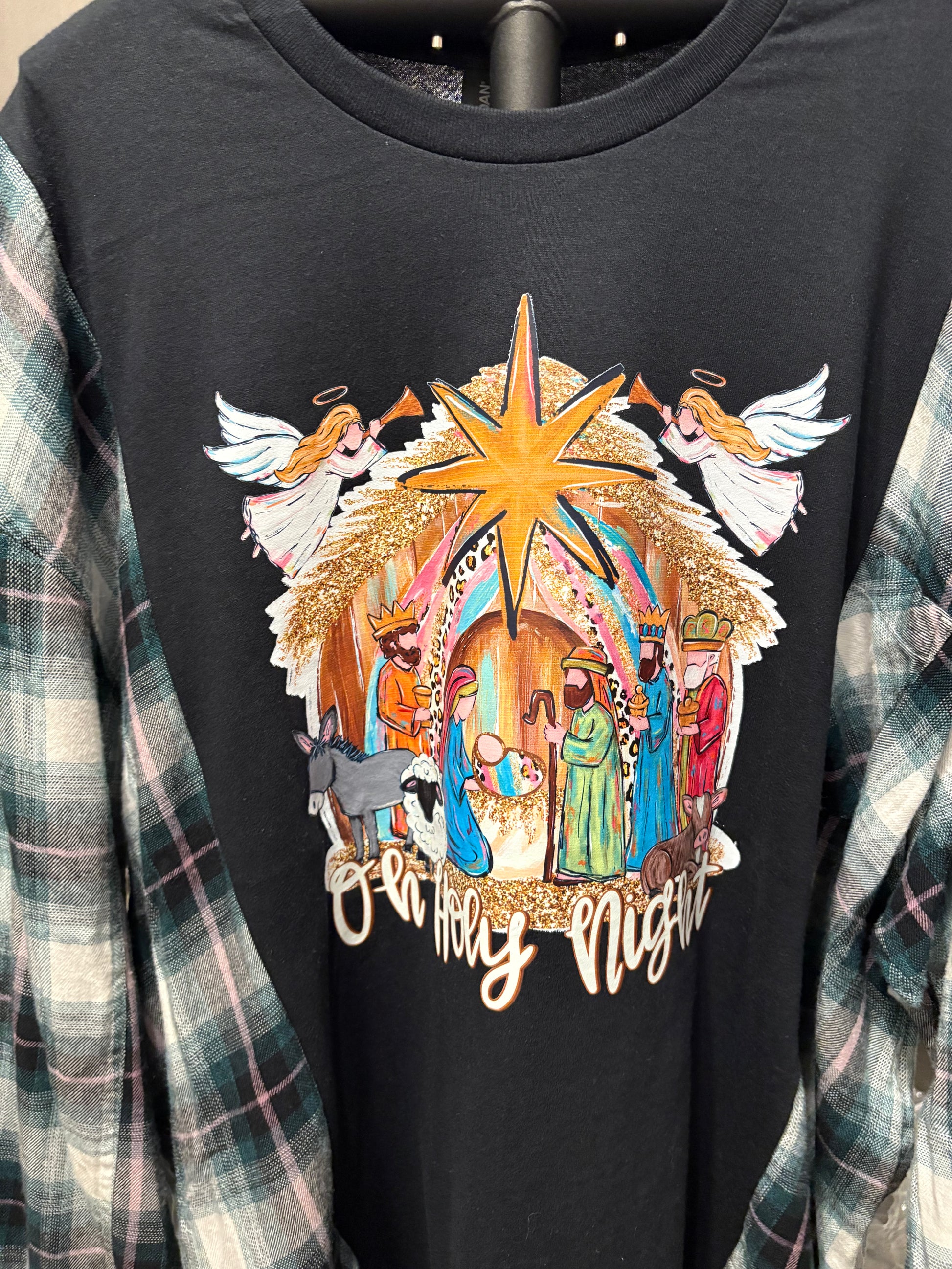 Oh Holy Night Flannel Tee One Size Fits a Large to 3X Oversized
