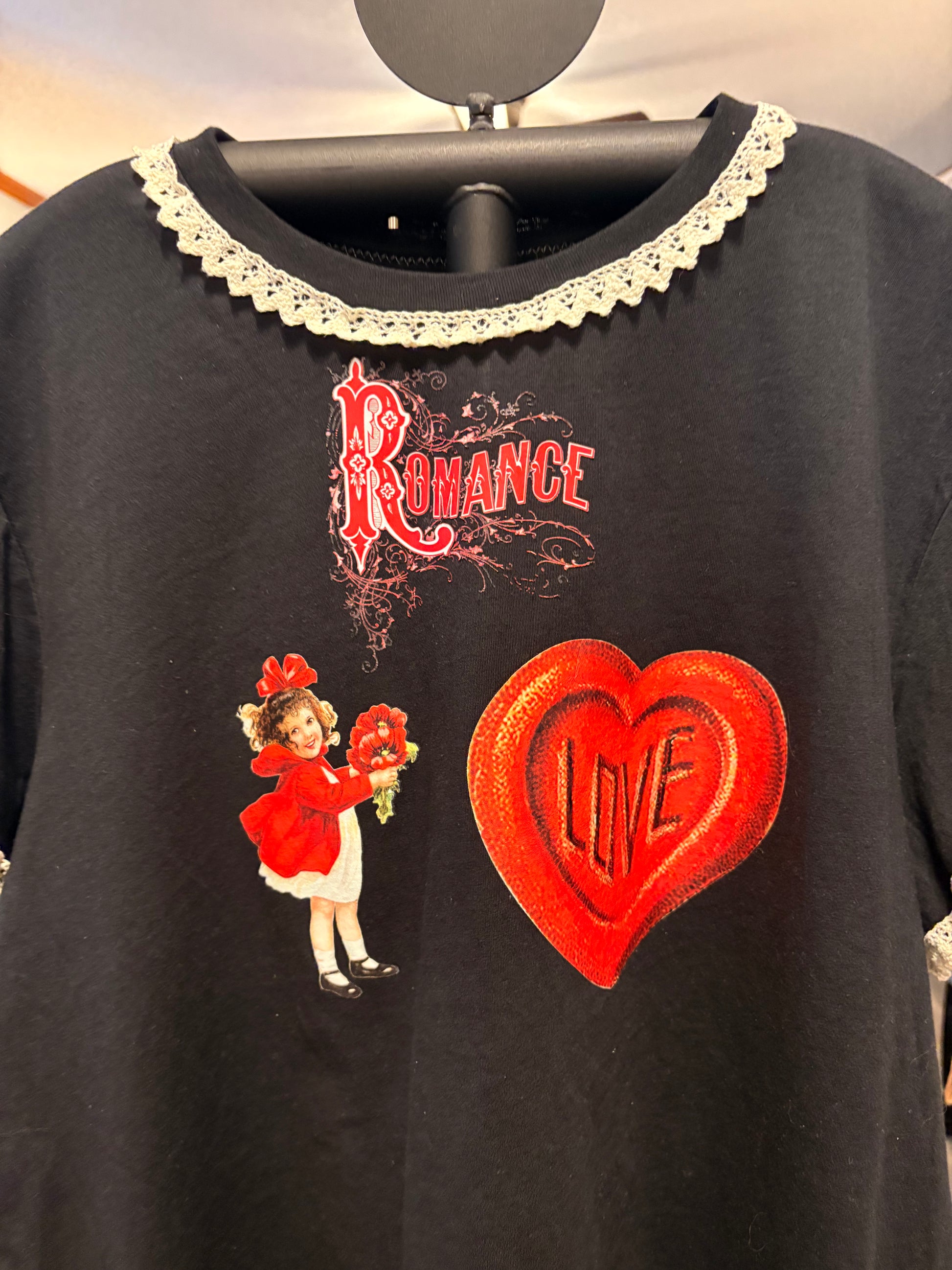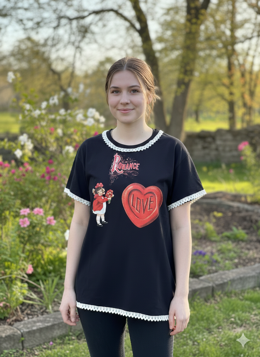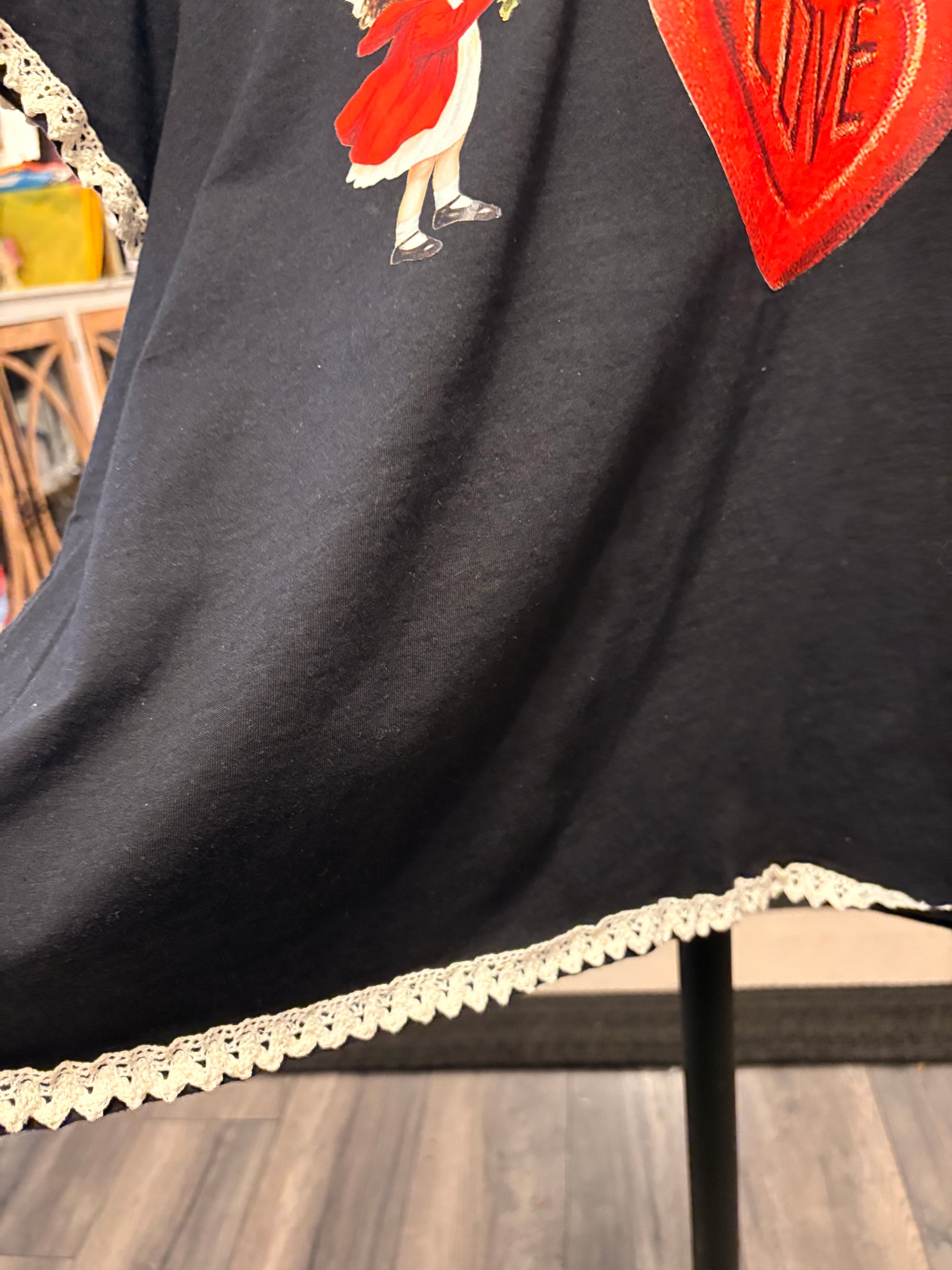 Inspired by Junk Journals. These tees are a collection of favorite things! Upcycled graphic tee and crochet trim. SEW many beautiful details ❤️ Shirt used is a 2X.