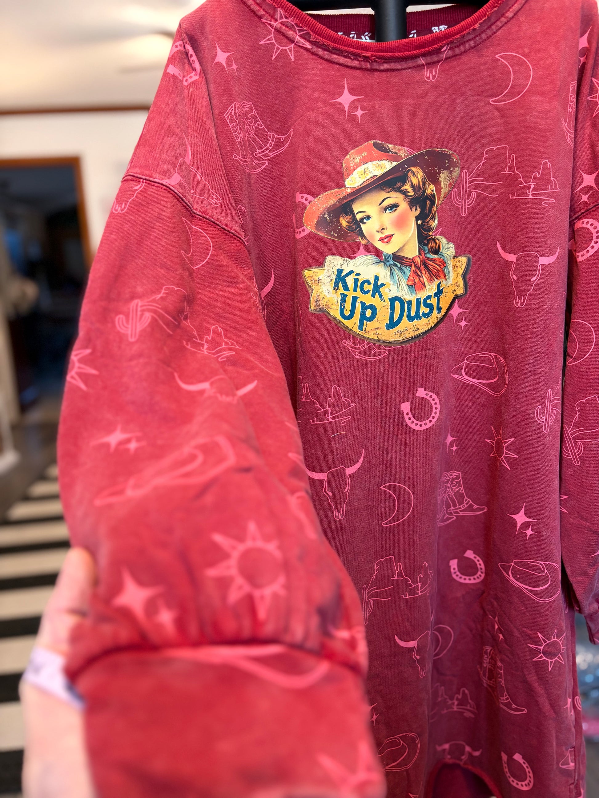 Kick Up Dust Upcycled Oversized Sweatshirt Long Length Fits Small-Large