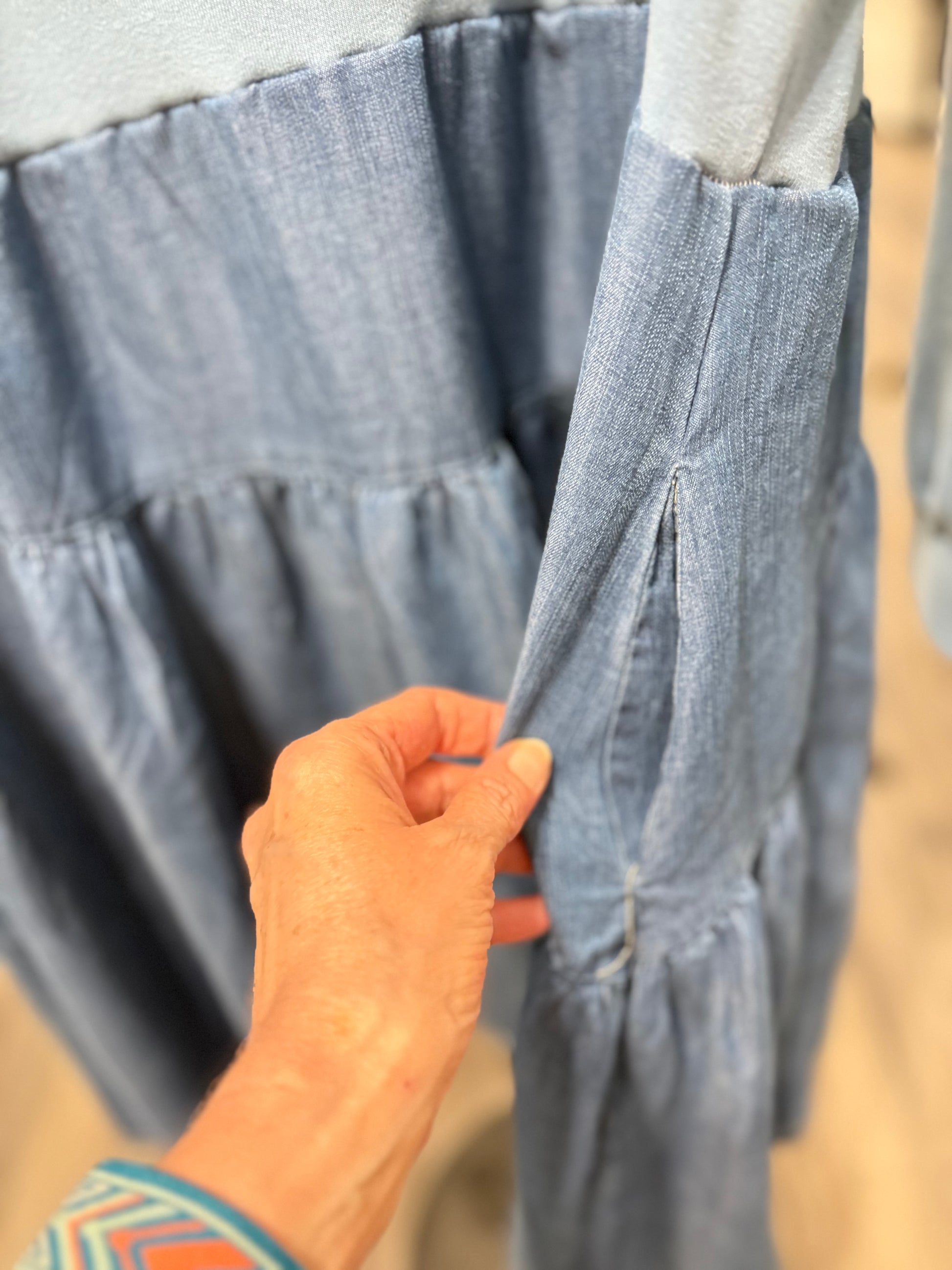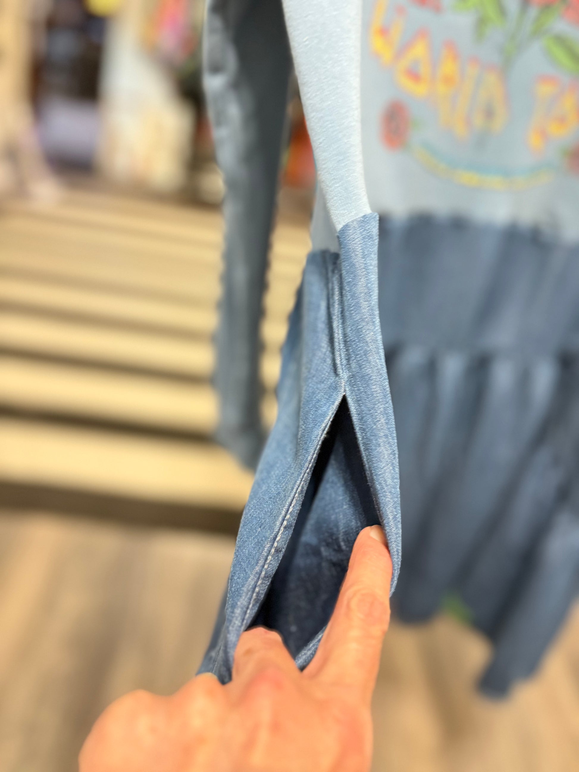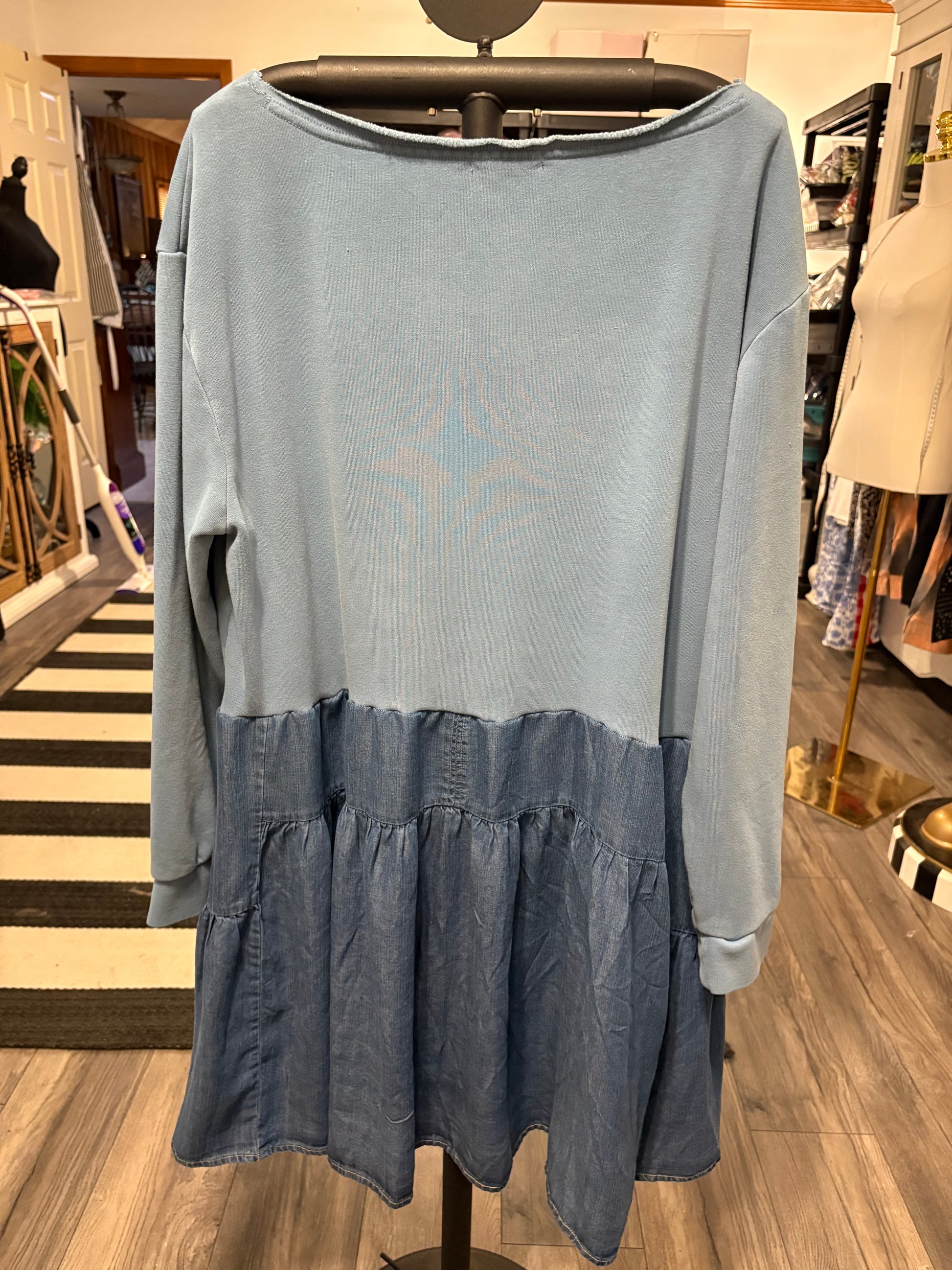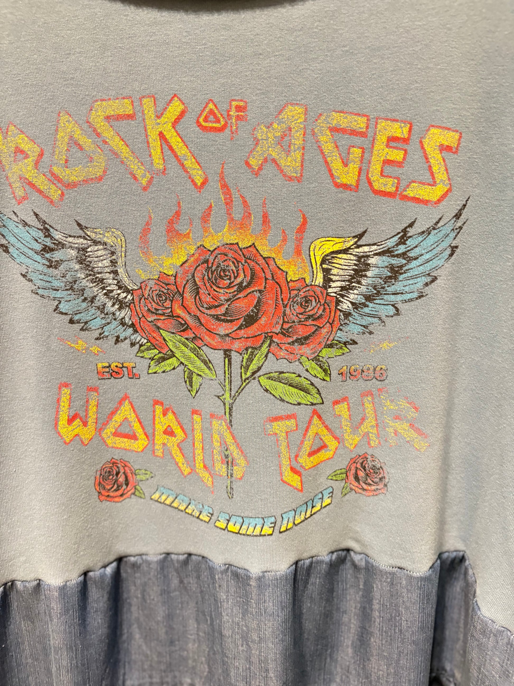 This unique Rockstar dress combines Upcycled fabric and garments used to create this one of a kind piece!