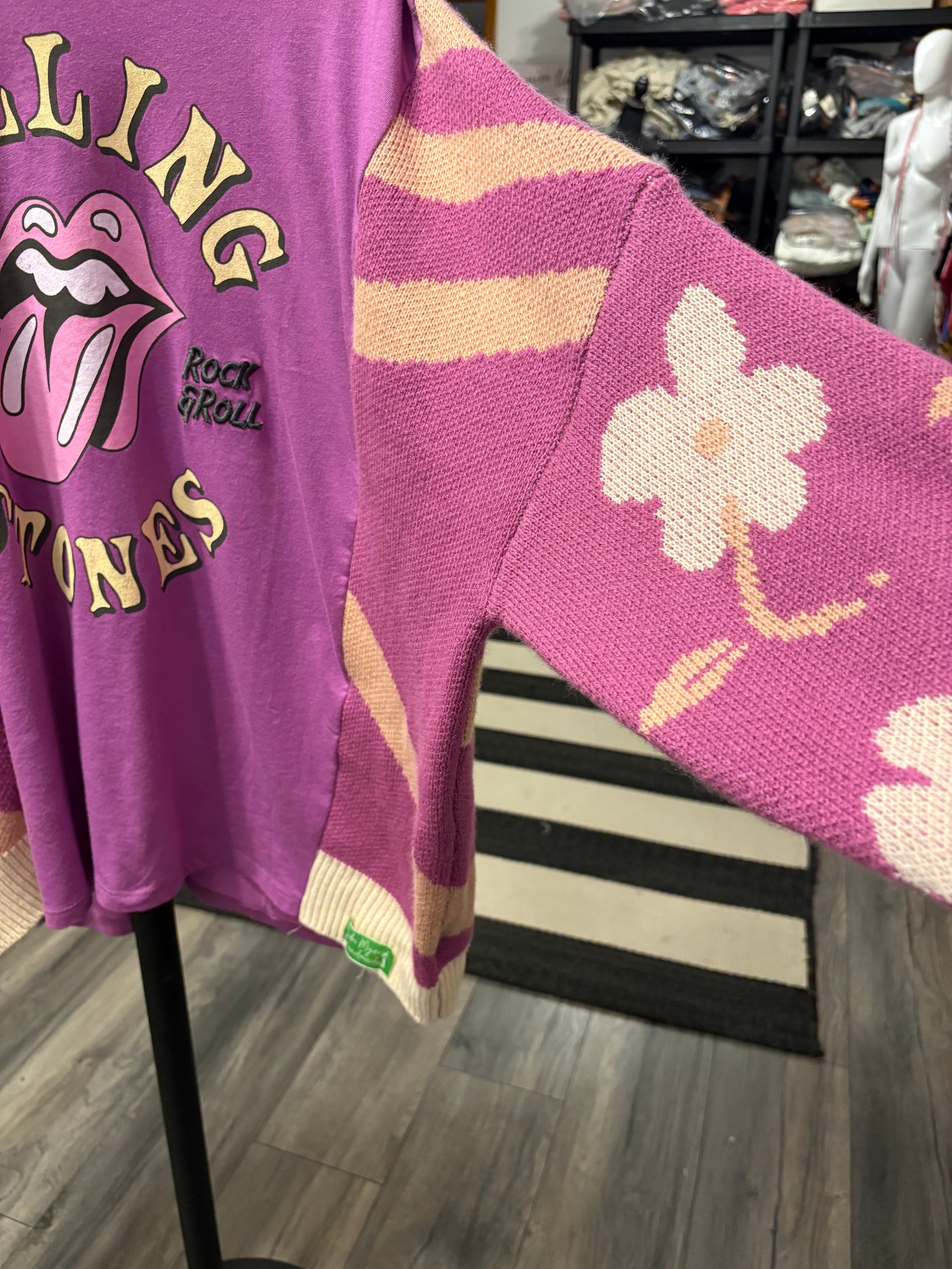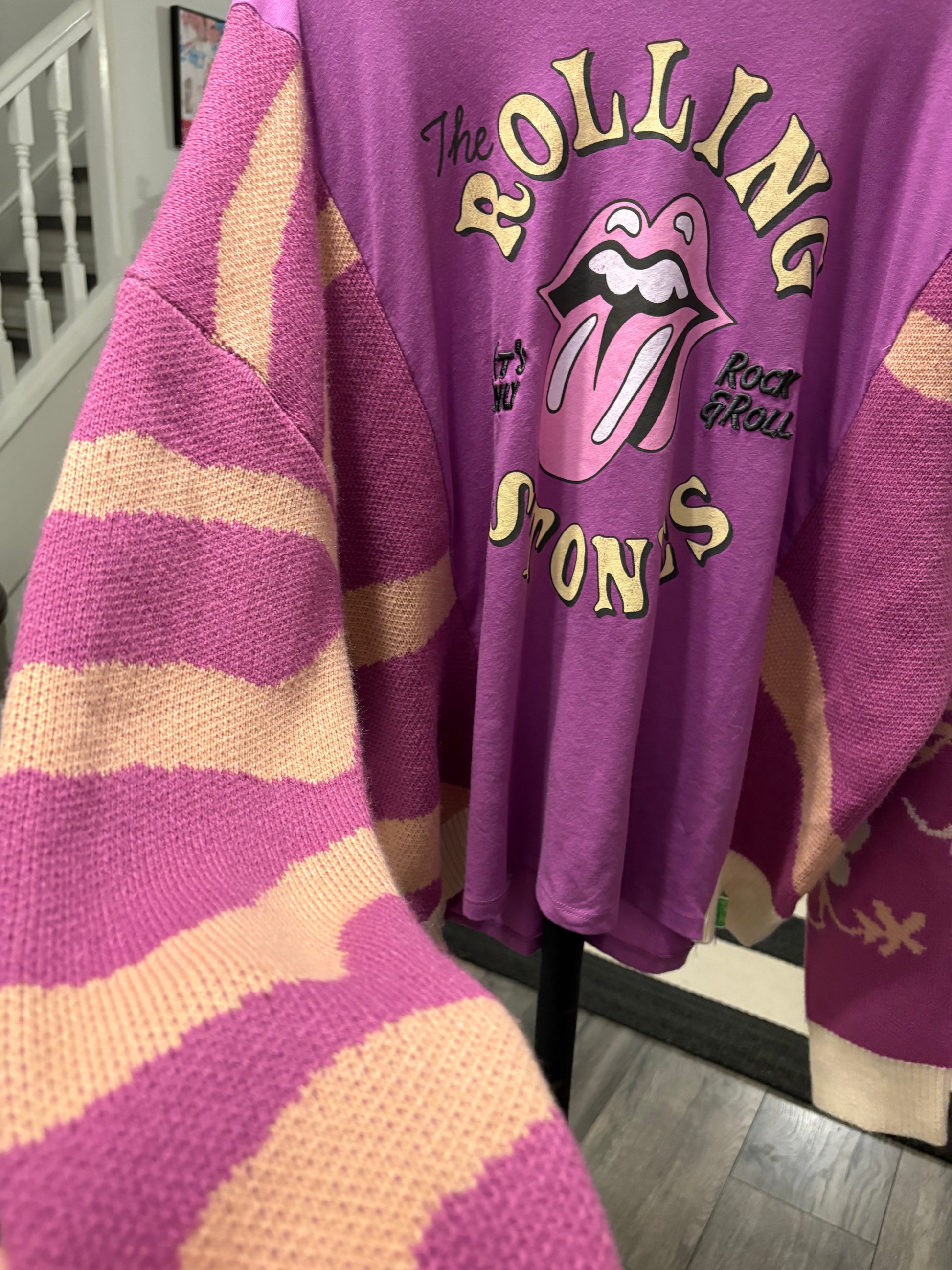 This unique drop sleeve top combines a vintage or upcycled fabric with a graphic tee design to create a sustainable, one-of-a-kind piece. With a relaxed oversized silhouette and long drop sleeves, it’s a comfortable and stylish layering option for casual outfits, streetwear, or cozy lounge looks.