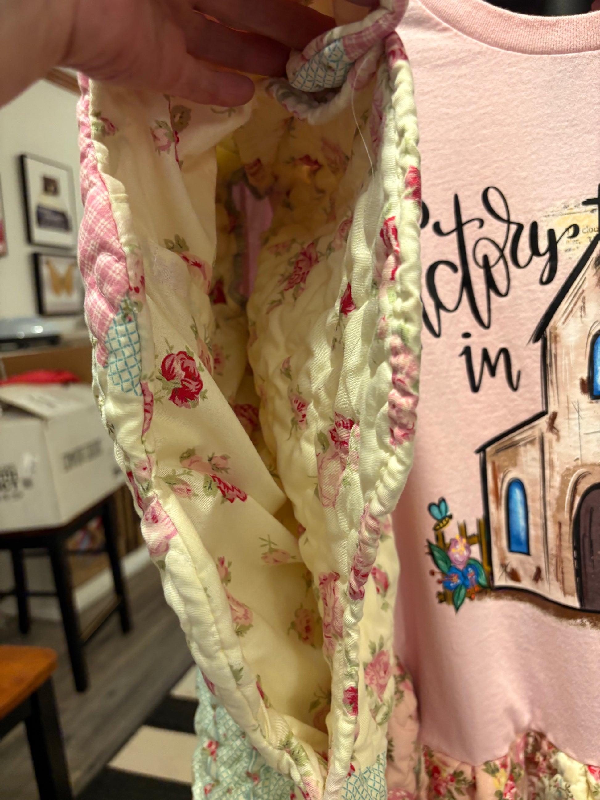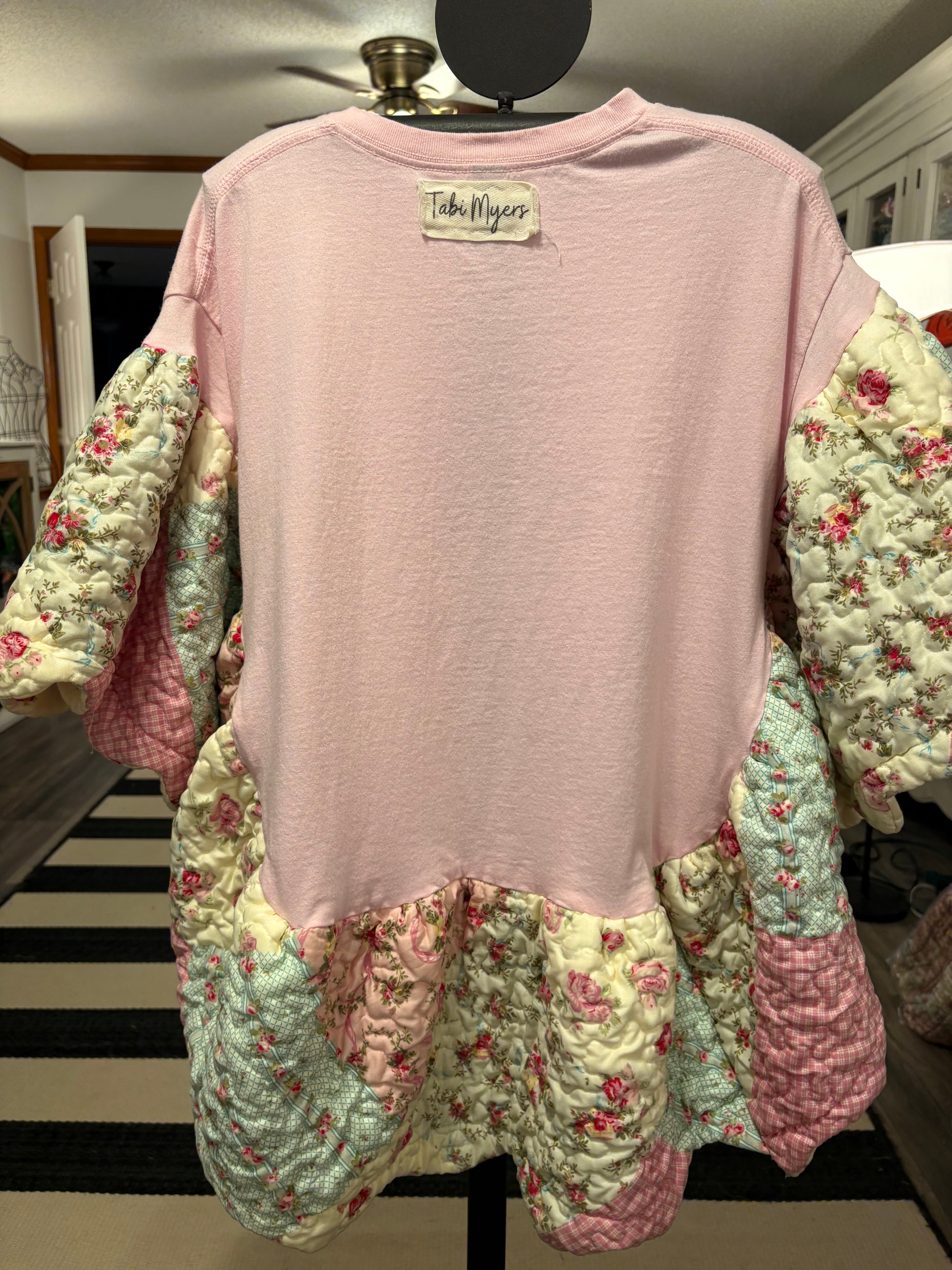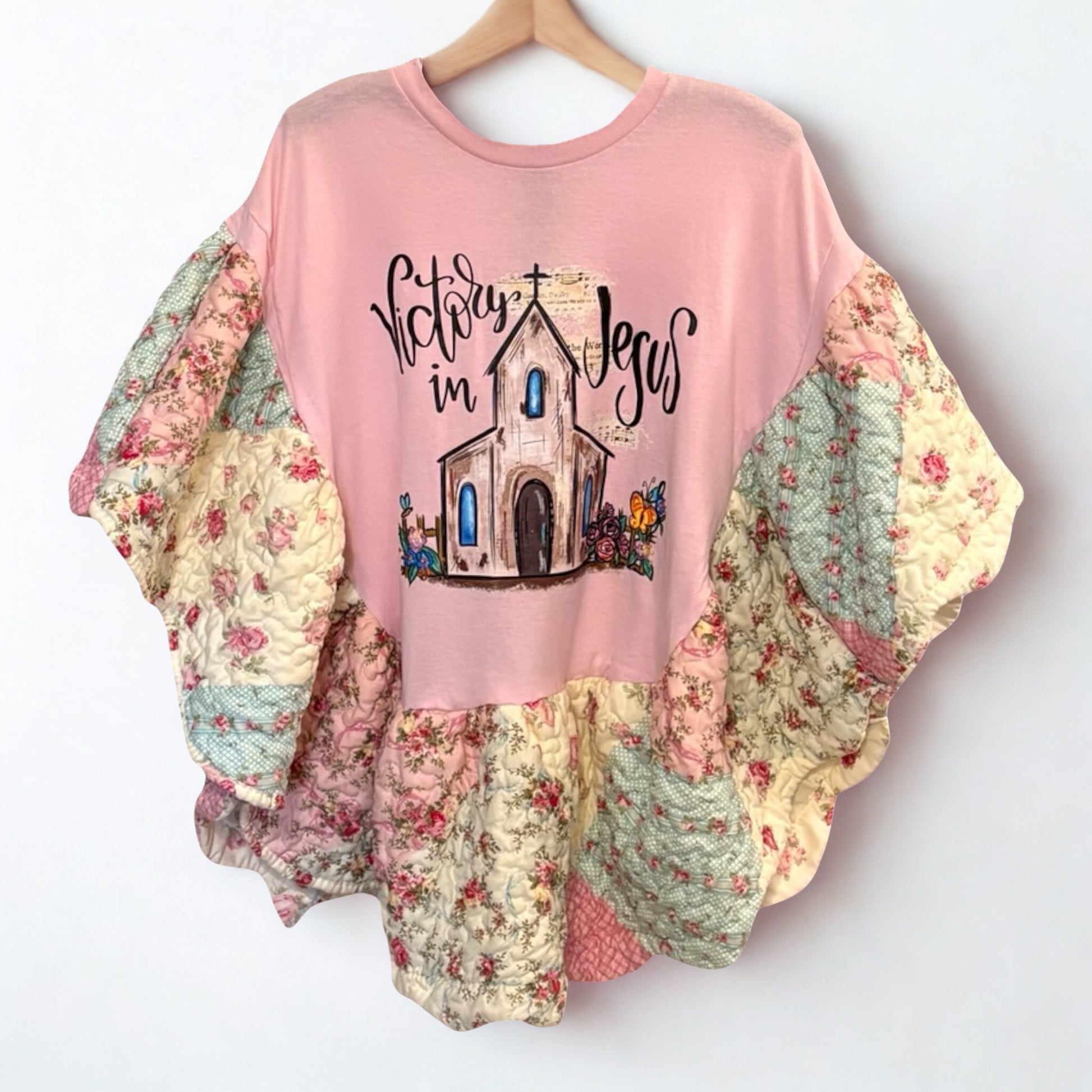 Original Tabi designed graphic tee and quilted fabric used to make this beautiful circle shaped ruffled poncho. Oversized and GORGEOUS poncho! Super cute and cozy!! Perfect for Winter, Spring and Fall
