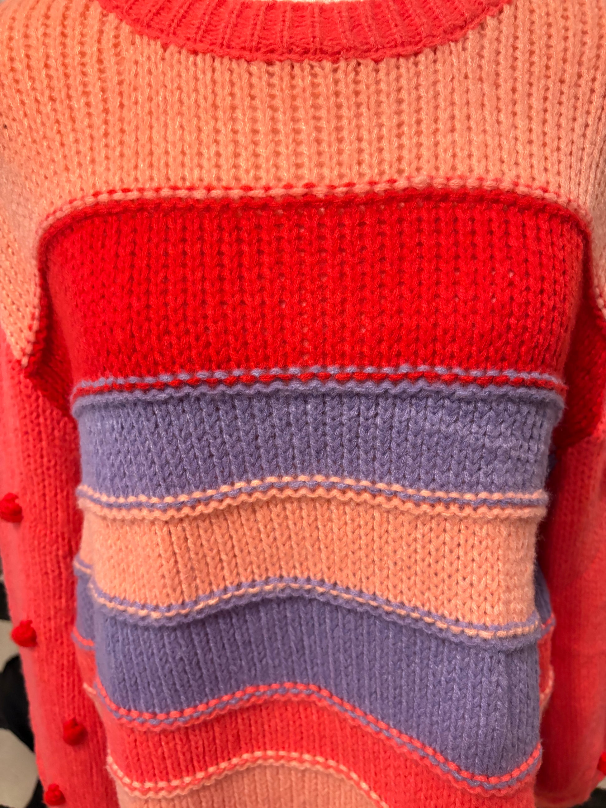 Festive and fun Pom Pom balloon sleeve sweater! Super warm and cozy.  Made by Umgee.