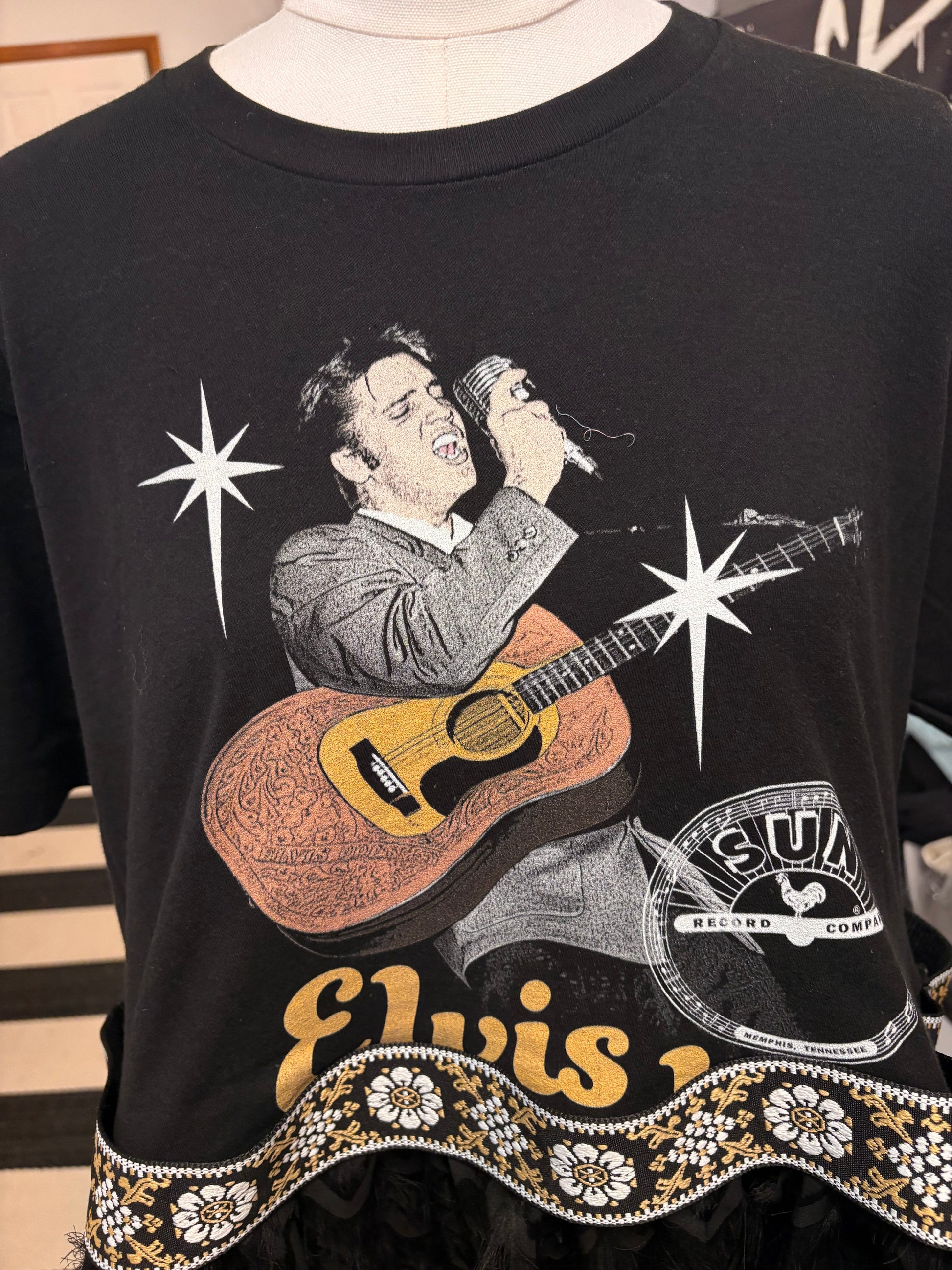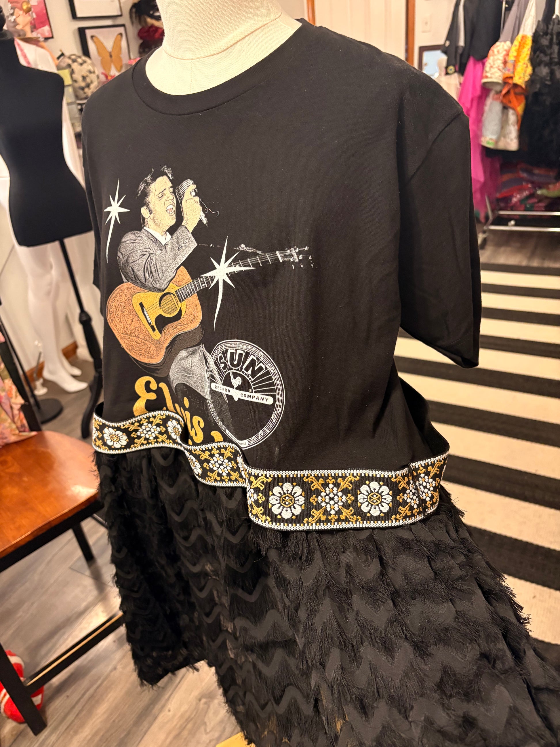 Upcycled graphic tee and mohair skirt used to make this FABULOUS ROCKSTAR and Fairytales Dress. Has woven embroidered trimmed waist. Looks great with absolutely everything! You will ROCK this!!!❤️