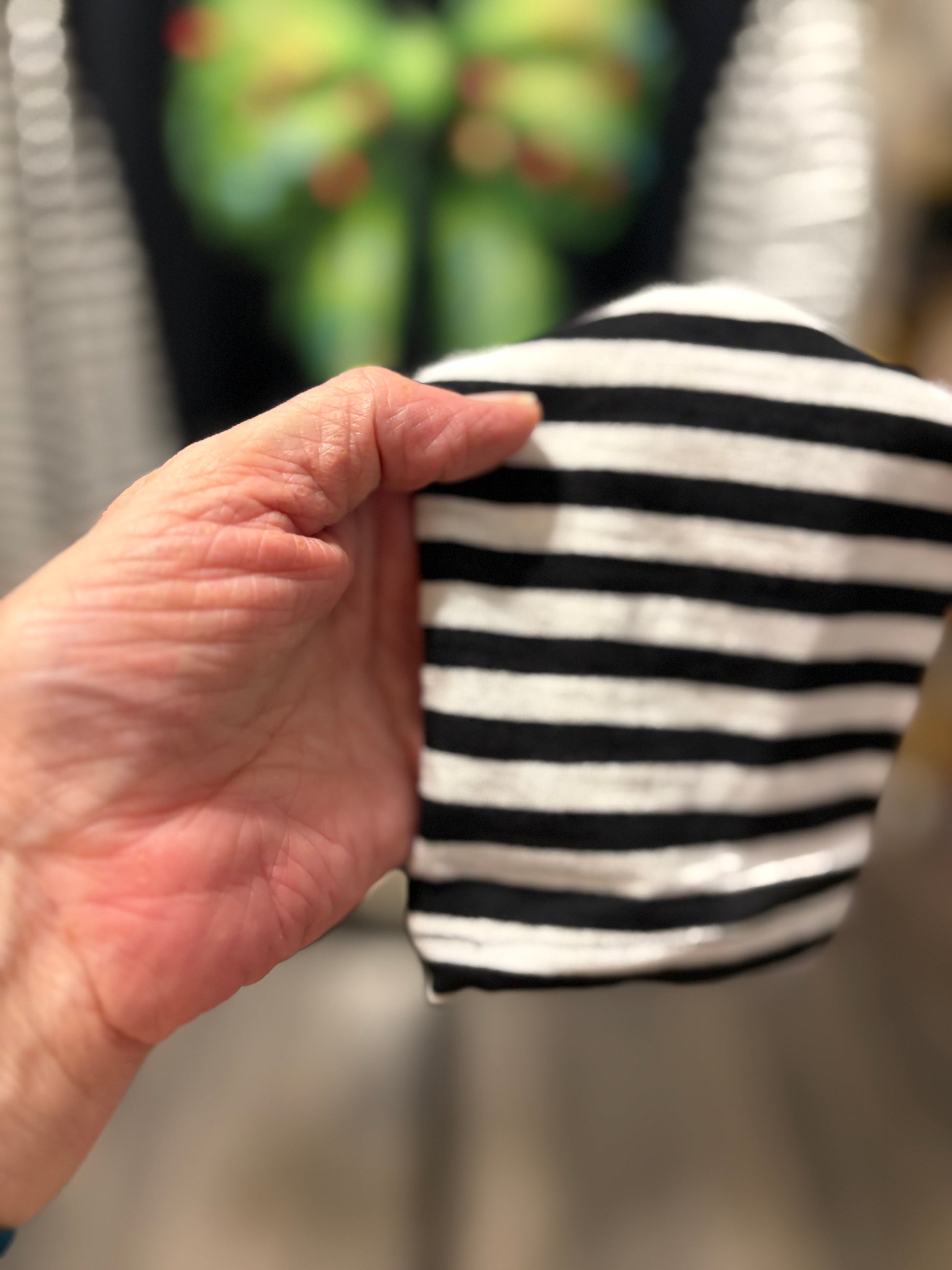 • Handmade from upcycled garments: can include knit tees, sweatshirts, blouses, or vintage textile