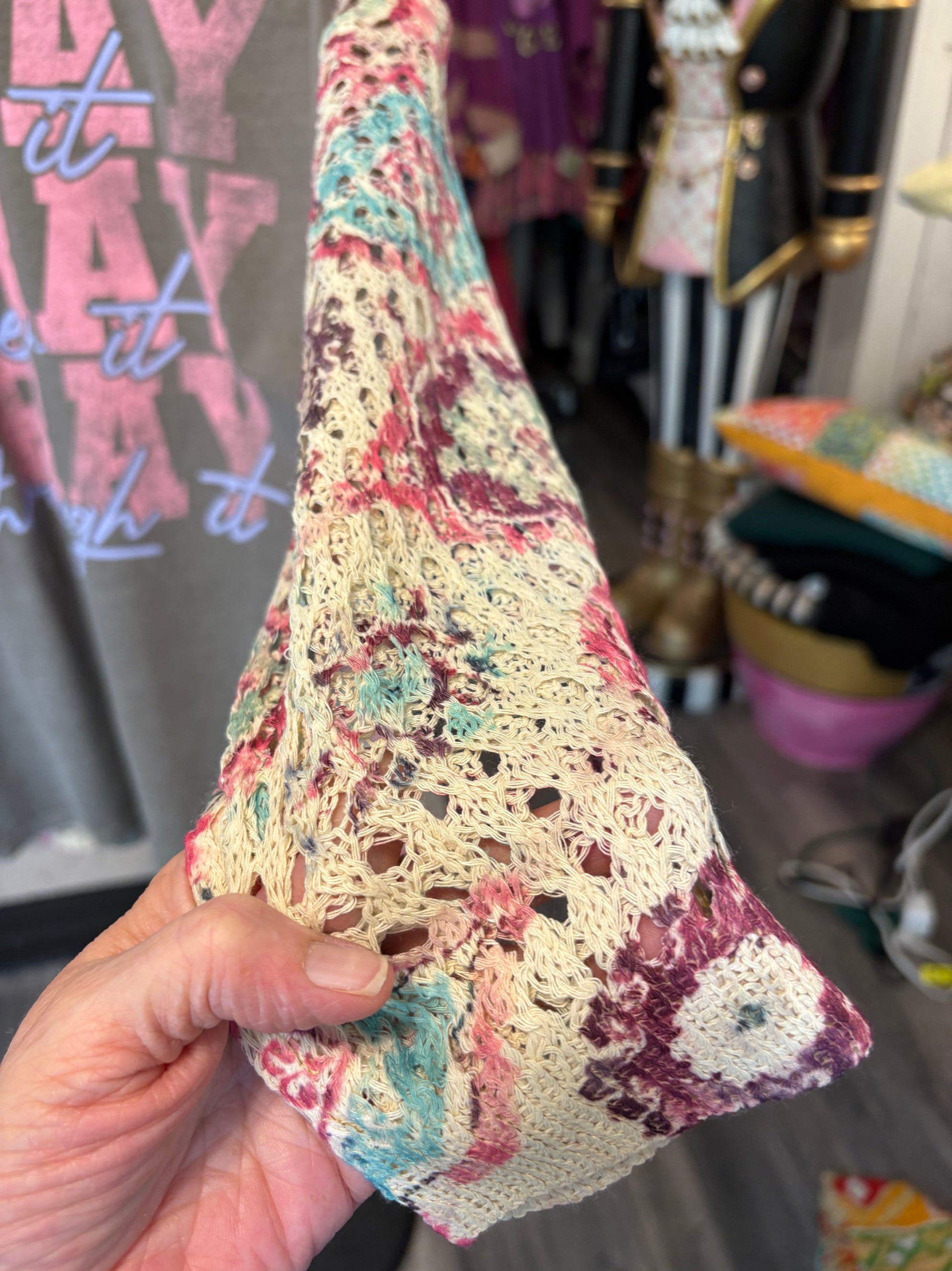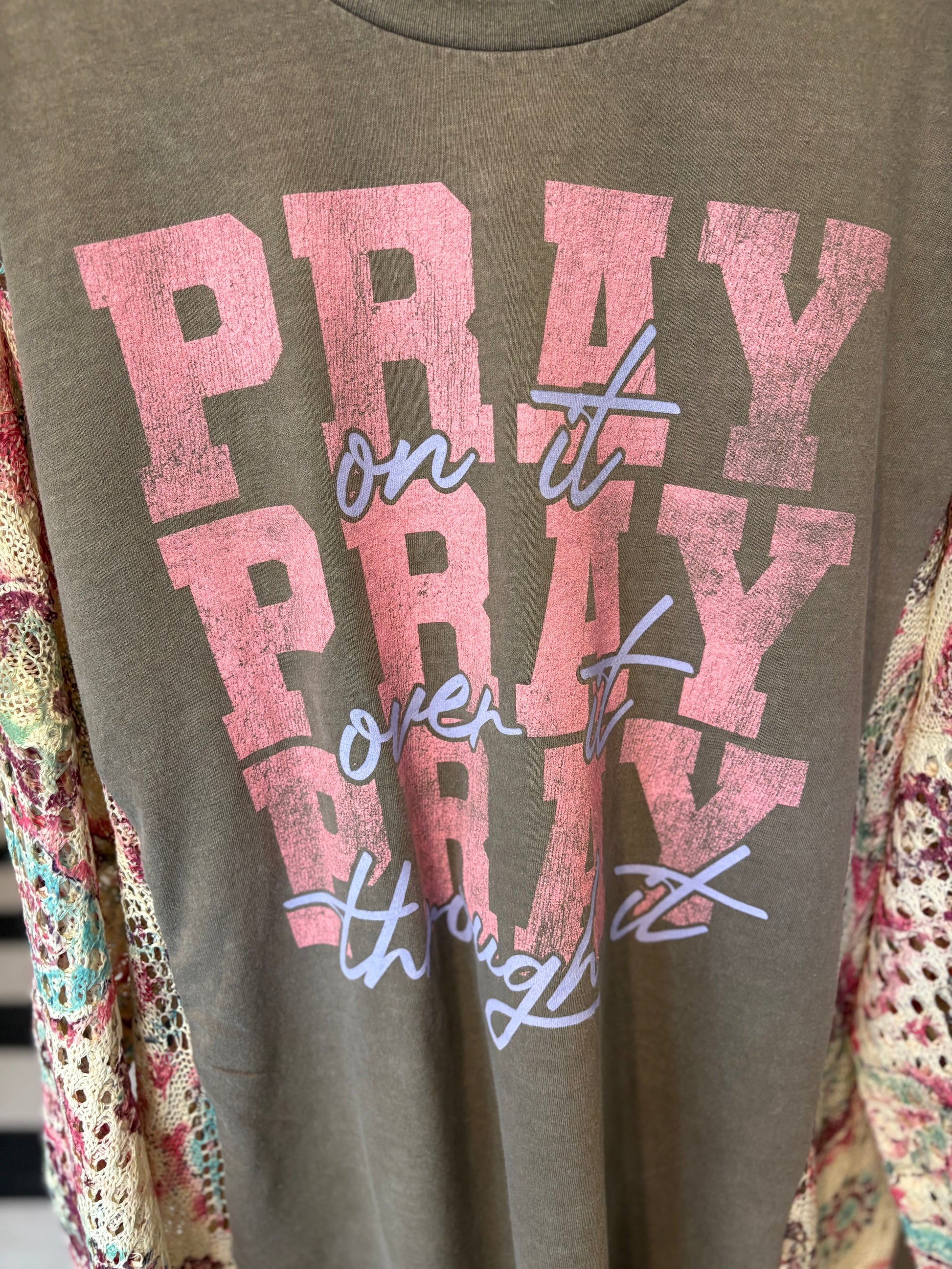 Pray Upcycled Drop-Sleeve Crochet Sweater One Size Fits a Small to 3X