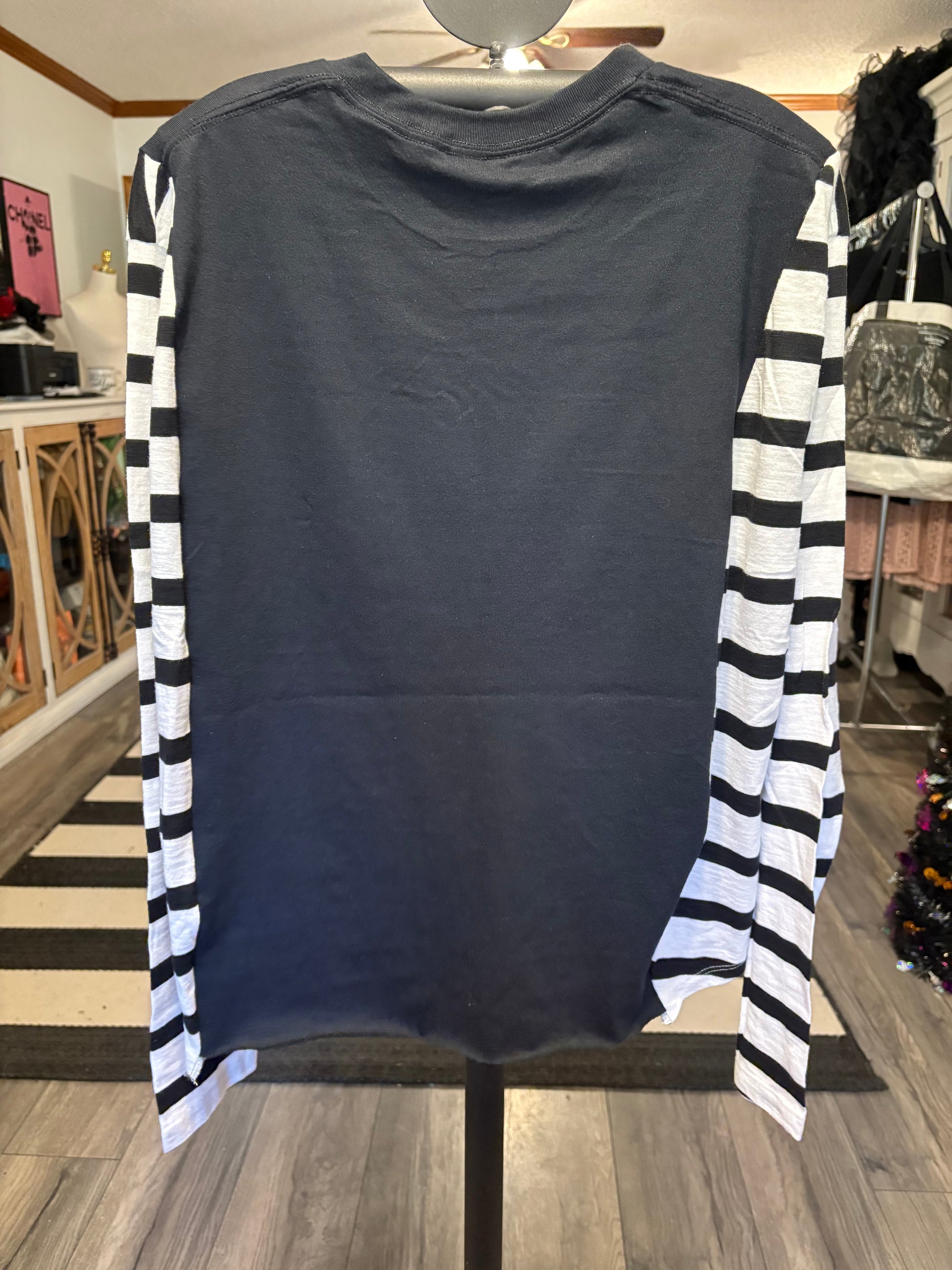 This unique drop sleeve top combines a vintage or upcycled fabric with a graphic tee design to create a sustainable, one-of-a-kind piece. With a relaxed oversized silhouette and long drop sleeves, it’s a comfortable and stylish layering option for casual outfits, streetwear, or cozy lounge looks.