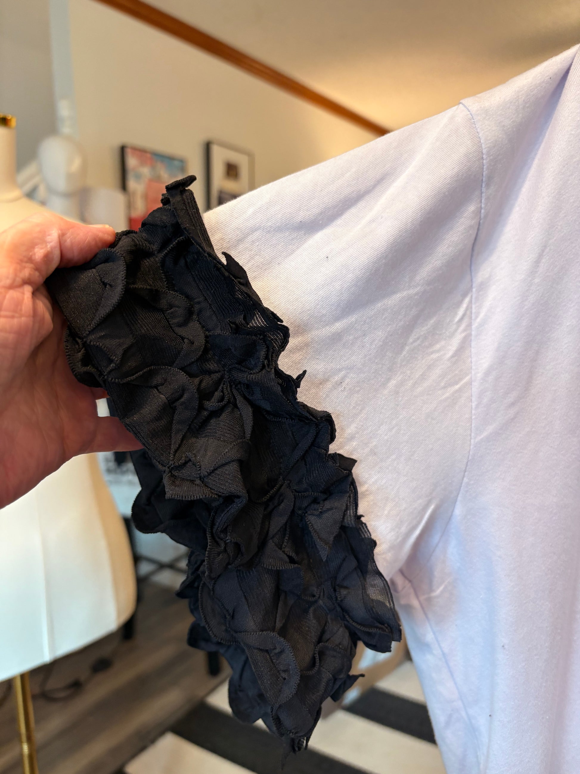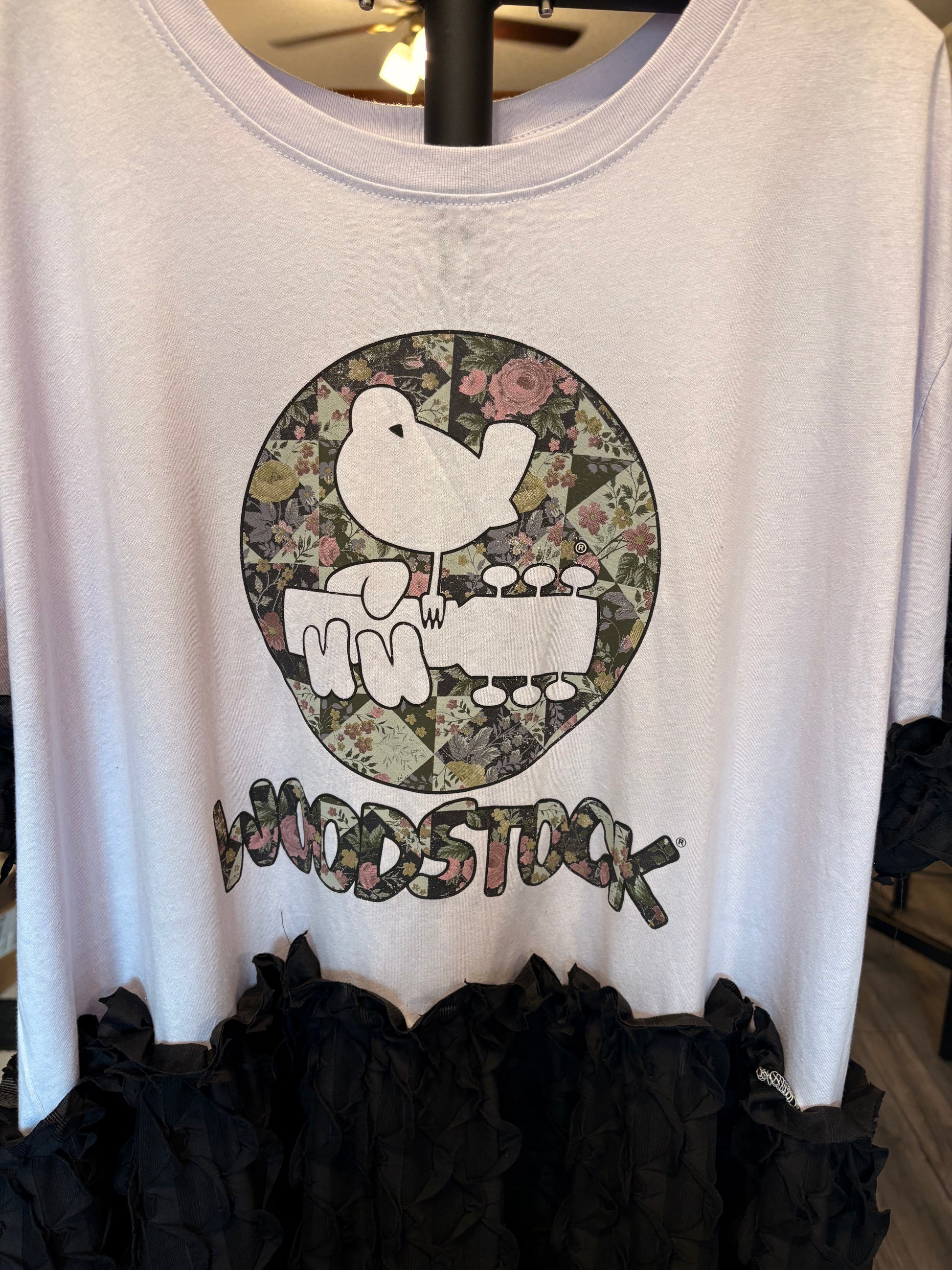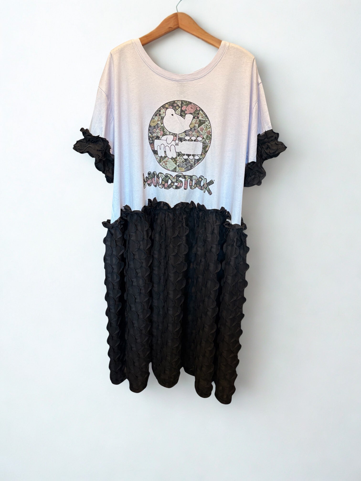 Upcycled graphic tee and black knot scalloped ruffle fabric. FABULOUS ROCKSTAR and Fairytales Dress. Looks great with absolutely everything! You will ROCK this!!!❤️