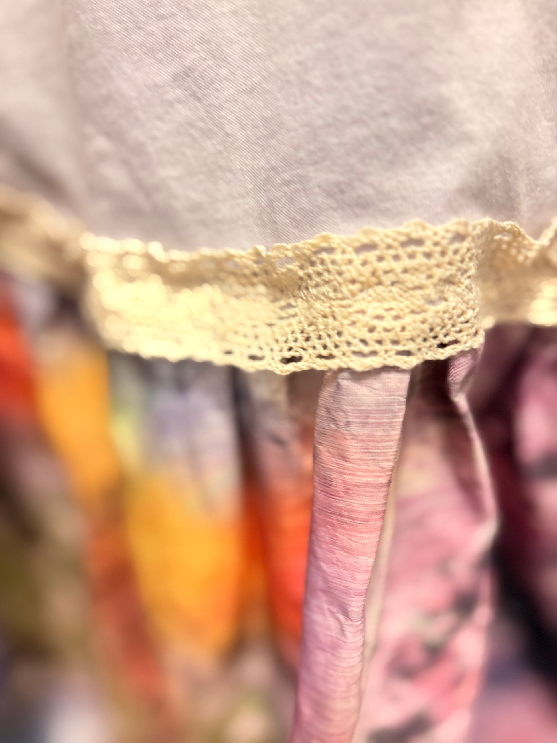 Tie Dye Tafetta fabric and Upcycled graphic tee used to make this beautiful ruffled Rock Angel Tee. Oversized and GORGEOUS! Super cute and cozy!! Perfect for ALL seasons!