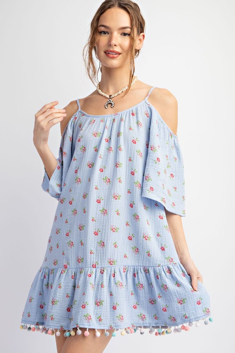 FLORAL PRINTED COTTON GAUZE DRESS